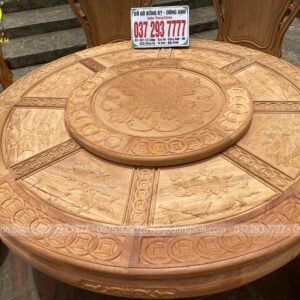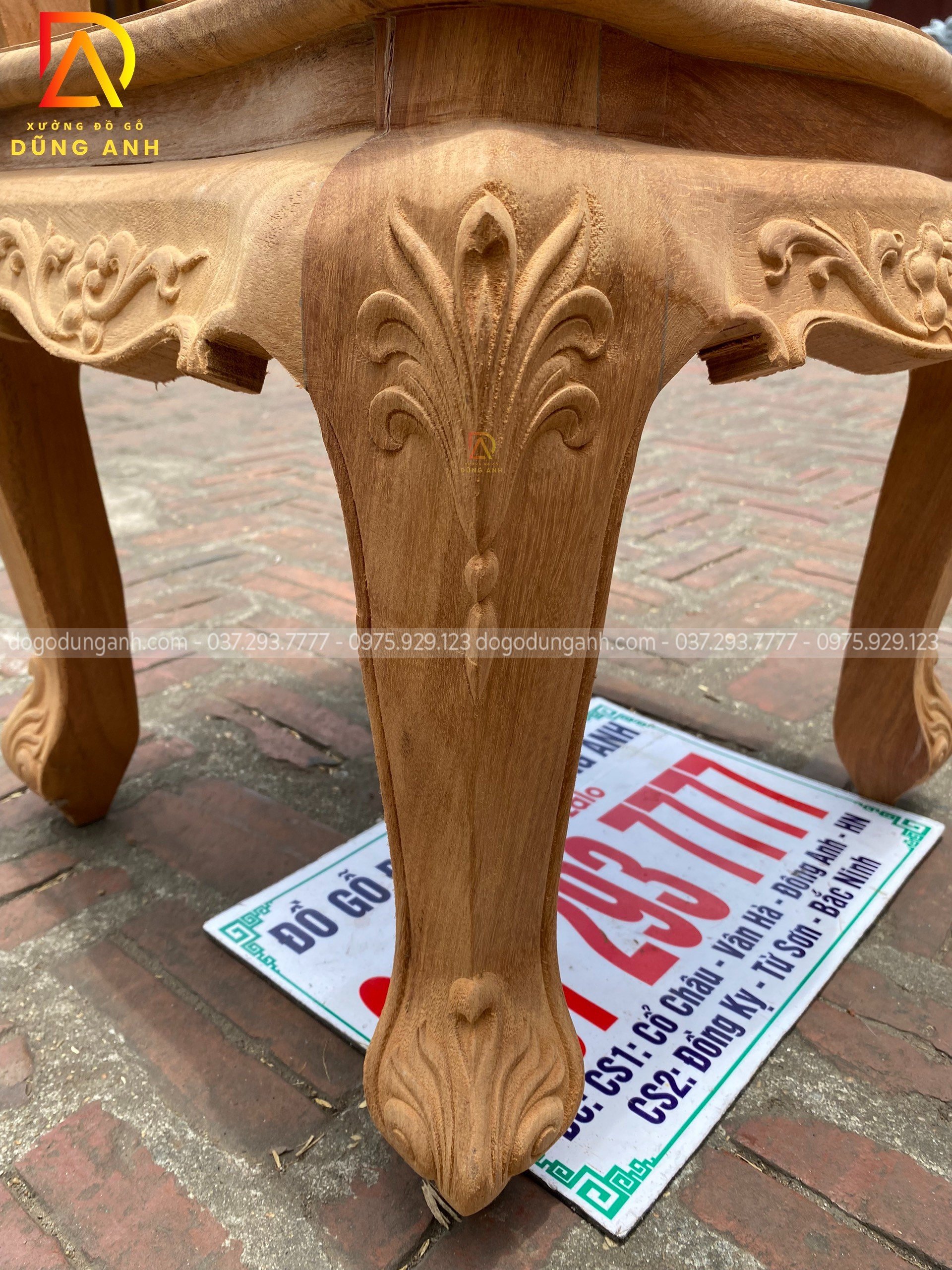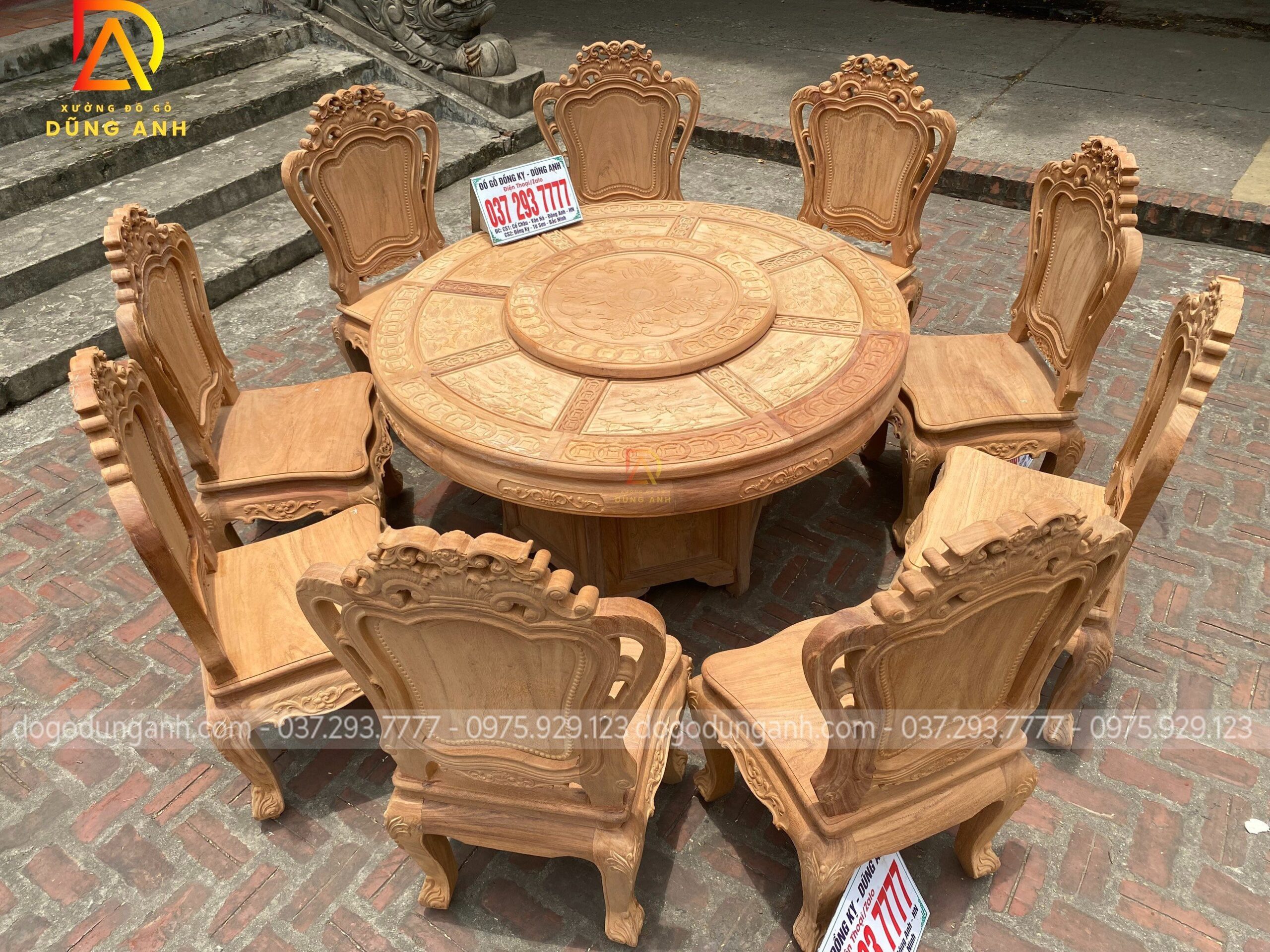 Chất liệu gỗ Gõ Đỏ thì chắc hẳn các vị khách hàng yêu nội thất đều hiểu rõ về nó. Gỗ Gõ Đỏ là loại gỗ quý hiếm, có độ cứng và bền bỉ cao, có khả năng chịu đựng va đập mạnh, chống chịu ẩm, nước rất tốt. Do đó đồ nội thất được làm từ loại gỗ này sẽ có tuổi thọ rất cao. Ngoài ra Gỗ Gõ Đỏ có đường vân rất đẹp với màu nâu đỏ đẹp với hình cuộn xoắn, rõ nét làm tăng thêm độ cuốn hút cho các sản phẩm nội thất . Xưởng đồ gỗ Dũng Anh xin giới thiệu với quý vị bộ sản phẩm “LOUIS HOÀNG GIA kết hợp với BÀN TRÒN BÁT QUÁI SANG TRỌNG” với chất liệu gỗ Gõ Đỏ cực kì SANG TRỌNG và ĐẲNG CẤP .