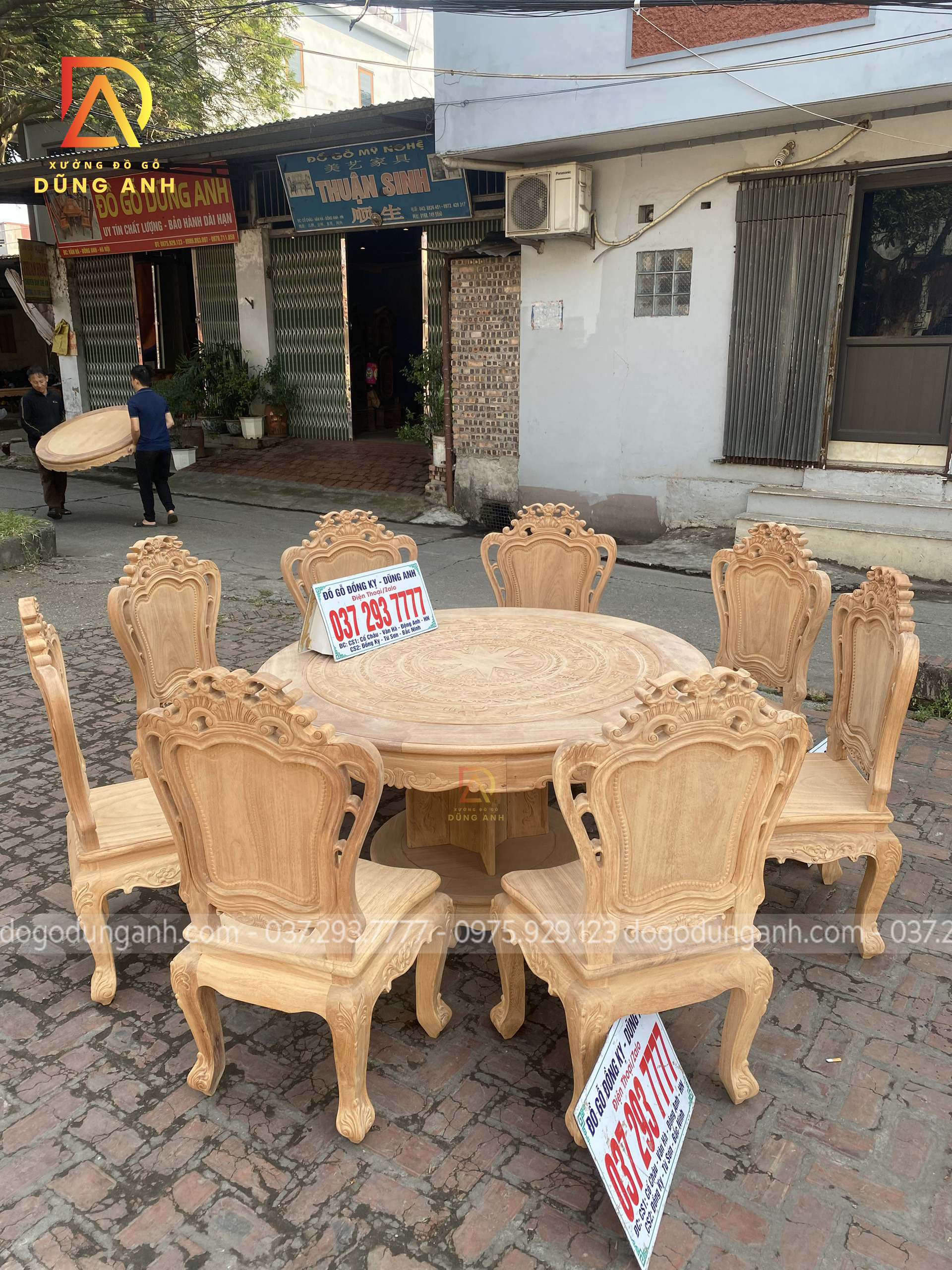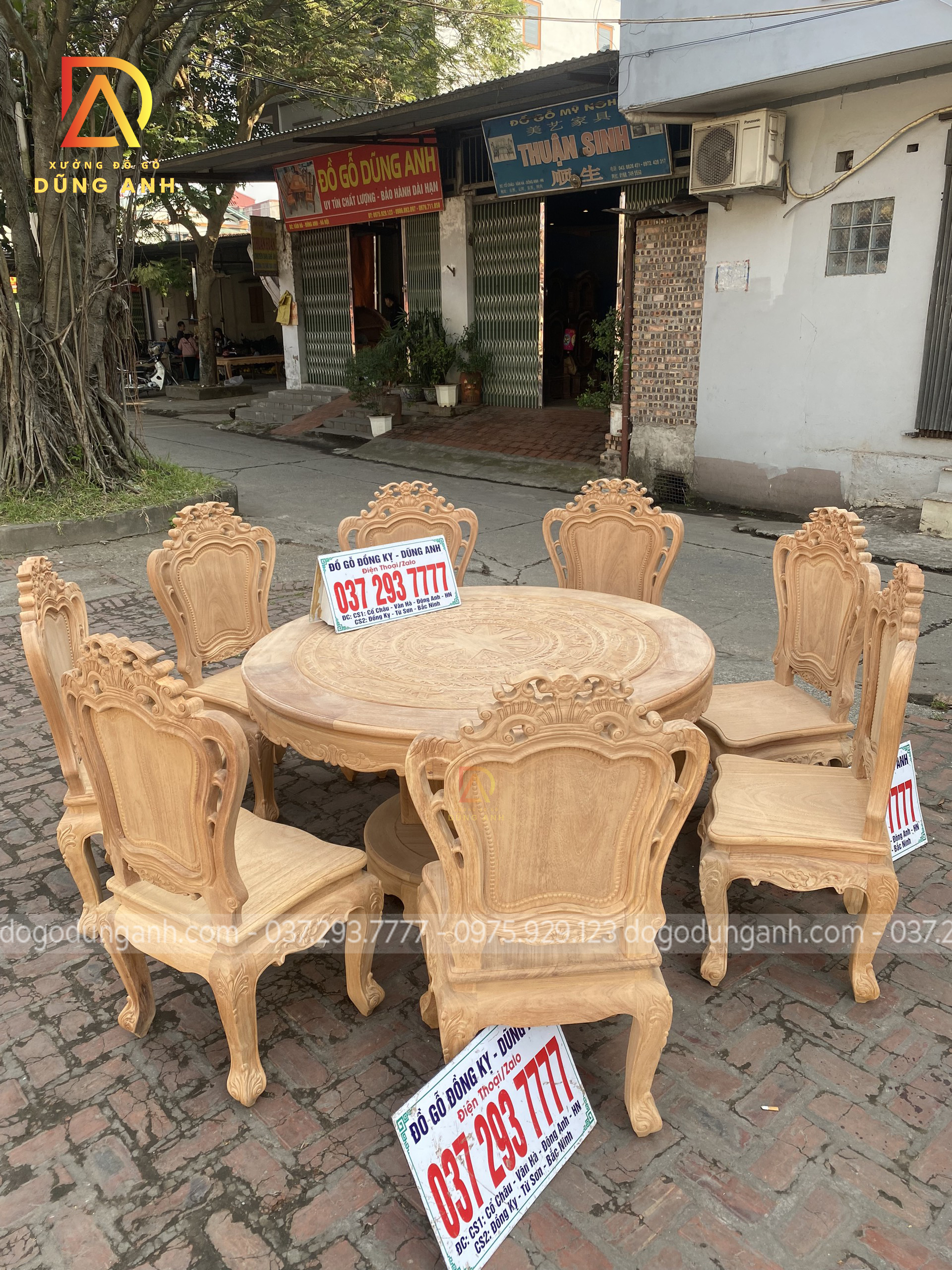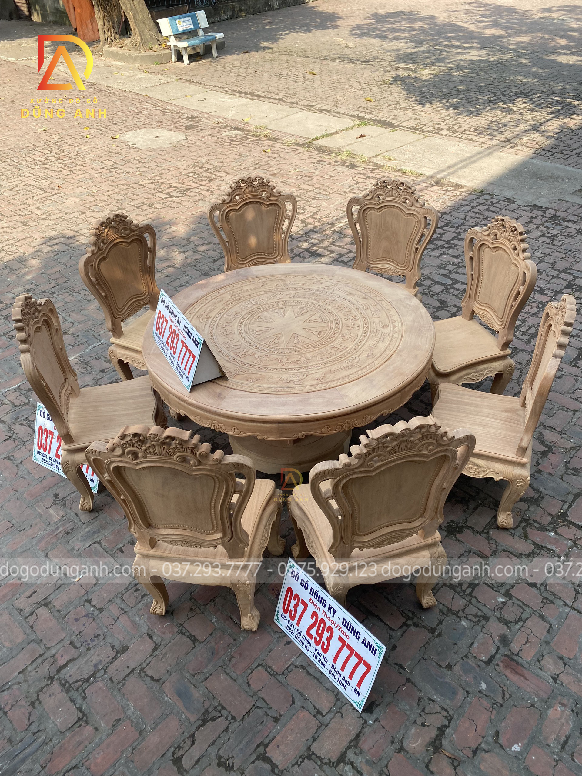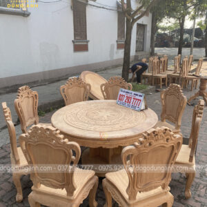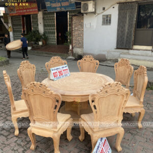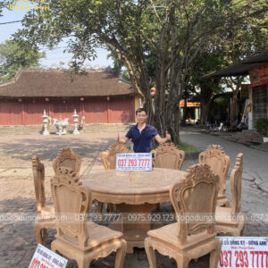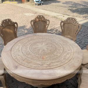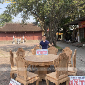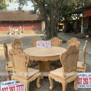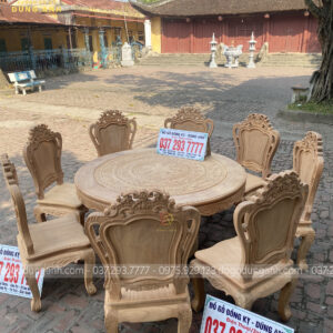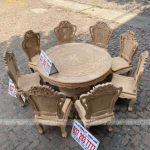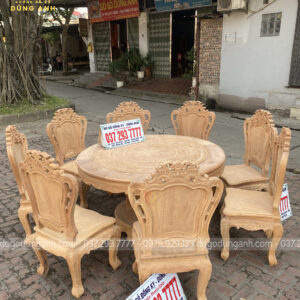 Bộ mộc bộ 8 ghế Louis Hoàng Gia đi với mẫu bàn tròn Trống Đồng gỗ Gõ Đỏ
