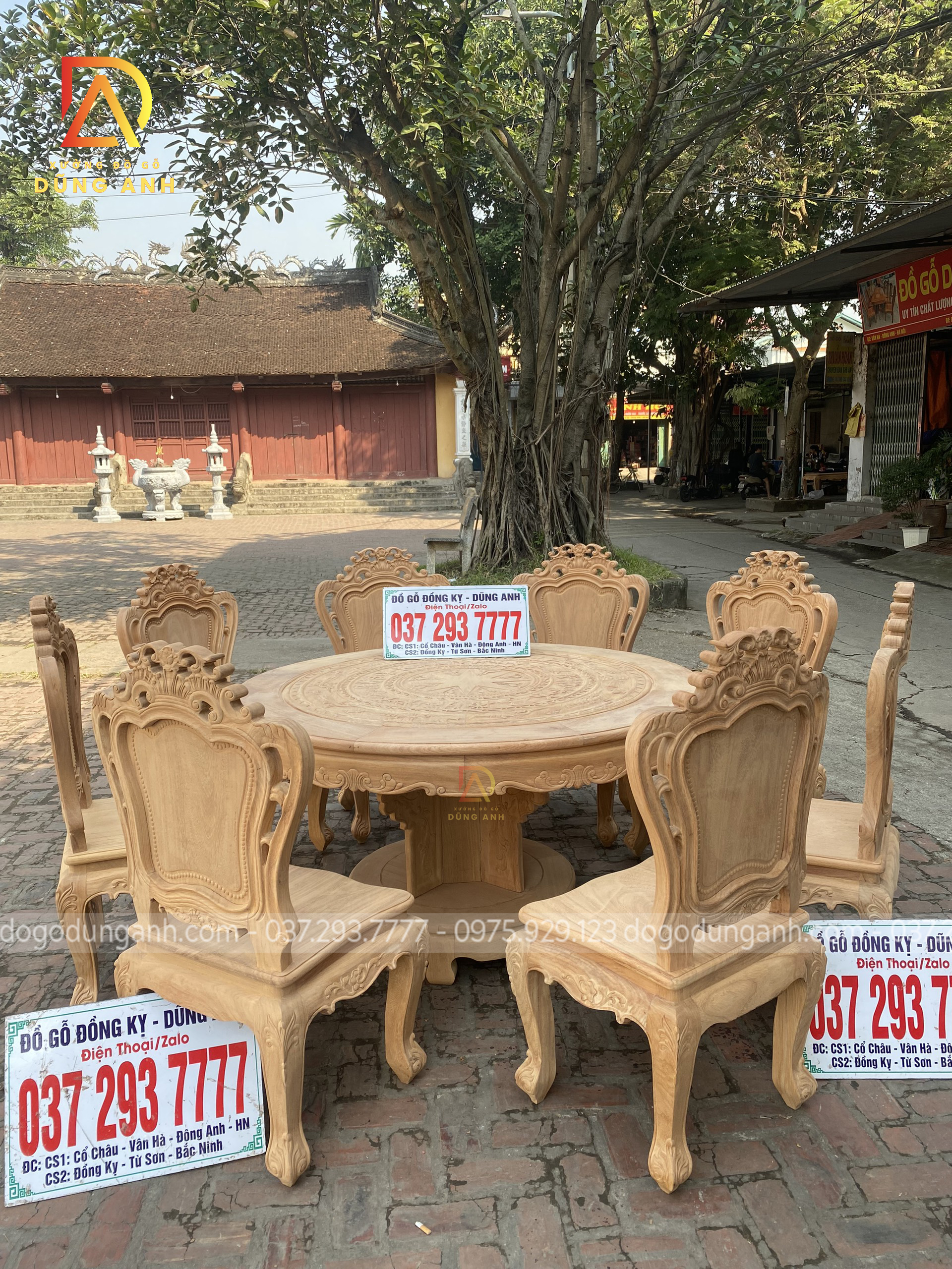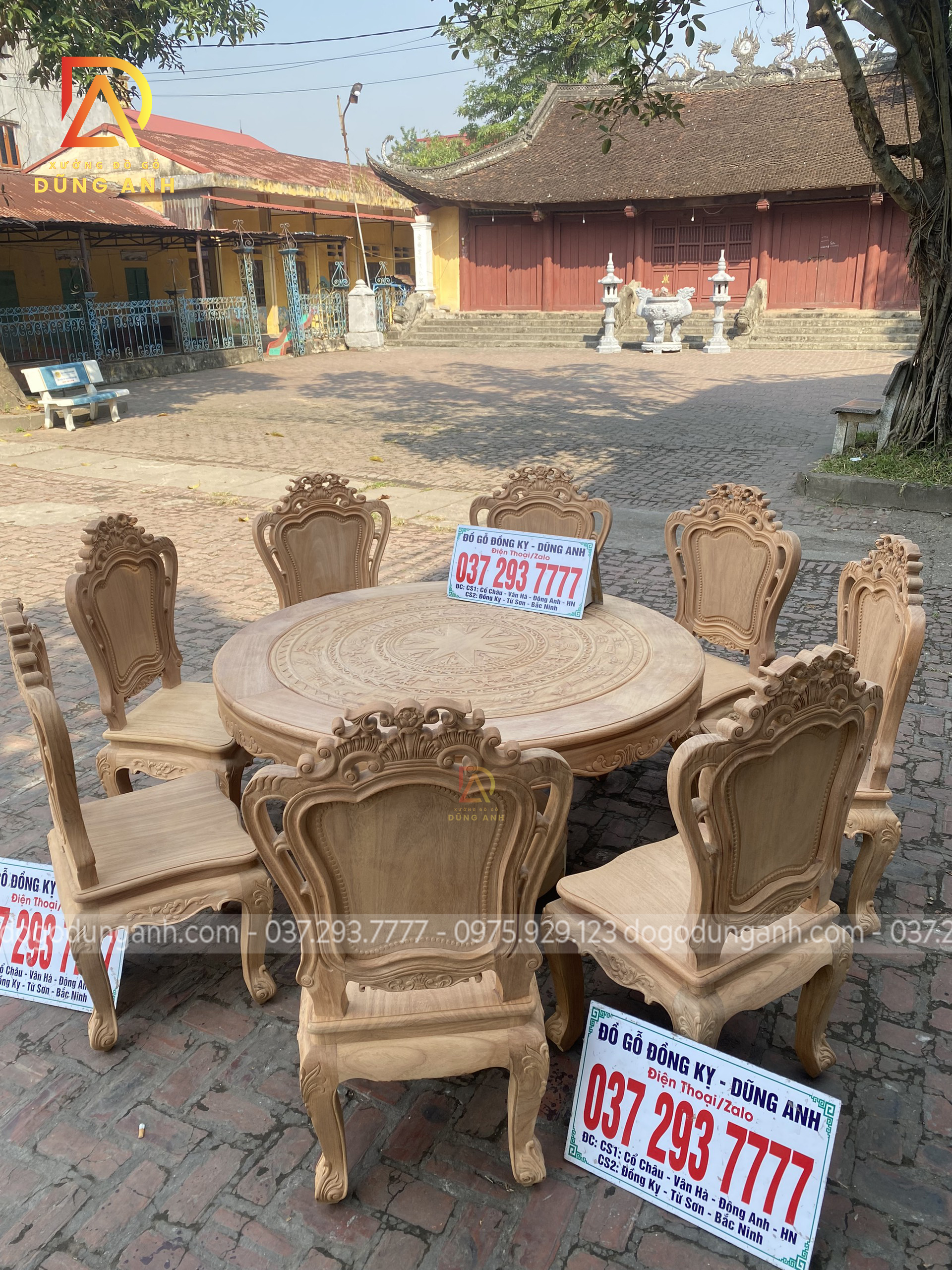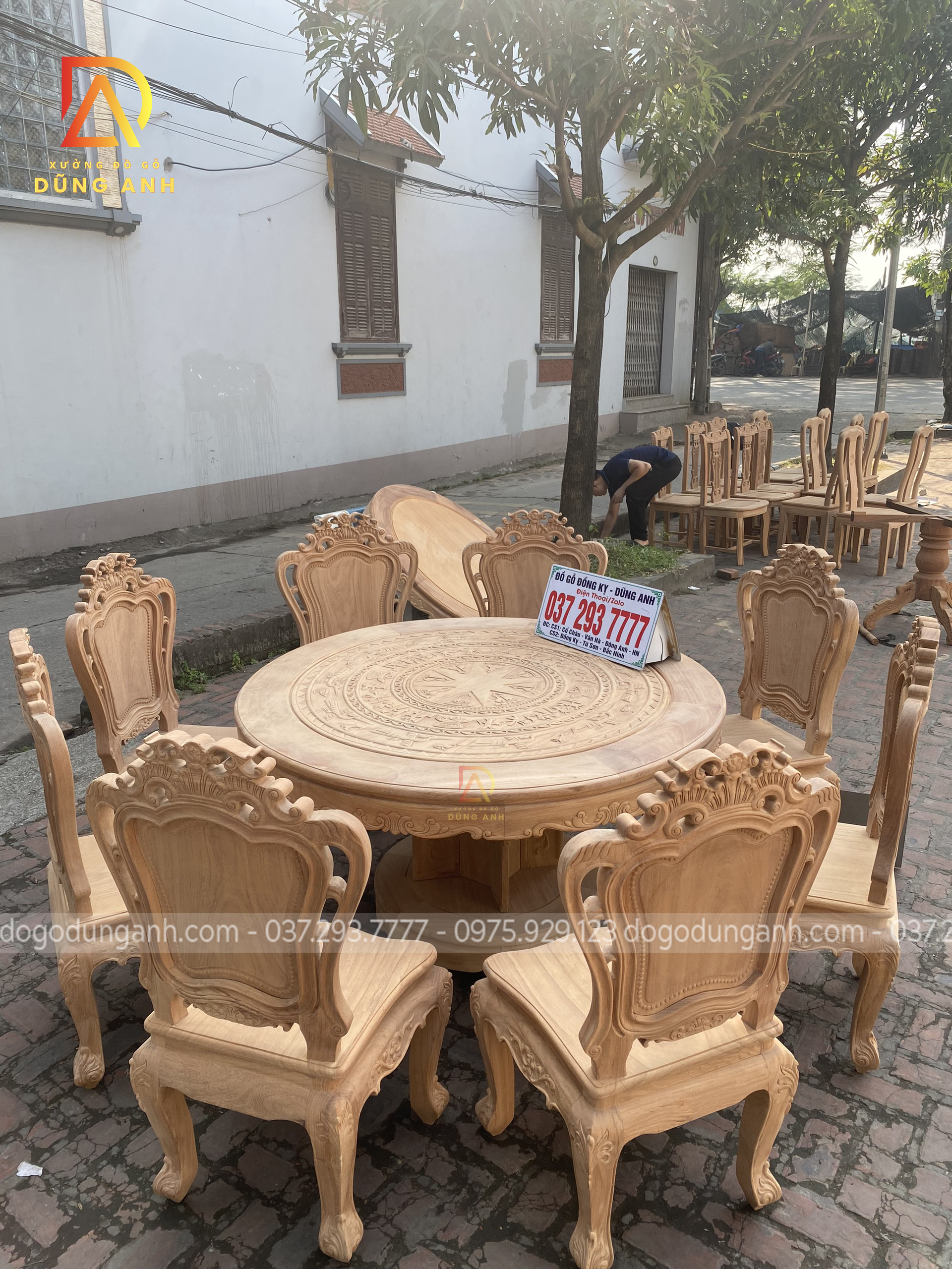 Bộ mộc bộ 8 ghế Louis Hoàng Gia đi với mẫu bàn tròn Trống Đồng gỗ Gõ Đỏ