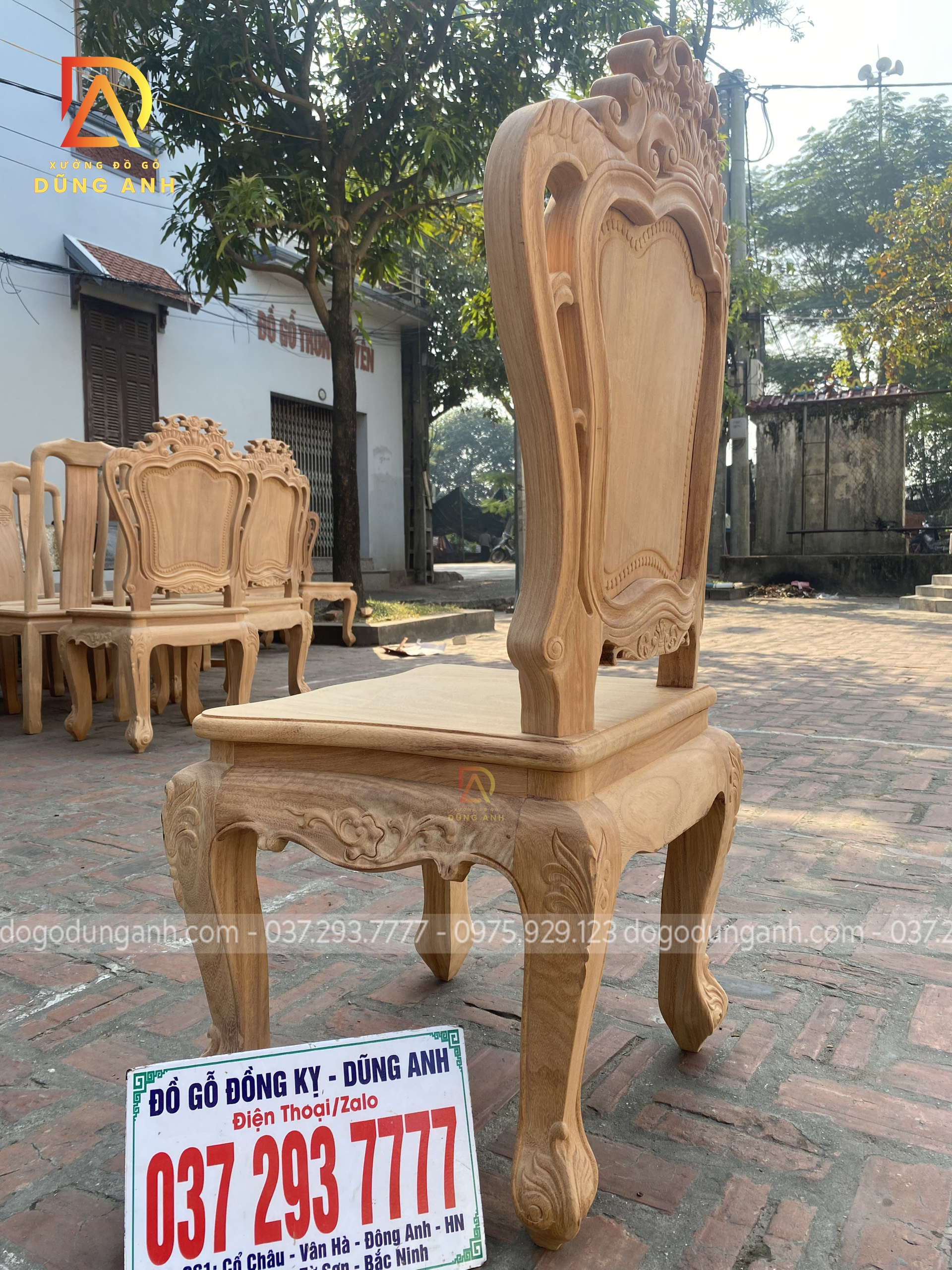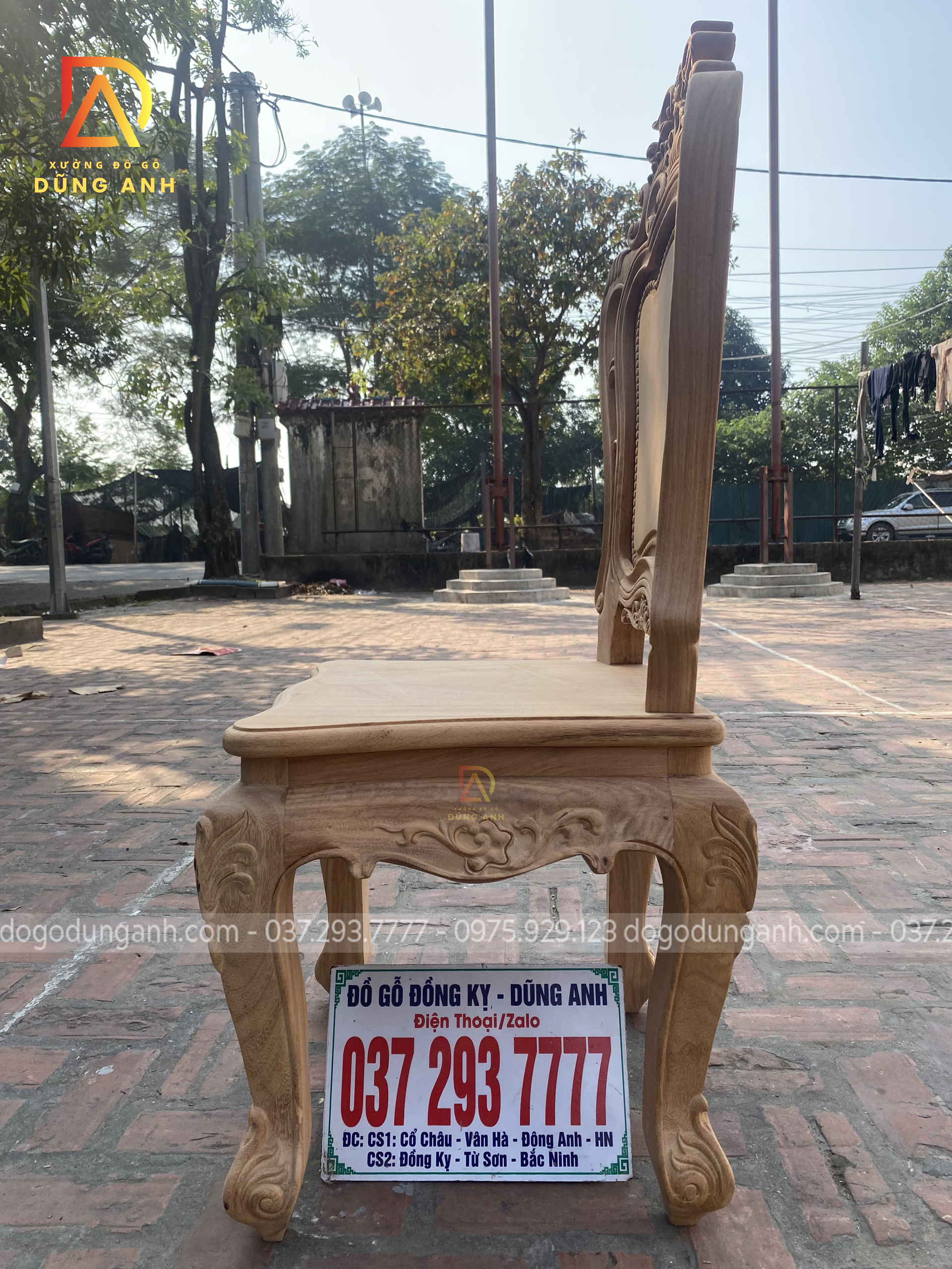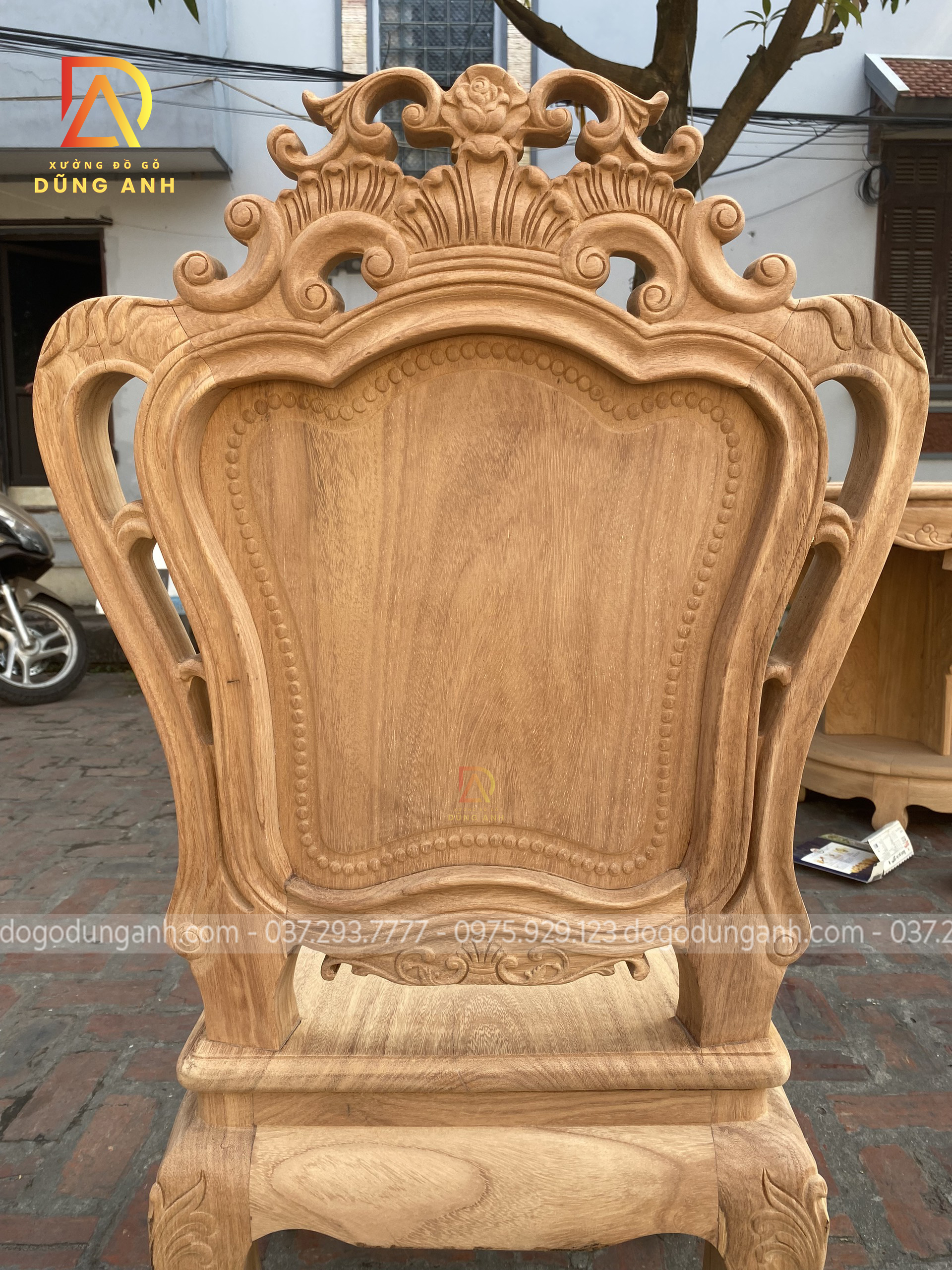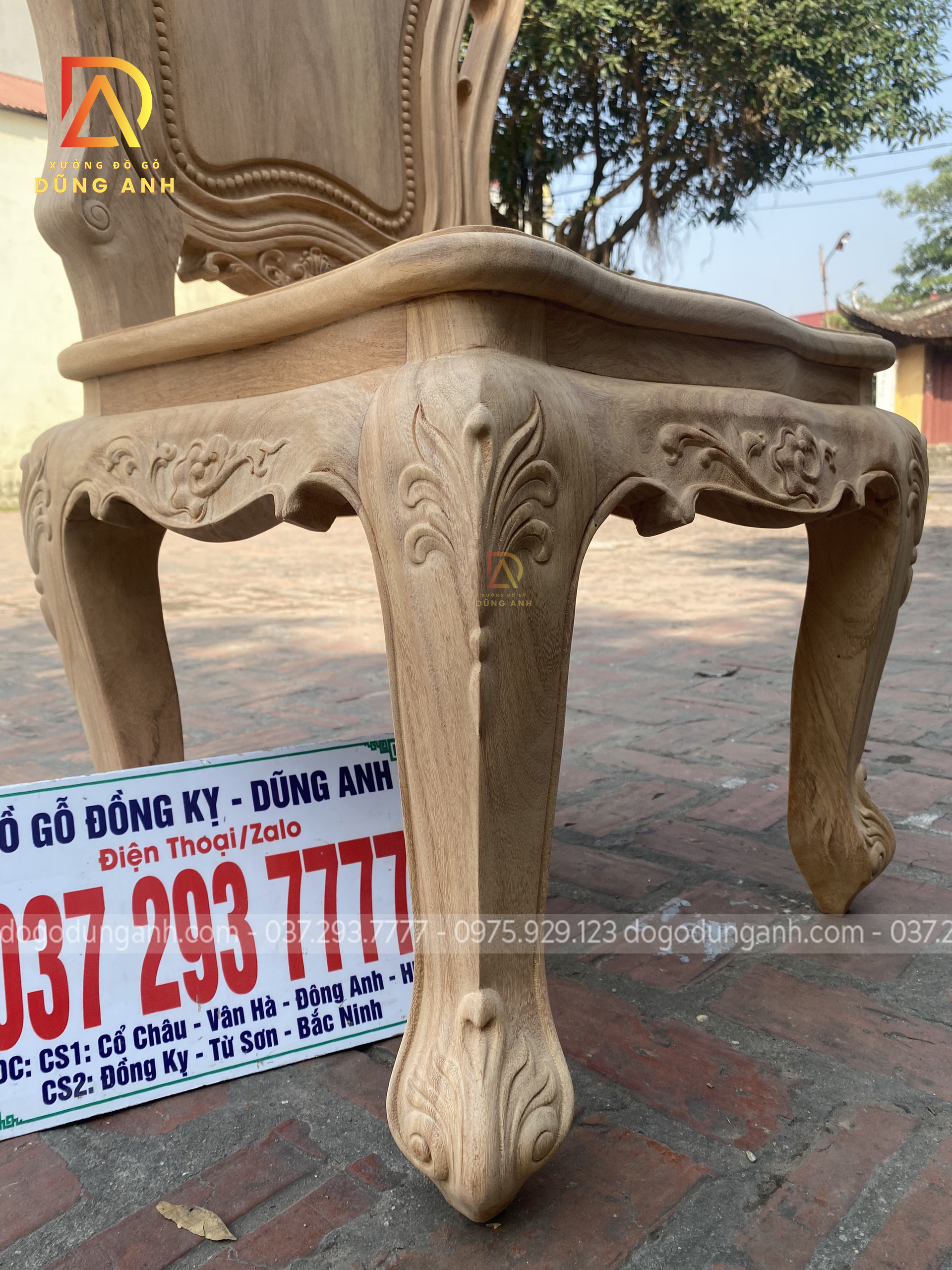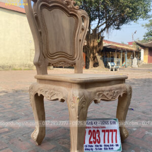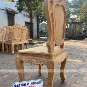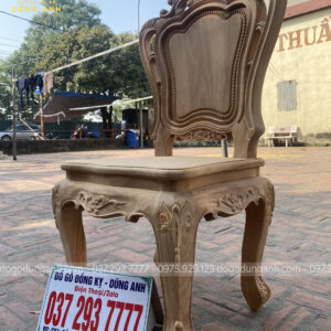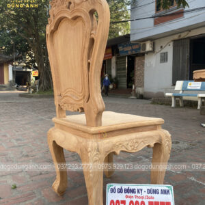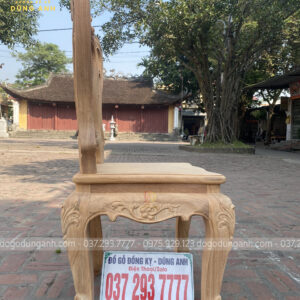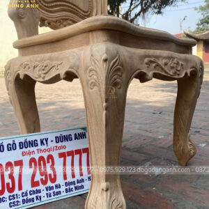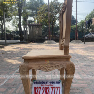 - Để có thể có được 1 chiếc chân ghế uốn cong được như vậy thì Xưởng đồ gỗ Dũng Anh đã làm từ 1 khúc gỗ có kích thước vuông 8 cm và đã được đục trạm 1 chút hoa văn hoa lá tây