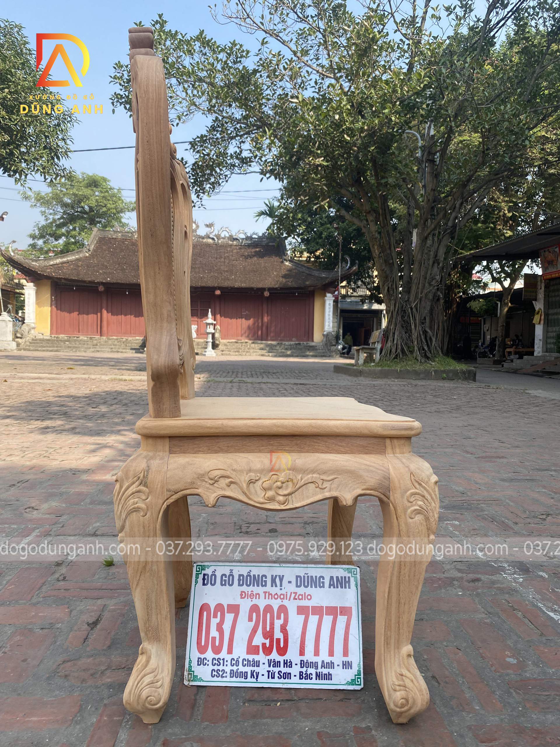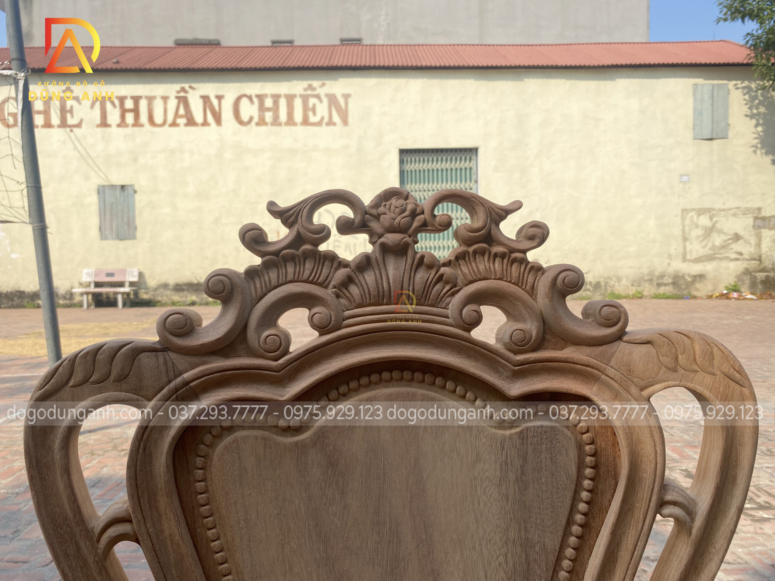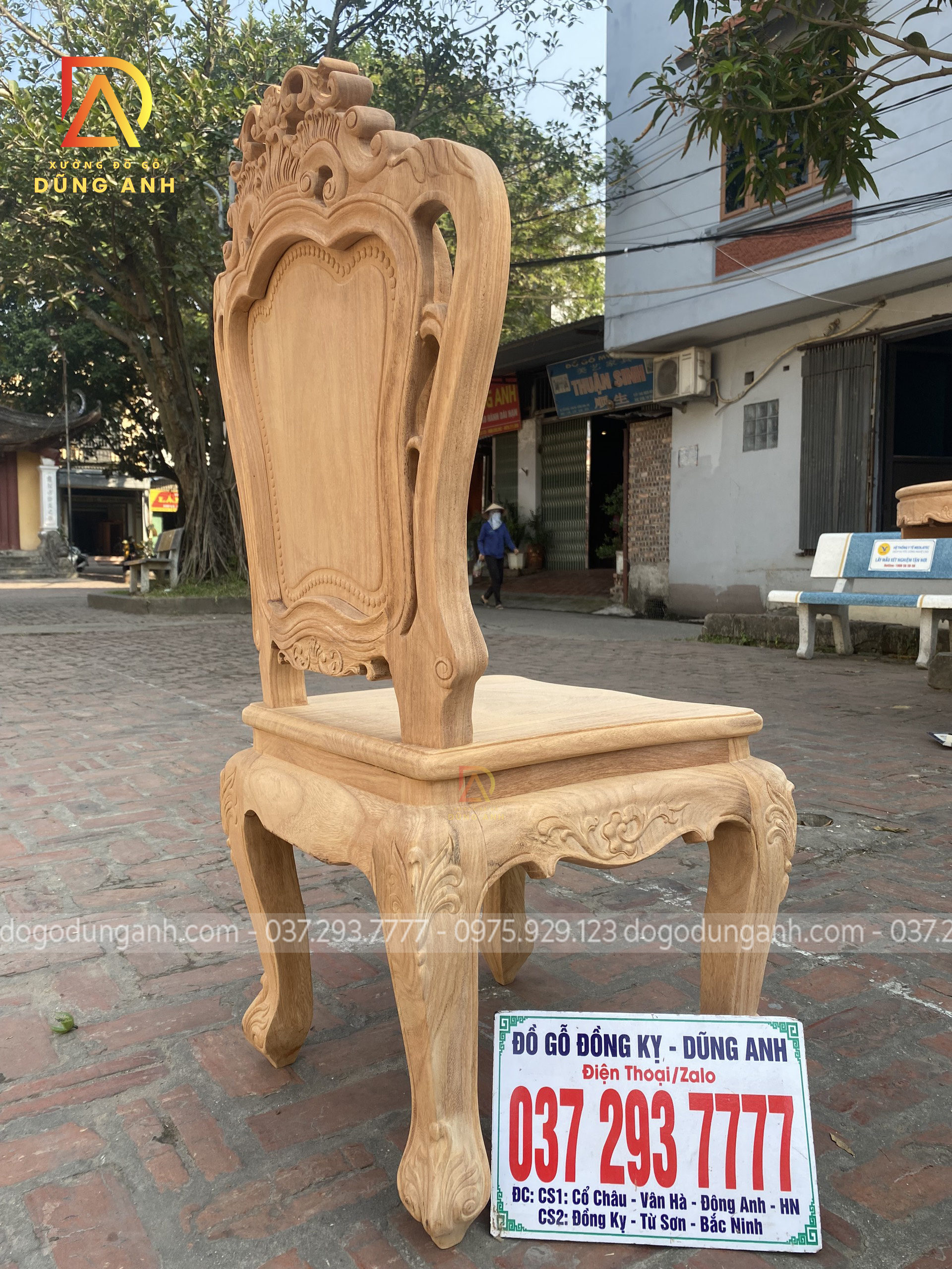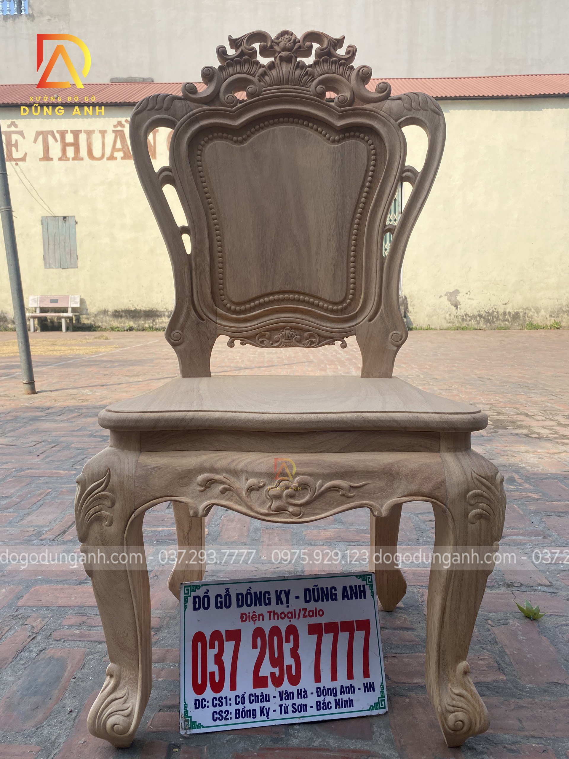 - Để có thể có được 1 chiếc chân ghế uốn cong được như vậy thì Xưởng đồ gỗ Dũng Anh đã làm từ 1 khúc gỗ có kích thước vuông 8 cm và đã được đục trạm 1 chút hoa văn hoa lá tây