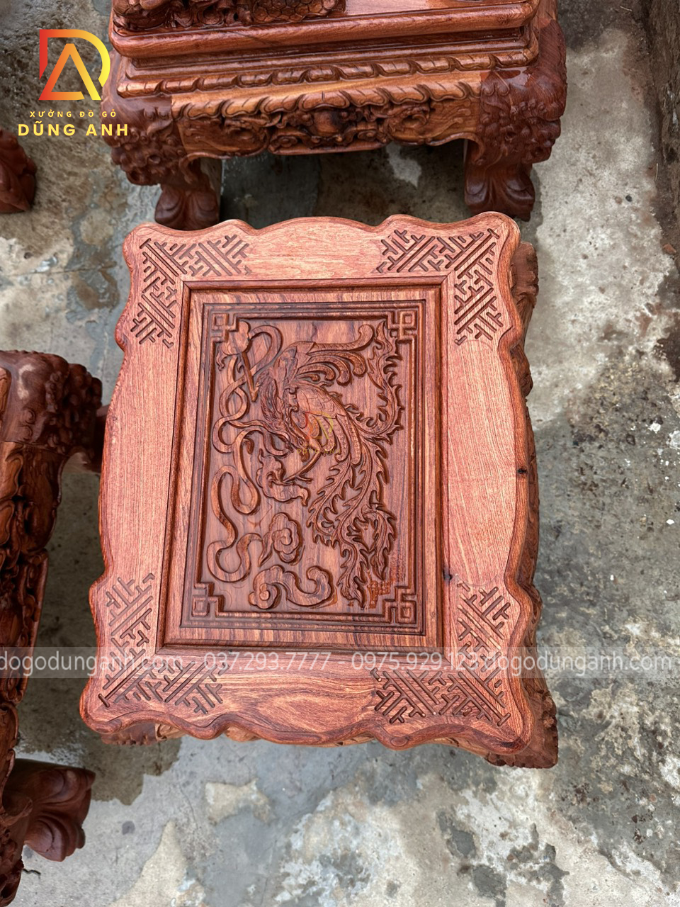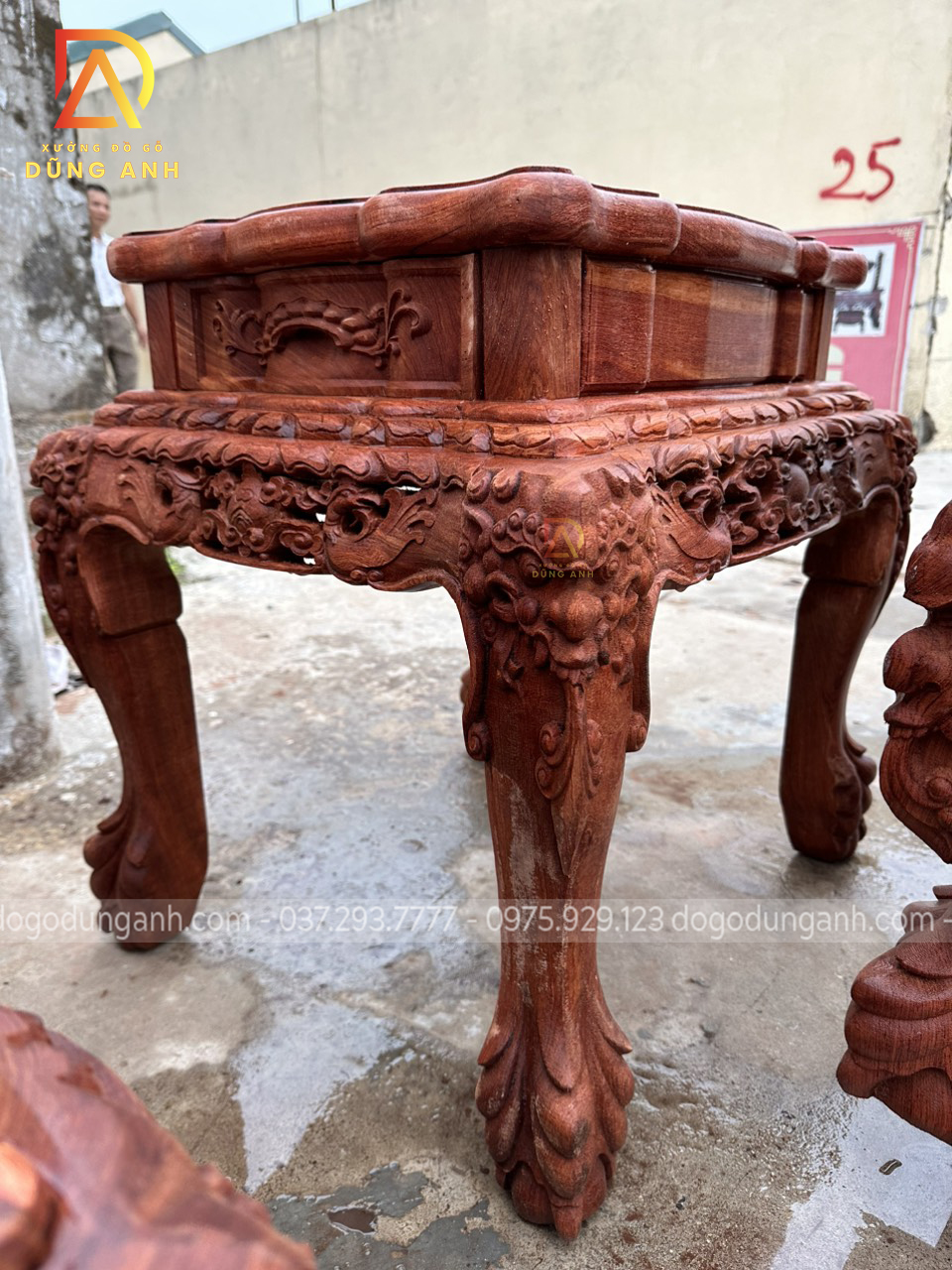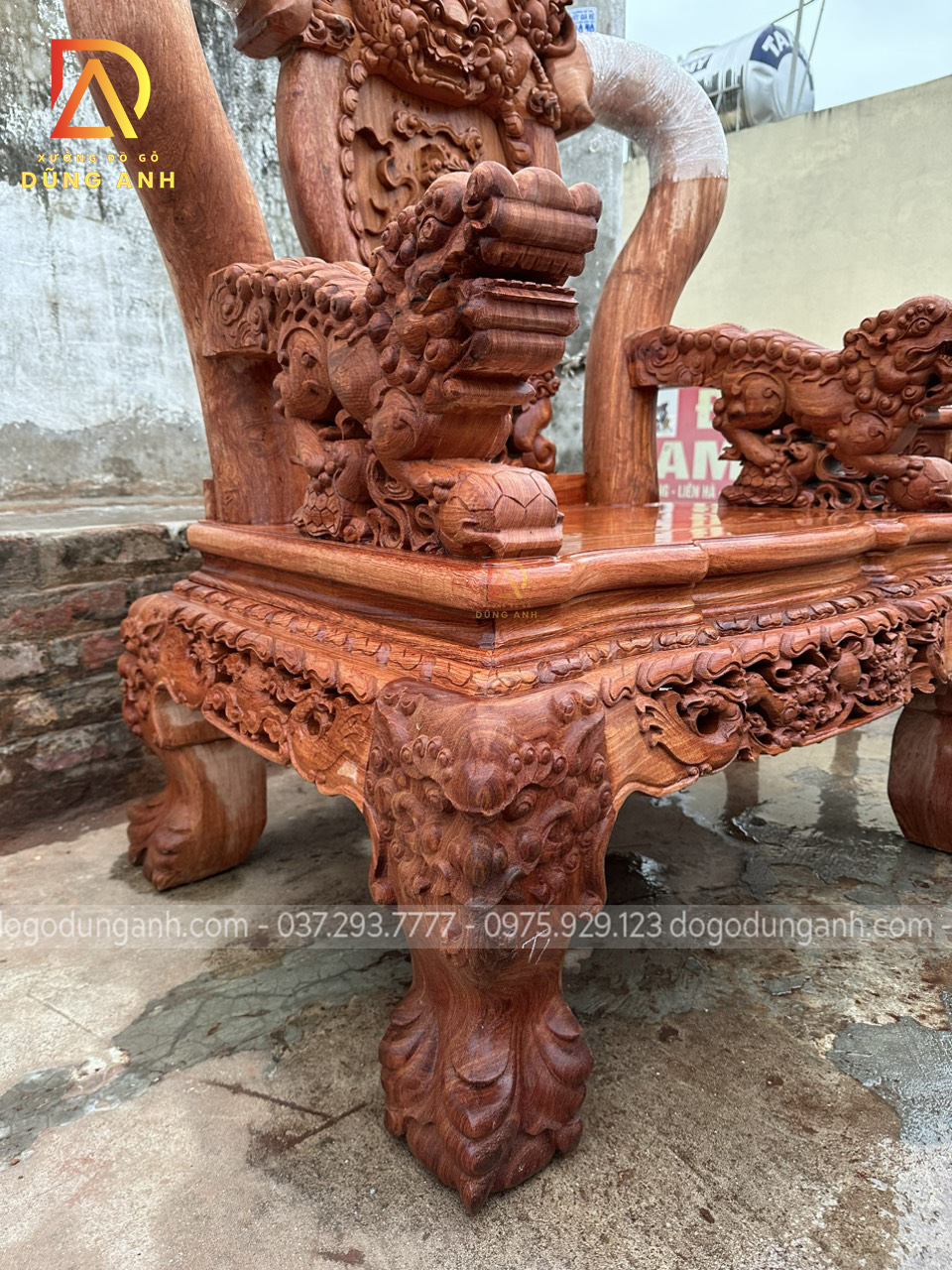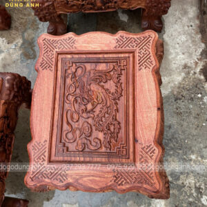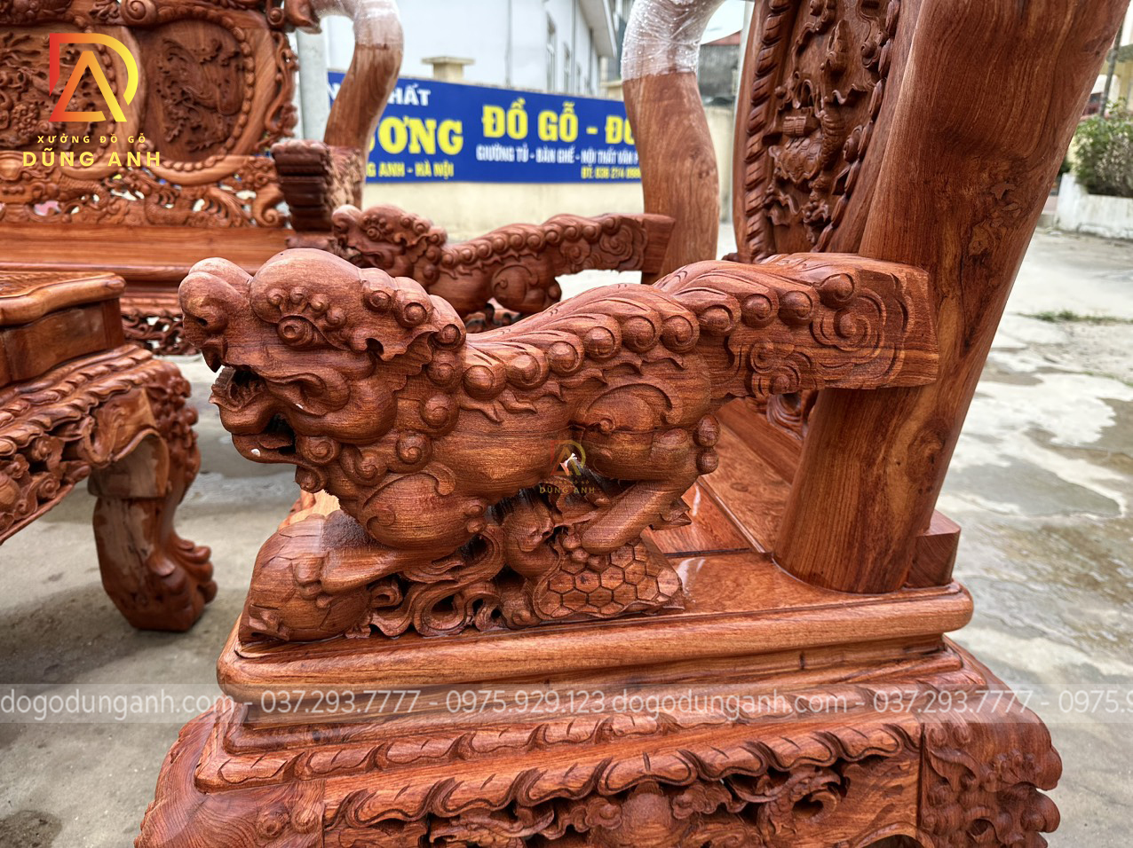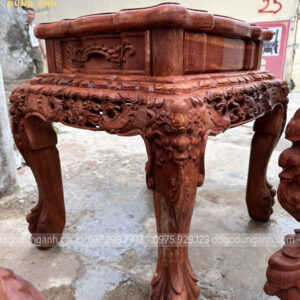 Bộ bàn ghế nghê bảo đỉnh cột 12 chân 14 gỗ hương đá có gì đặc biệt?