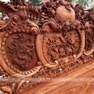 Thứ hai, các chi tiết đục đẽo đều do thợ thủ công lành nghề tạo nên; trừng chi tiết đều được đục chạm thủ công nên có chiều sâu, hình ảnh 3D nổi. Chạm khắc Rồng và Nghê mang nhiều giá trị văn hóa, phong thủy; mang lại may mắn cho chủ nhân.