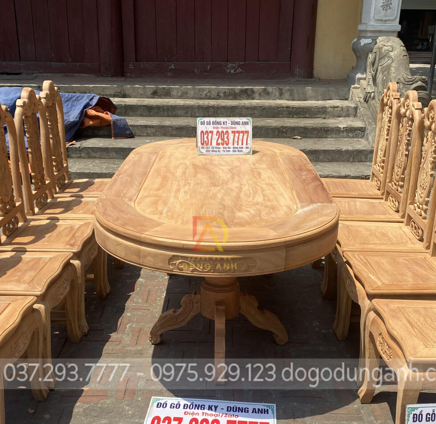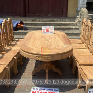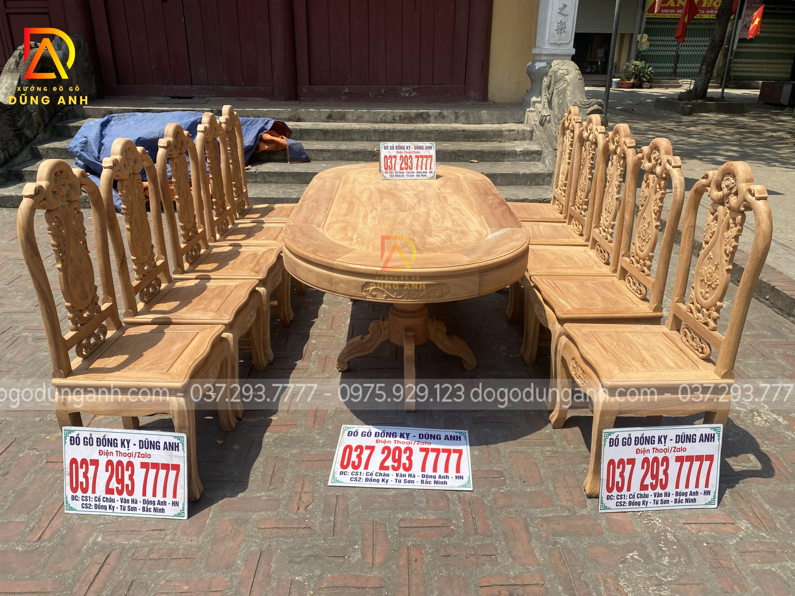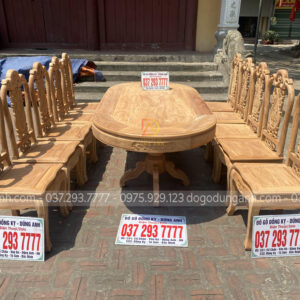 Bộ sản phẩm 10 ghế Hồng Con kết hợp với bàn bầu dục