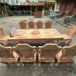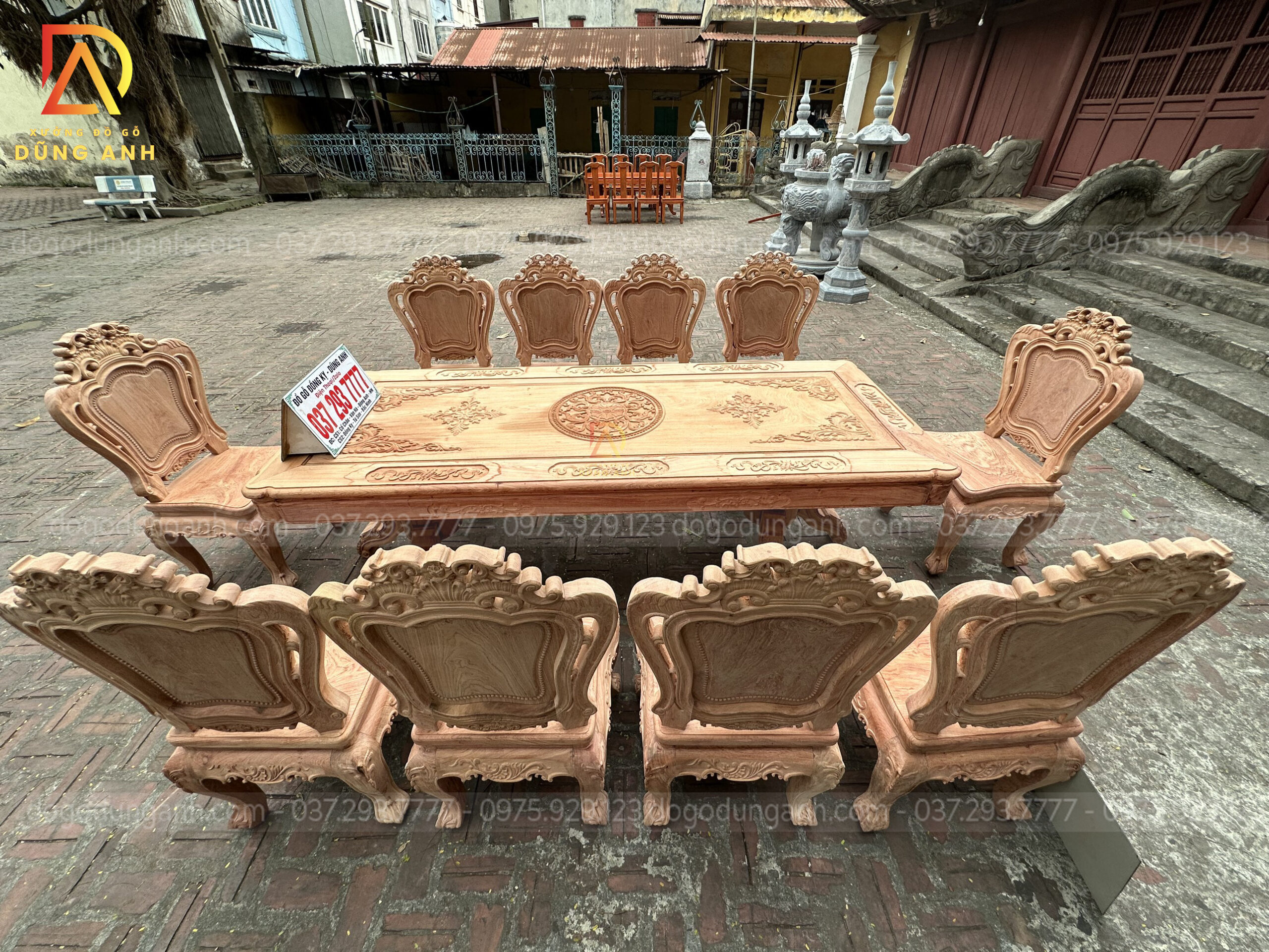 Bộ sản phẩm 10 ghế Louis Hoàng Gia 2 mặt kết hợp bàn chữ nhật cua góc – gỗ Hương Đá