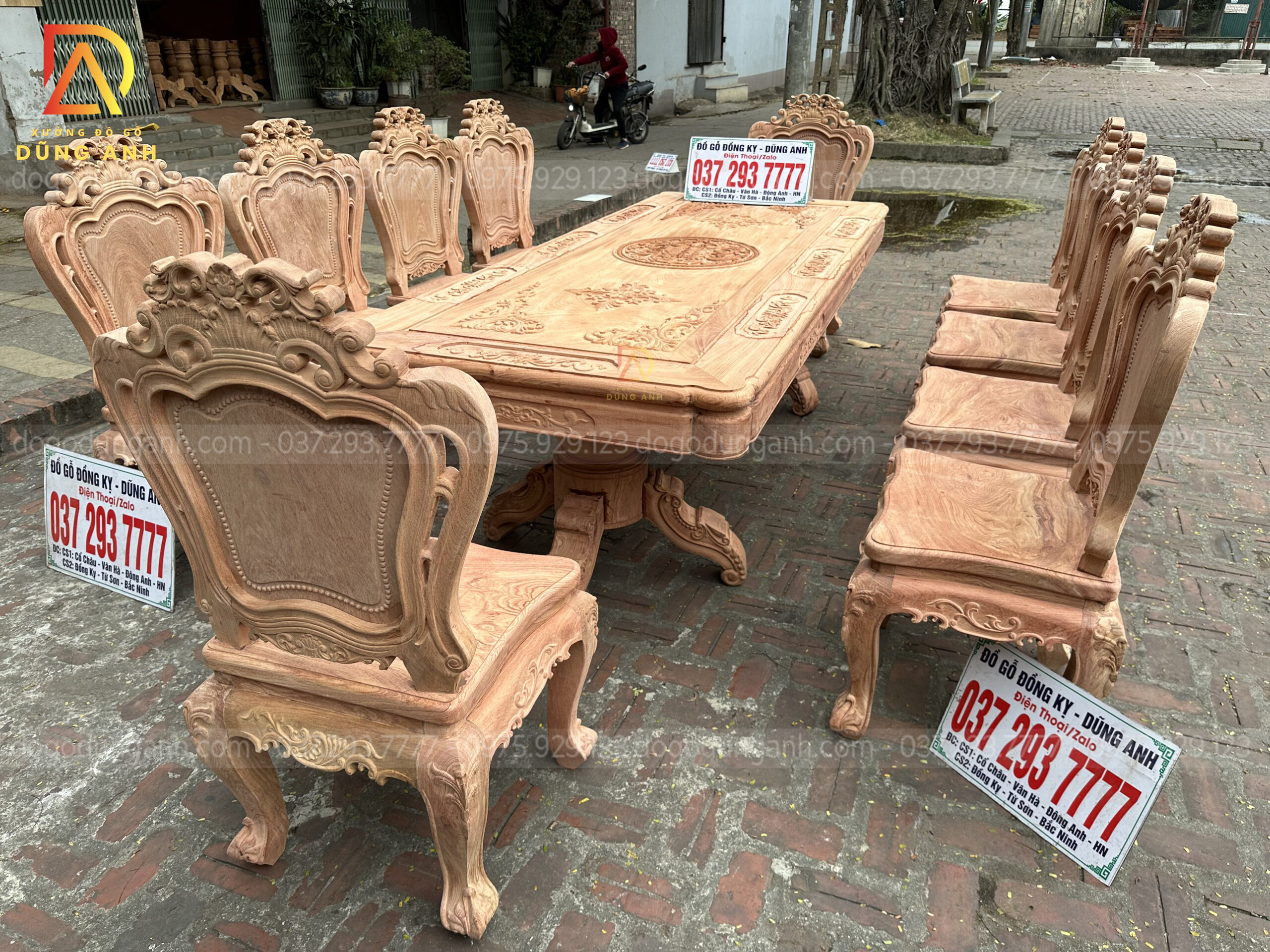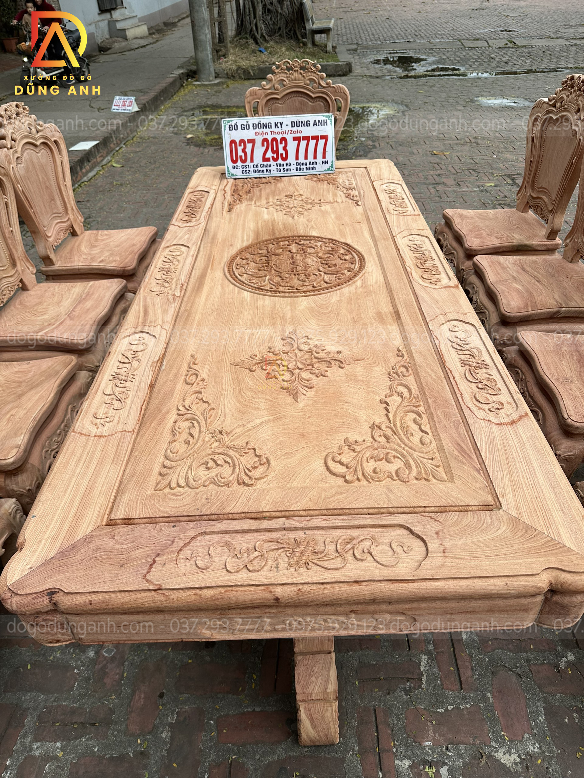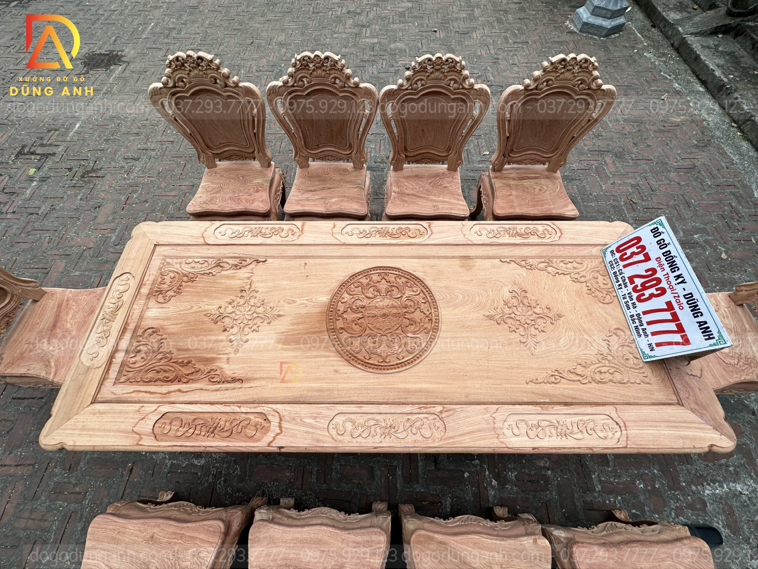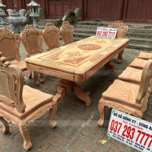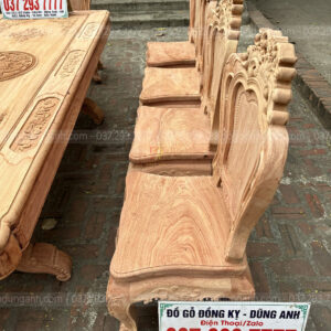 Bộ sản phẩm Xưởng đồ gỗ Dũng Anh bên em chế tác hoàn toàn từ 100% chất liệu gỗ hương đá dòng gỗ cao cấp chất lượng với giá thành khá đắt đỏ. Được xưởng chọn lọc kỹ càng nên đảm bảo độ đanh chắc hoàn hảo để tạo nên các họa tiết đục tinh xảo, nổi bật theo phong cách louis hoàng gia tân cổ điển vô cùng sang trọng và bắt mắt.