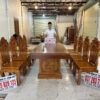 Bộ sản phẩm 10 ghế Louis Hoàng Gia tân cổ điển kết hợp bàn nguyên khối siêu vân gỗ Gõ đỏ