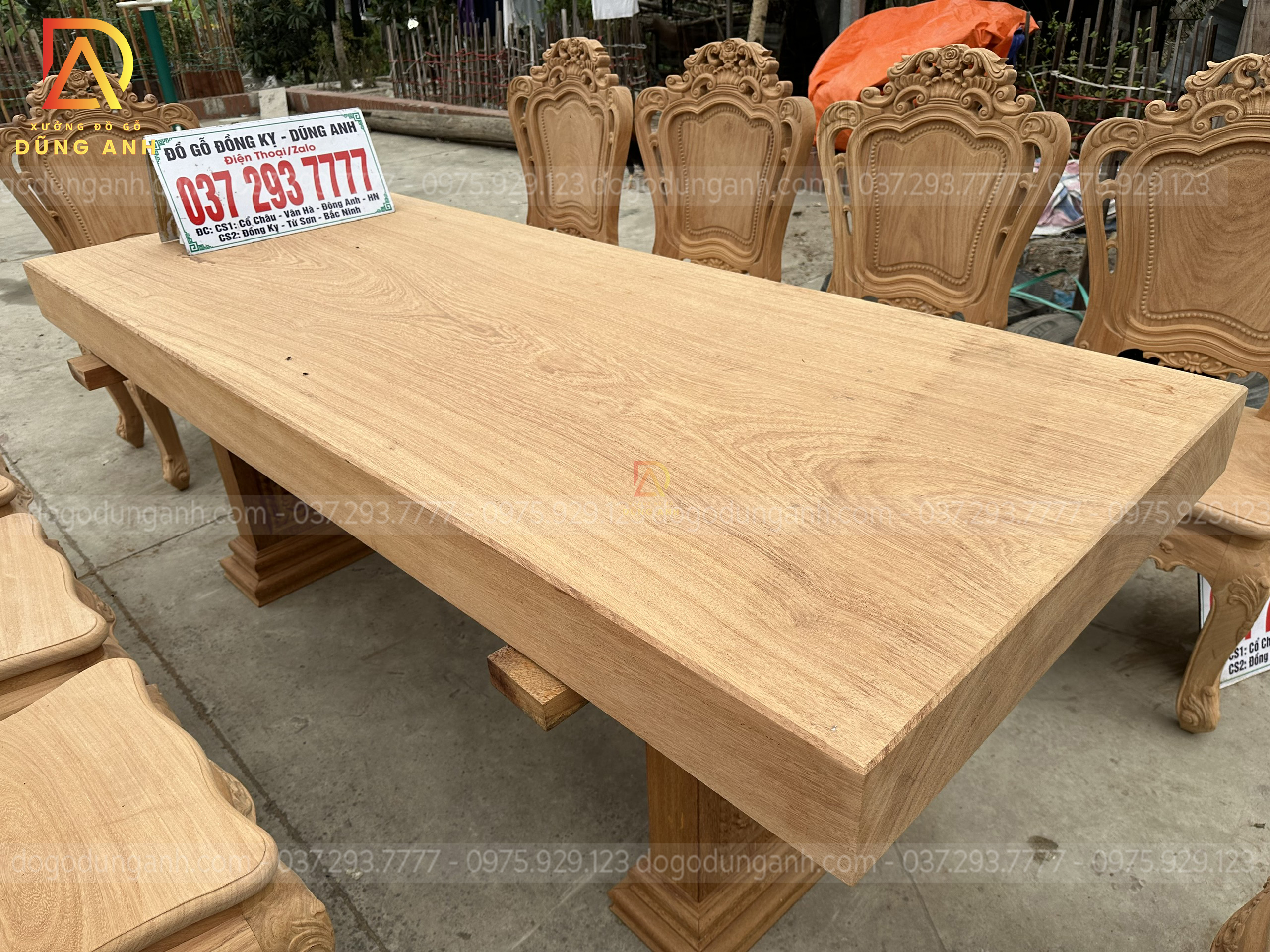 Bàn ăn gỗ gõ đỏ nguyên khối siêu dày hàng tuyển gỗ lựa vân cao cấp