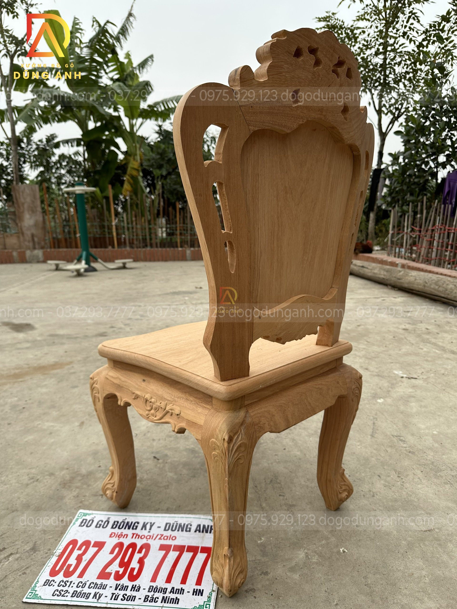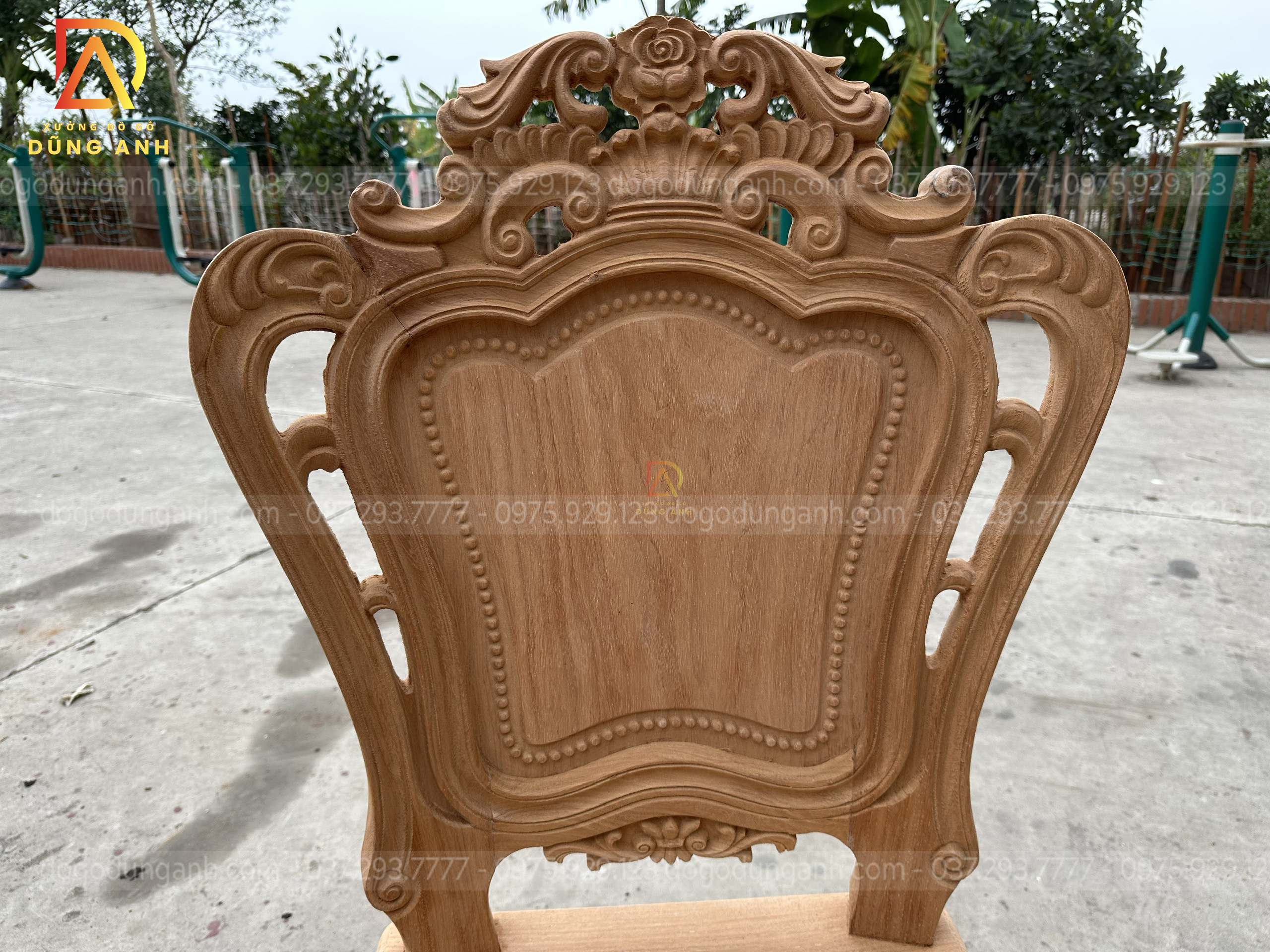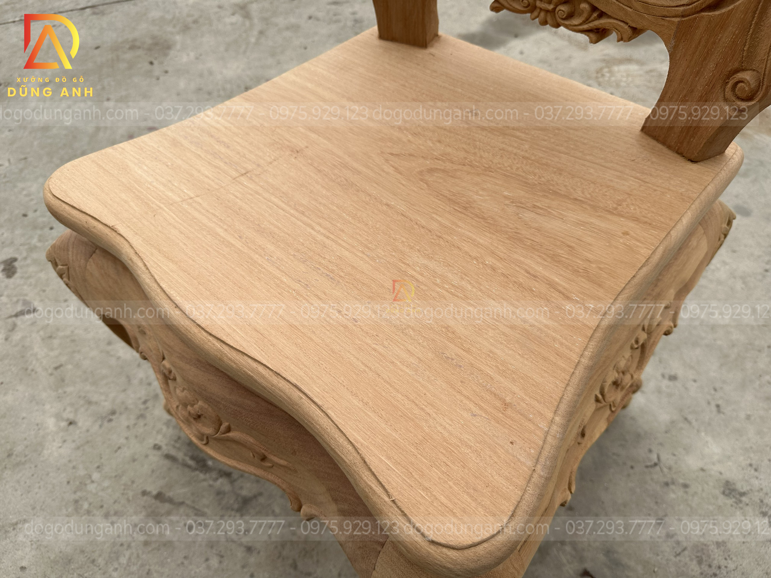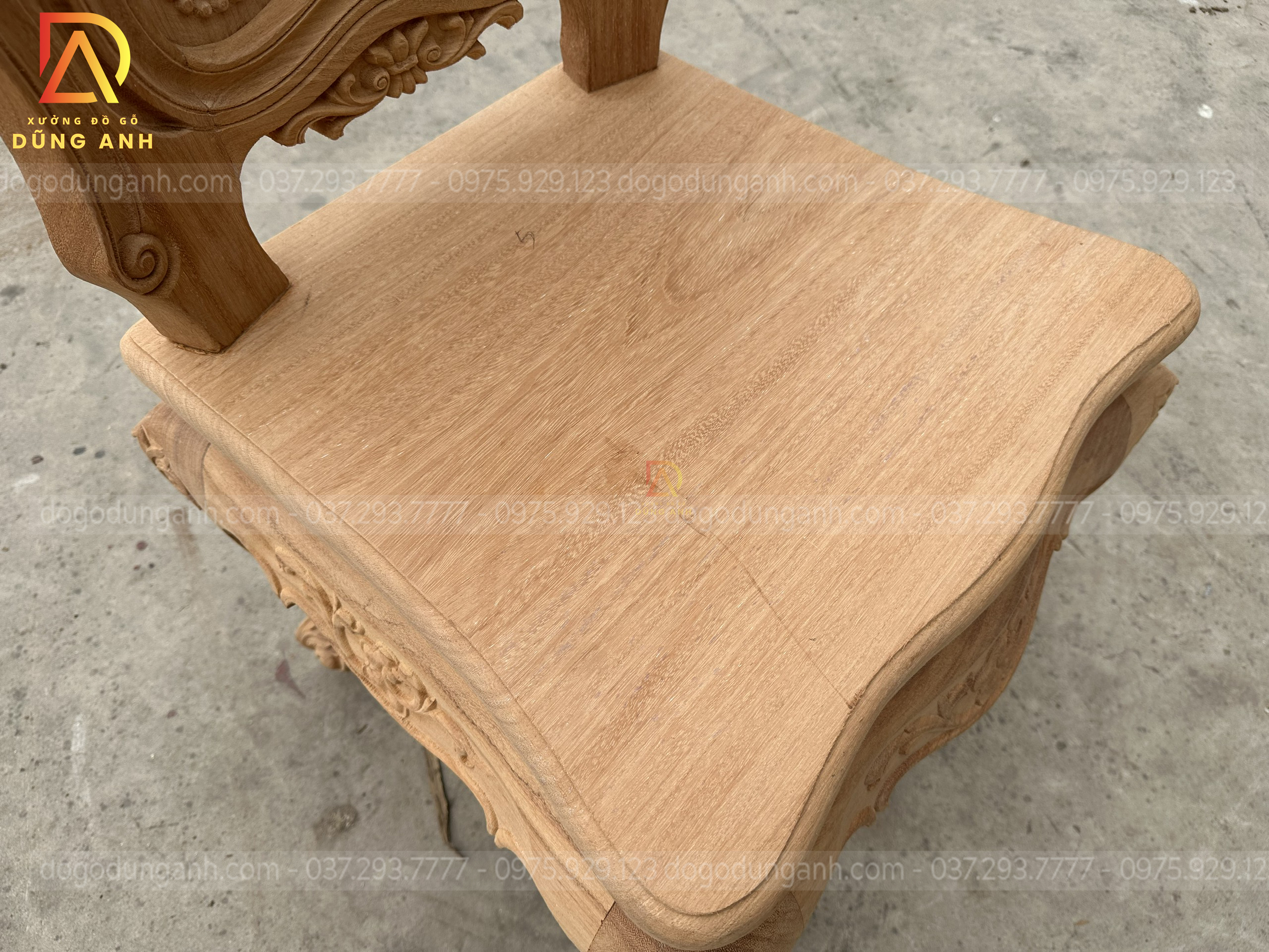 - Chương ghế liền dày 5cm, cột ghế dày 5cm đục tỉa hoa lá tây.