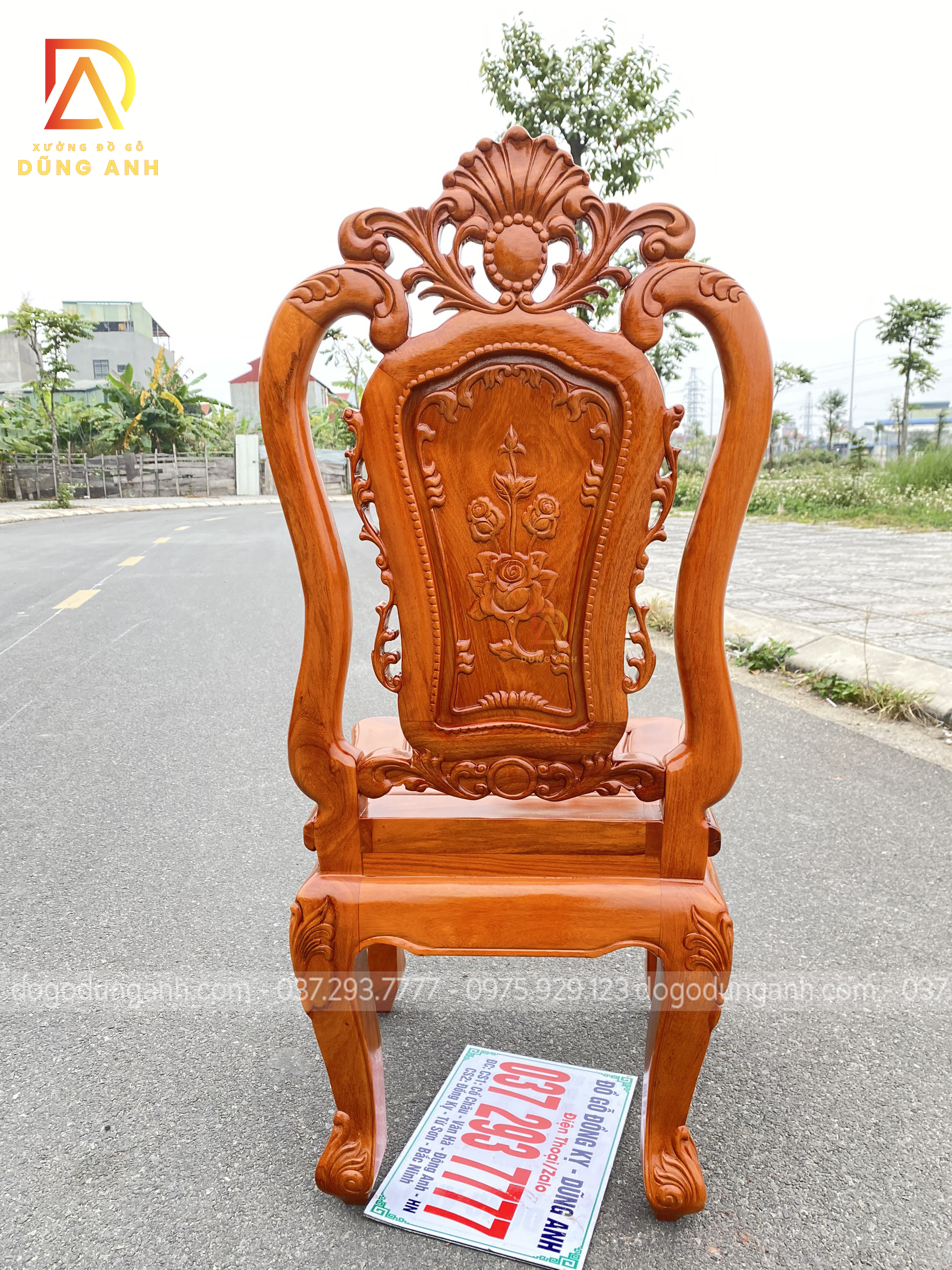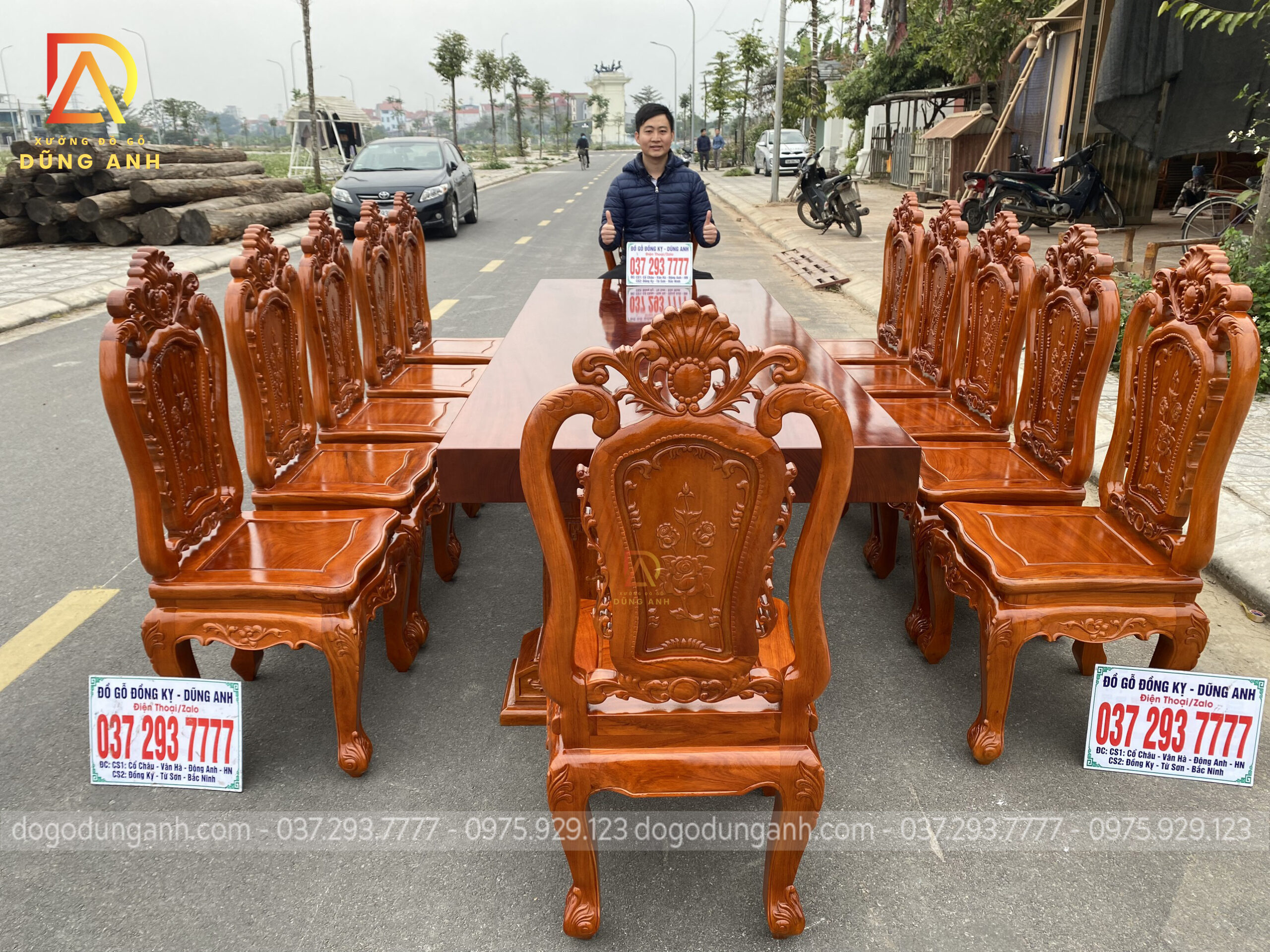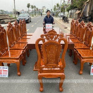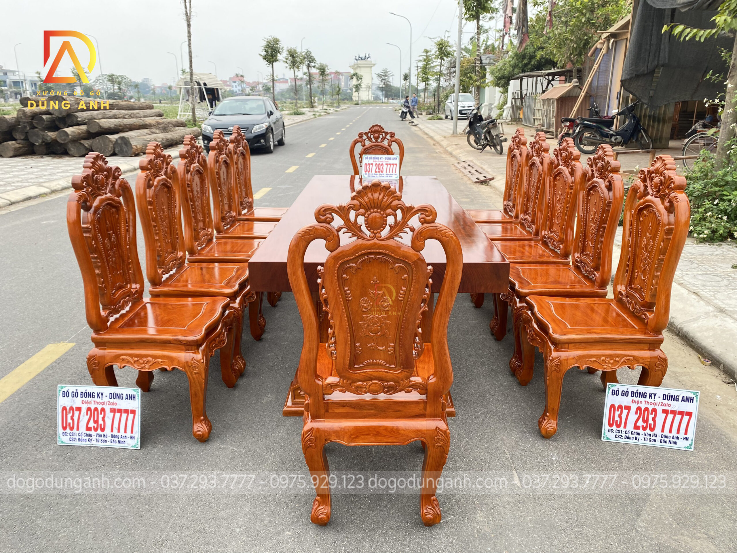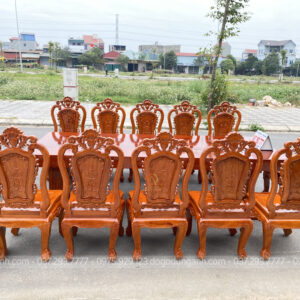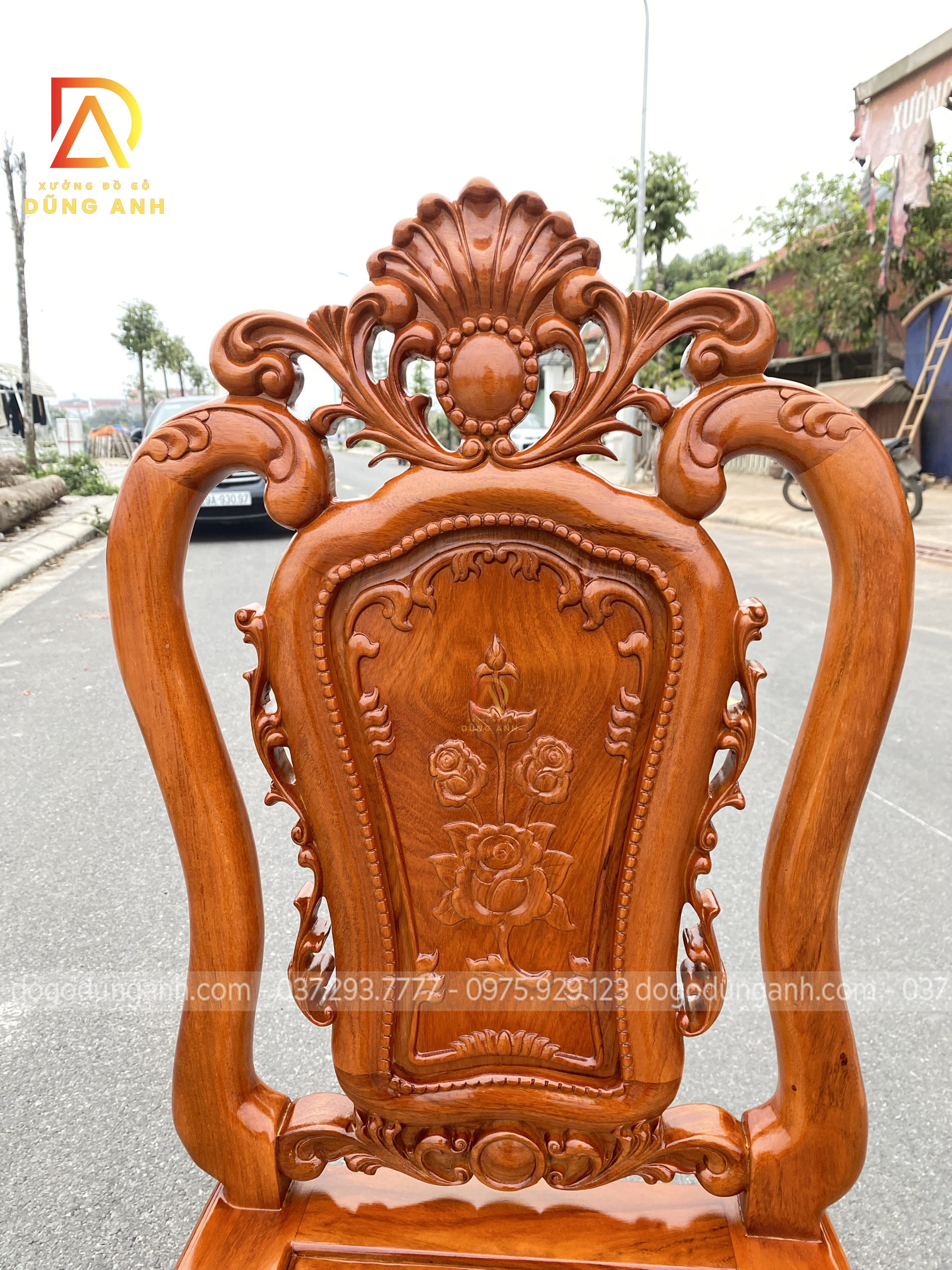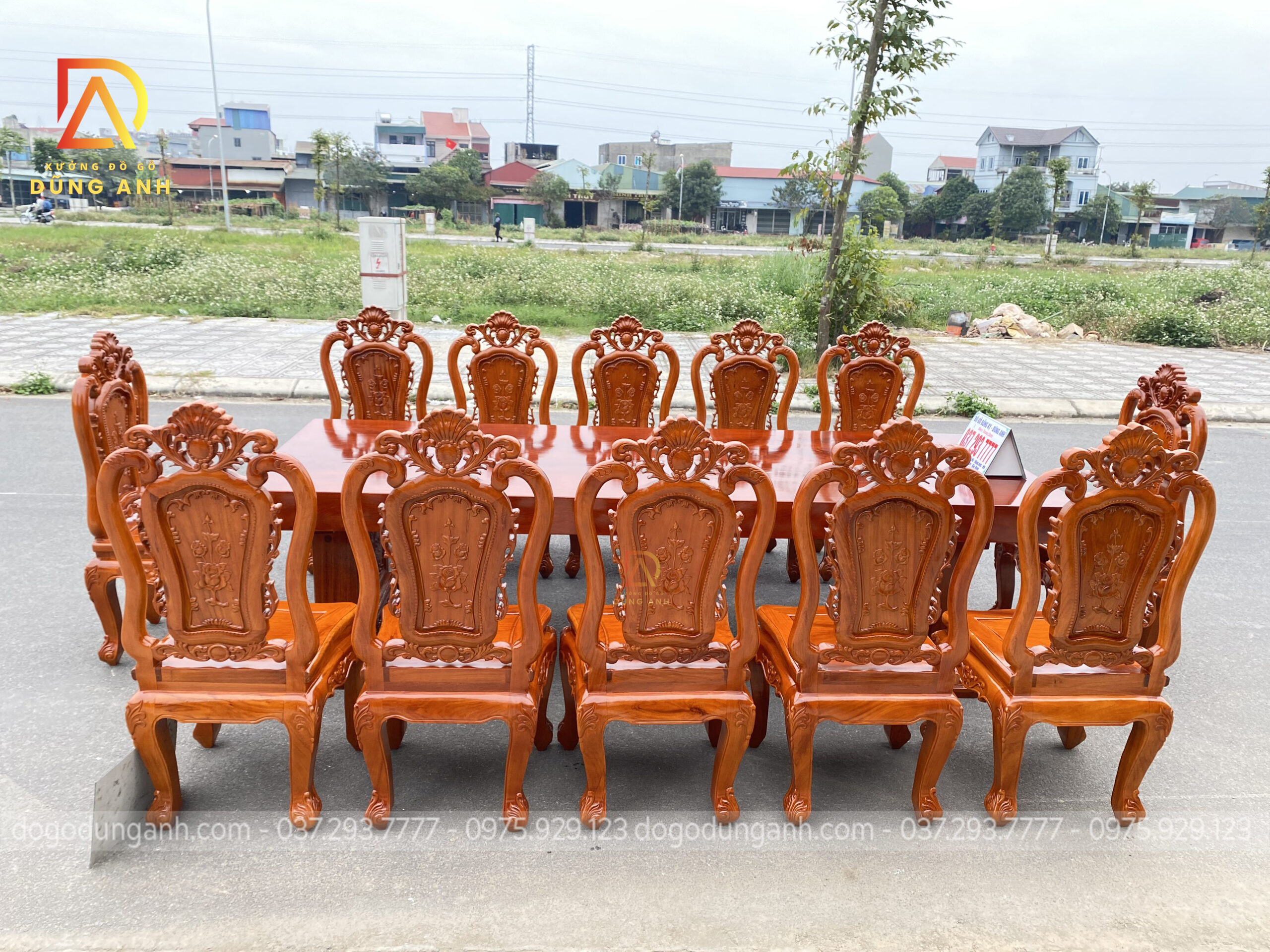 Bộ sản phẩm 12 Ghế Louis Hoa Hồng + Bàn Nguyên Khối với chất liệu gỗ Gõ Đỏ cực kì SANG TRỌNG và ĐẲNG CẤP