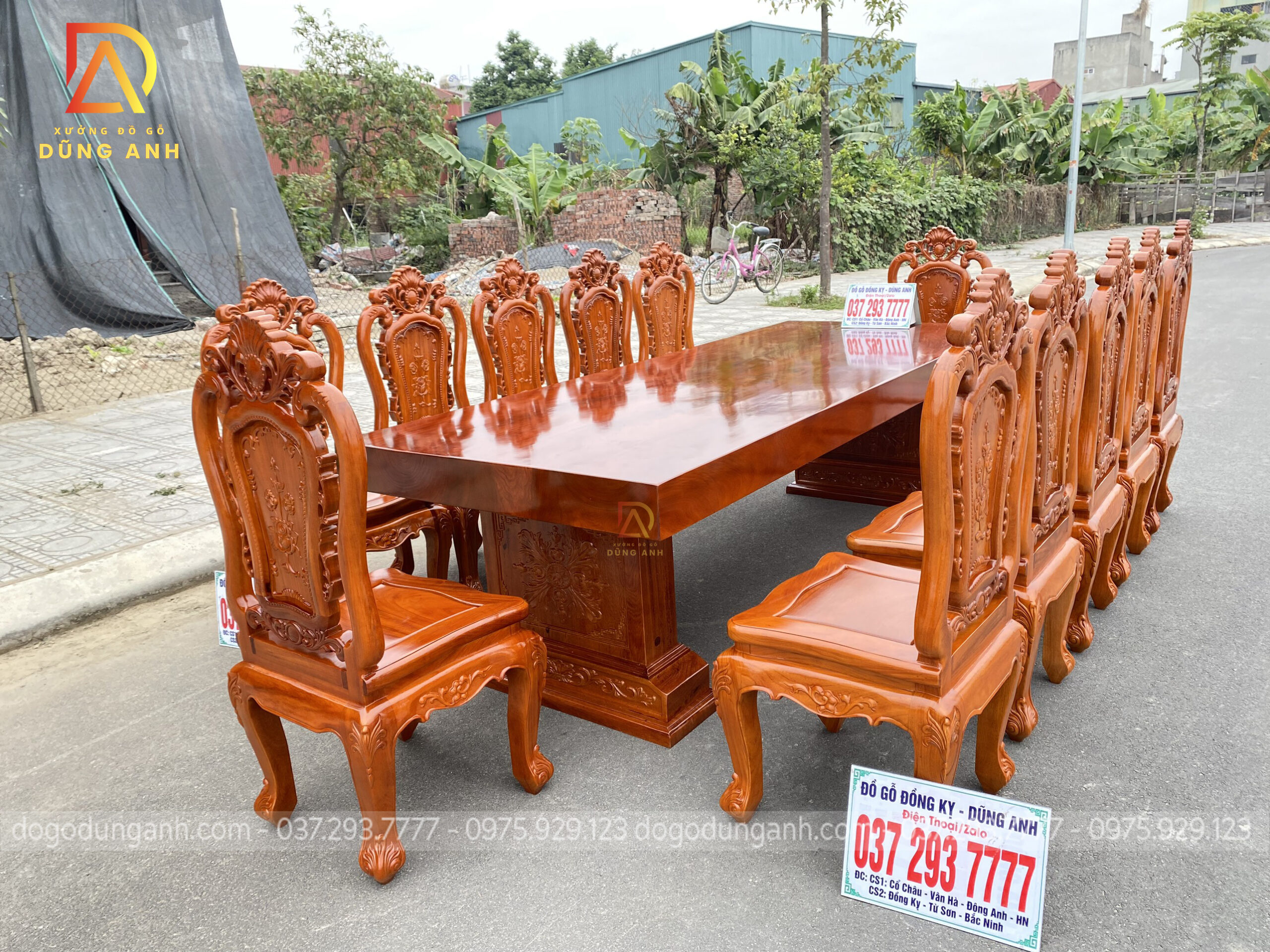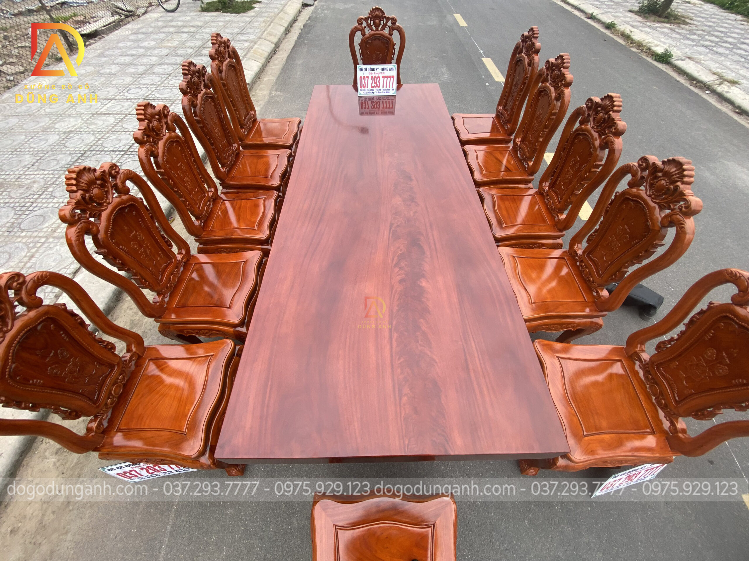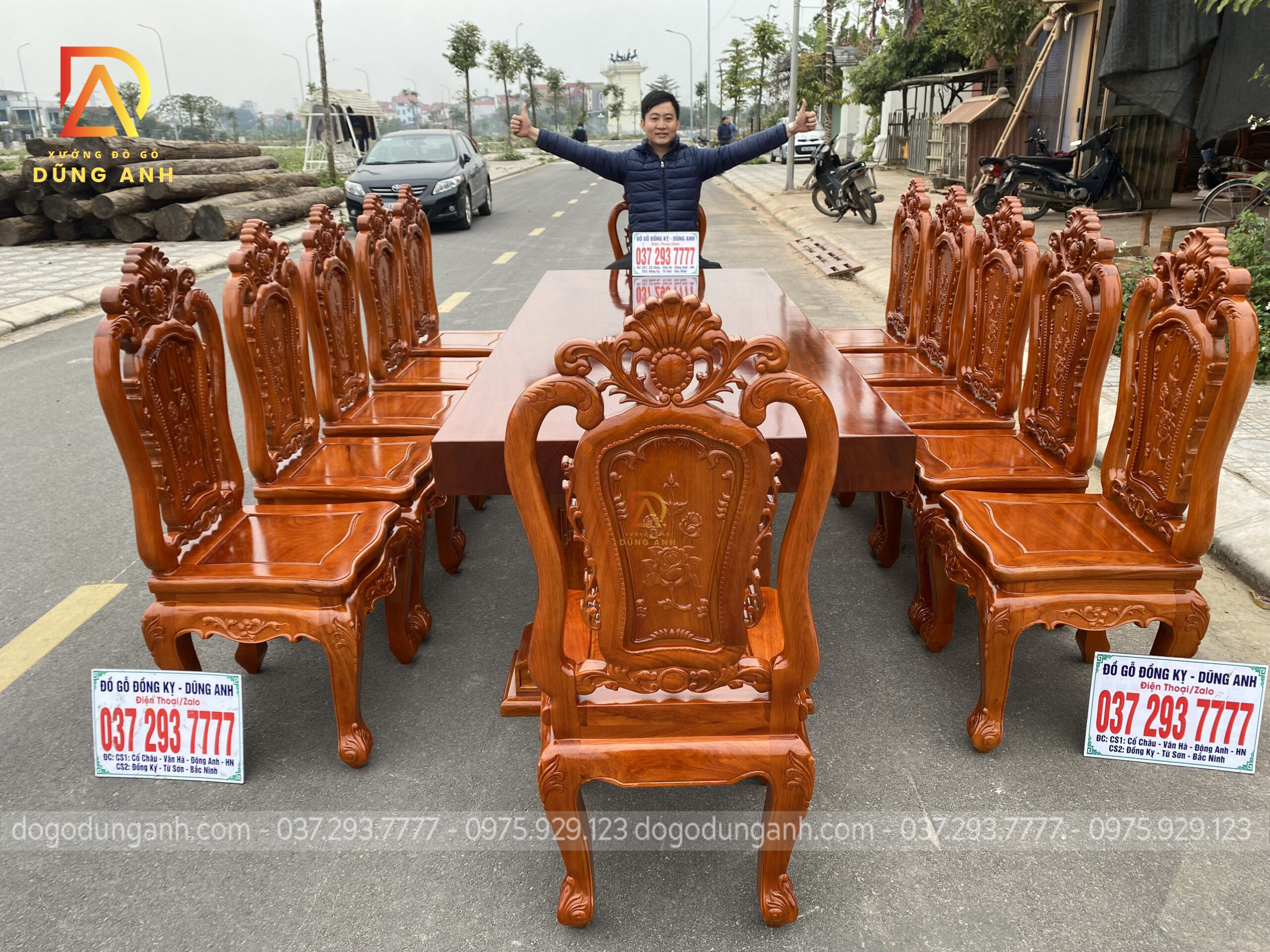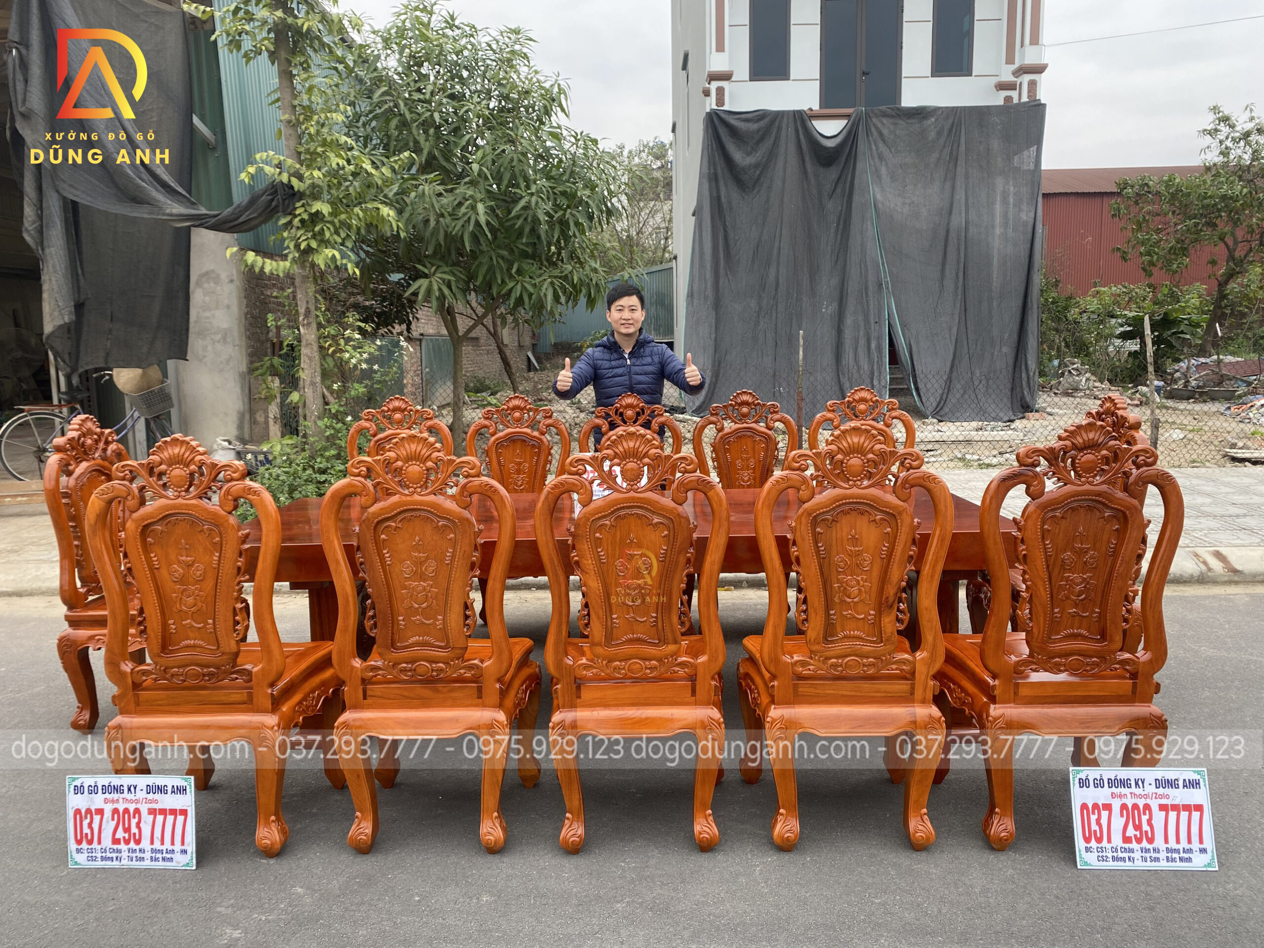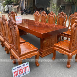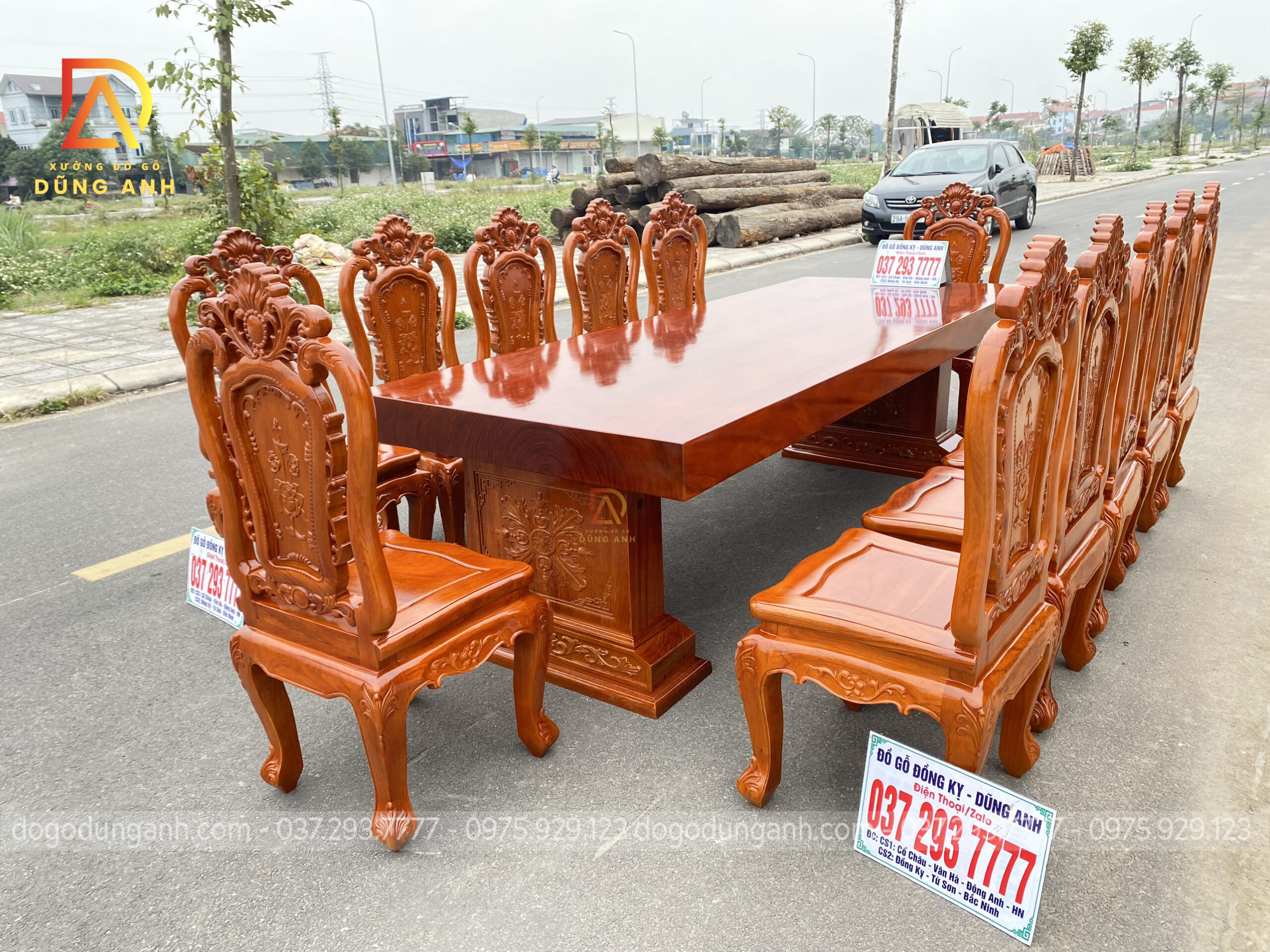 Bộ sản phẩm 12 Ghế Louis Hoa Hồng + Bàn Nguyên Khối với chất liệu gỗ Gõ Đỏ cực kì SANG TRỌNG và ĐẲNG CẤP