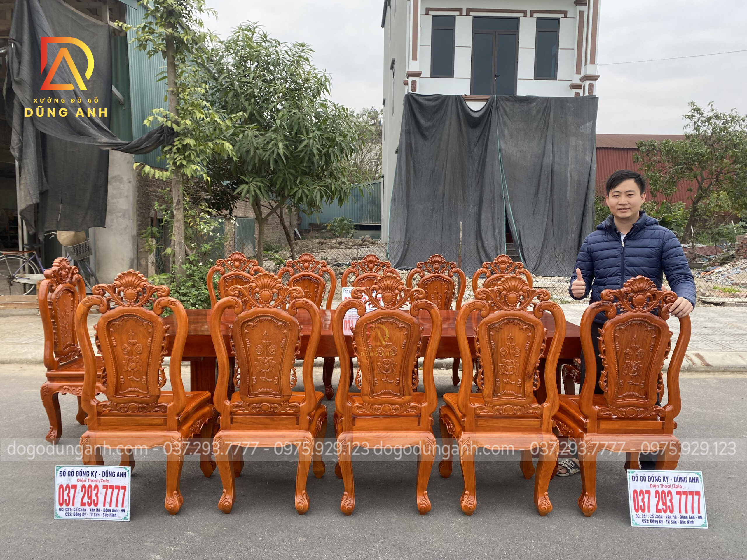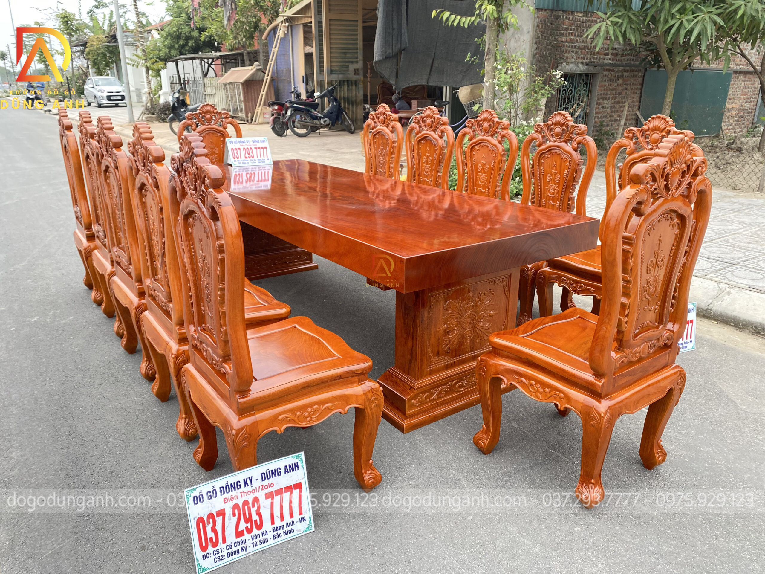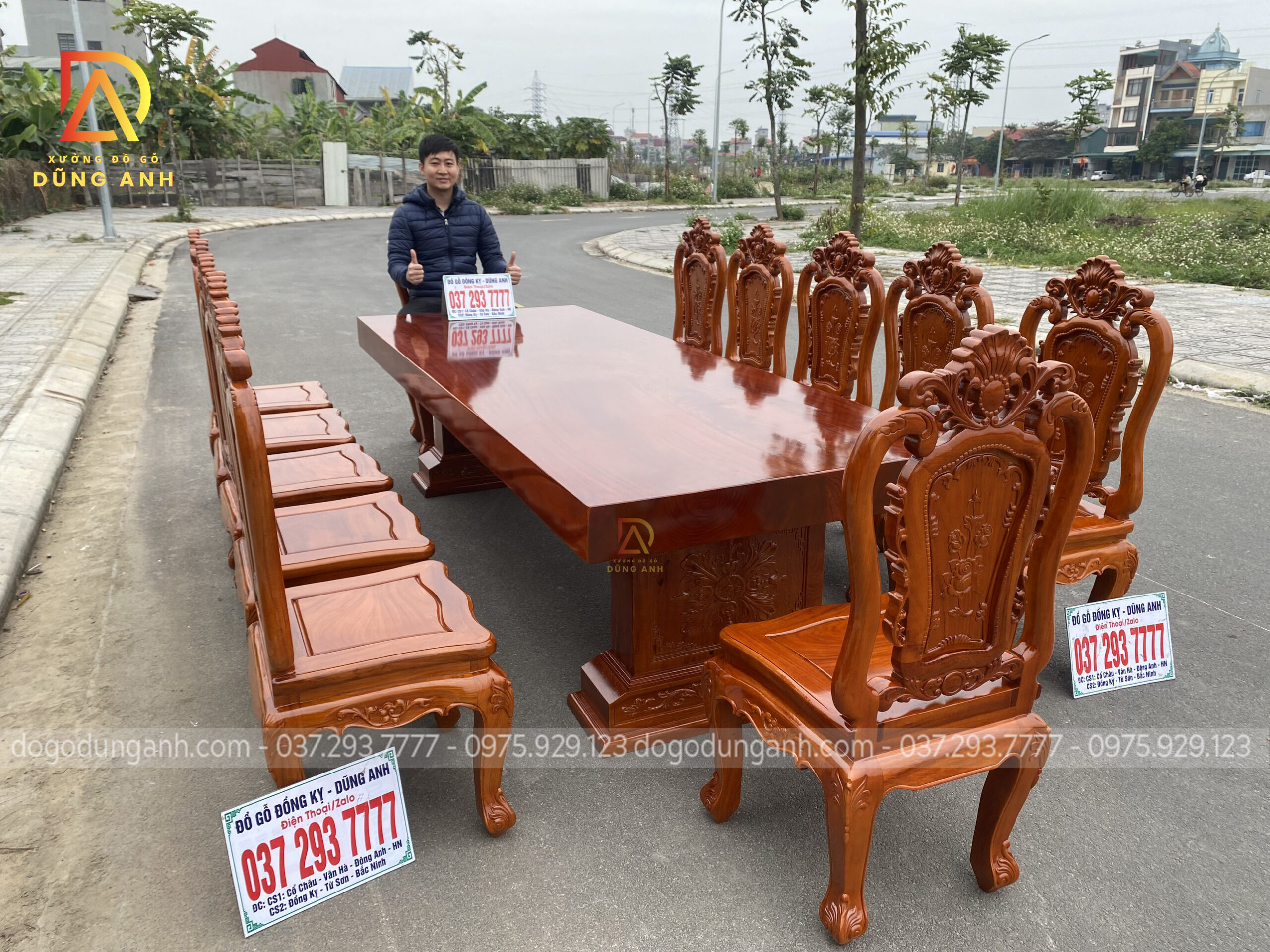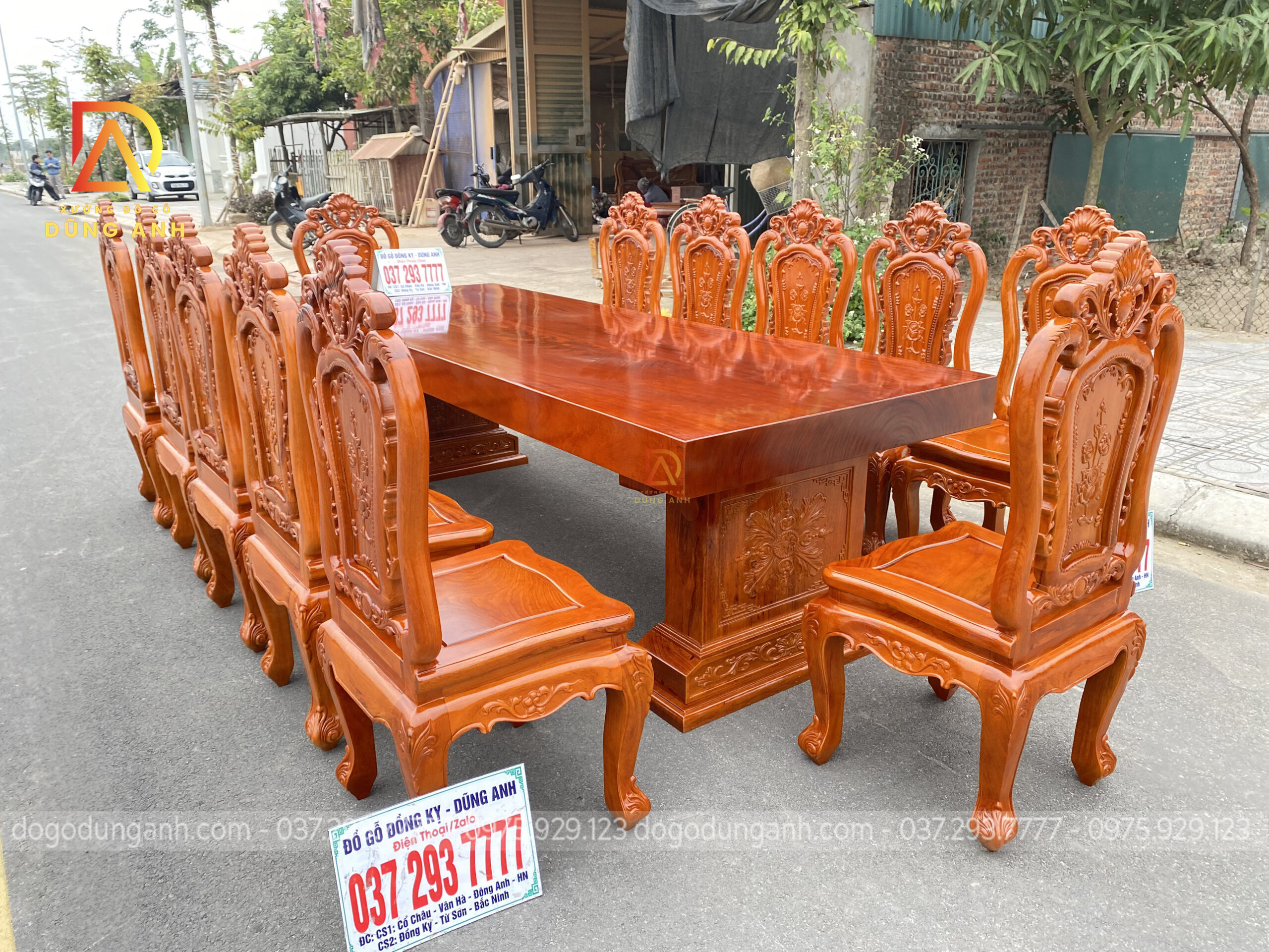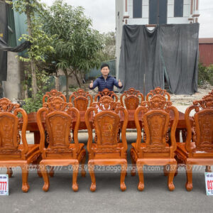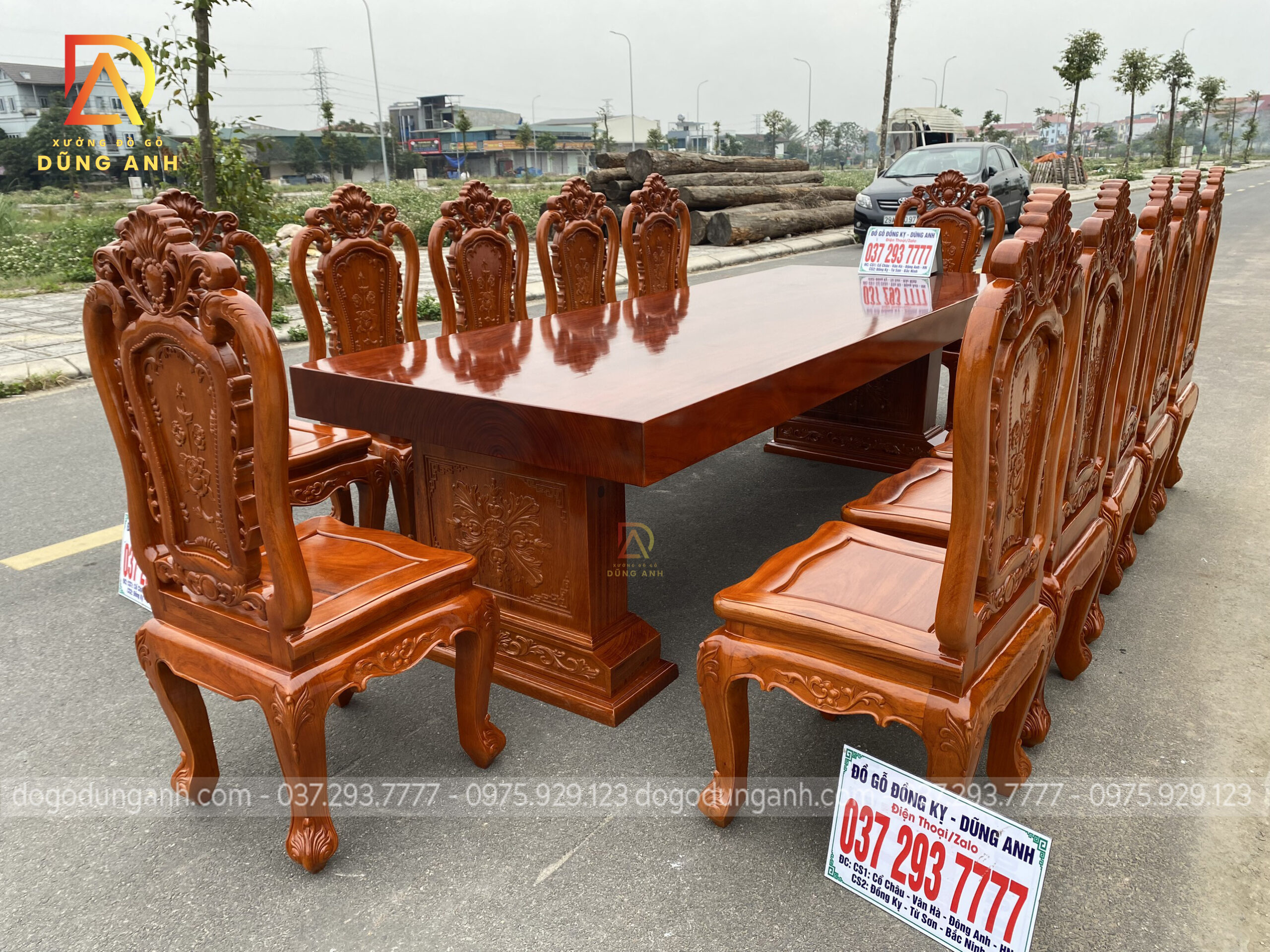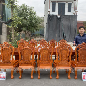 Bộ sản phẩm 12 Ghế Louis Hoa Hồng + Bàn Nguyên Khối với chất liệu gỗ Gõ Đỏ cực kì SANG TRỌNG và ĐẲNG CẤP