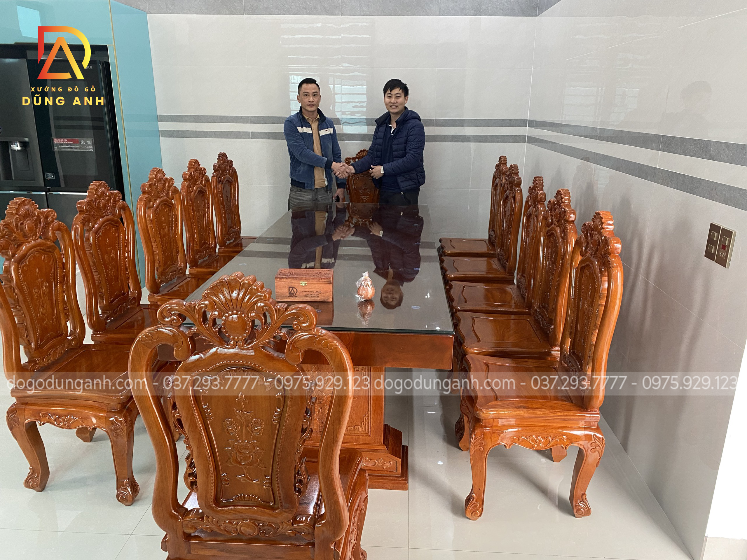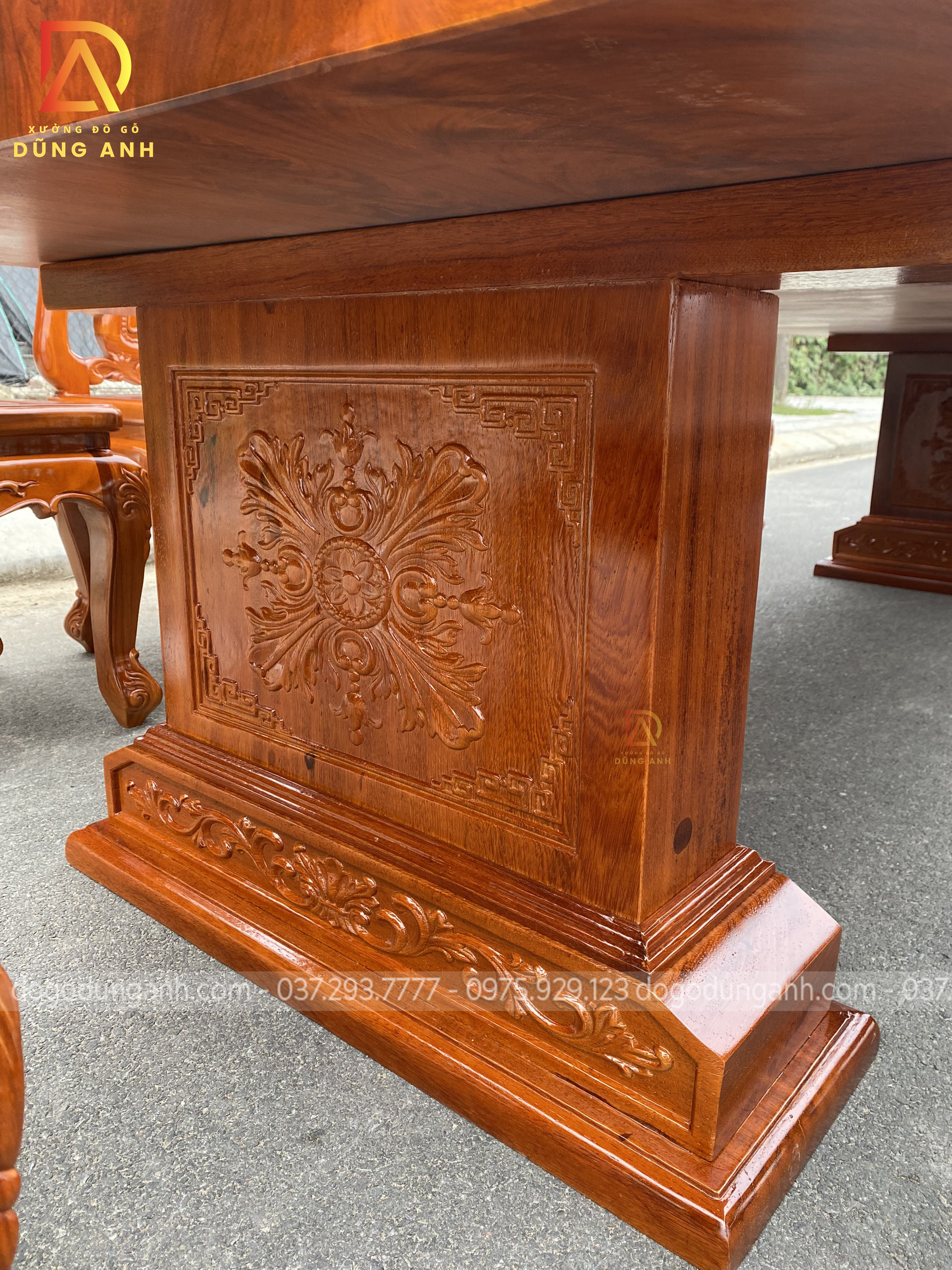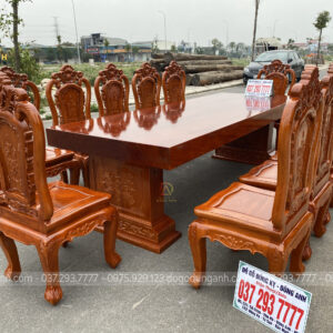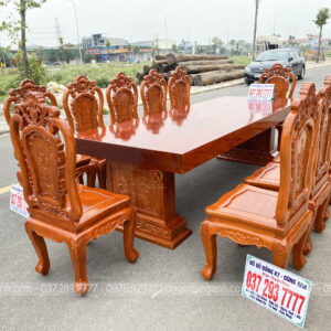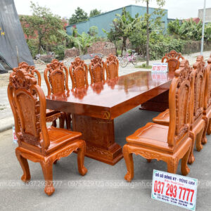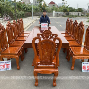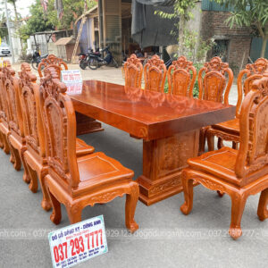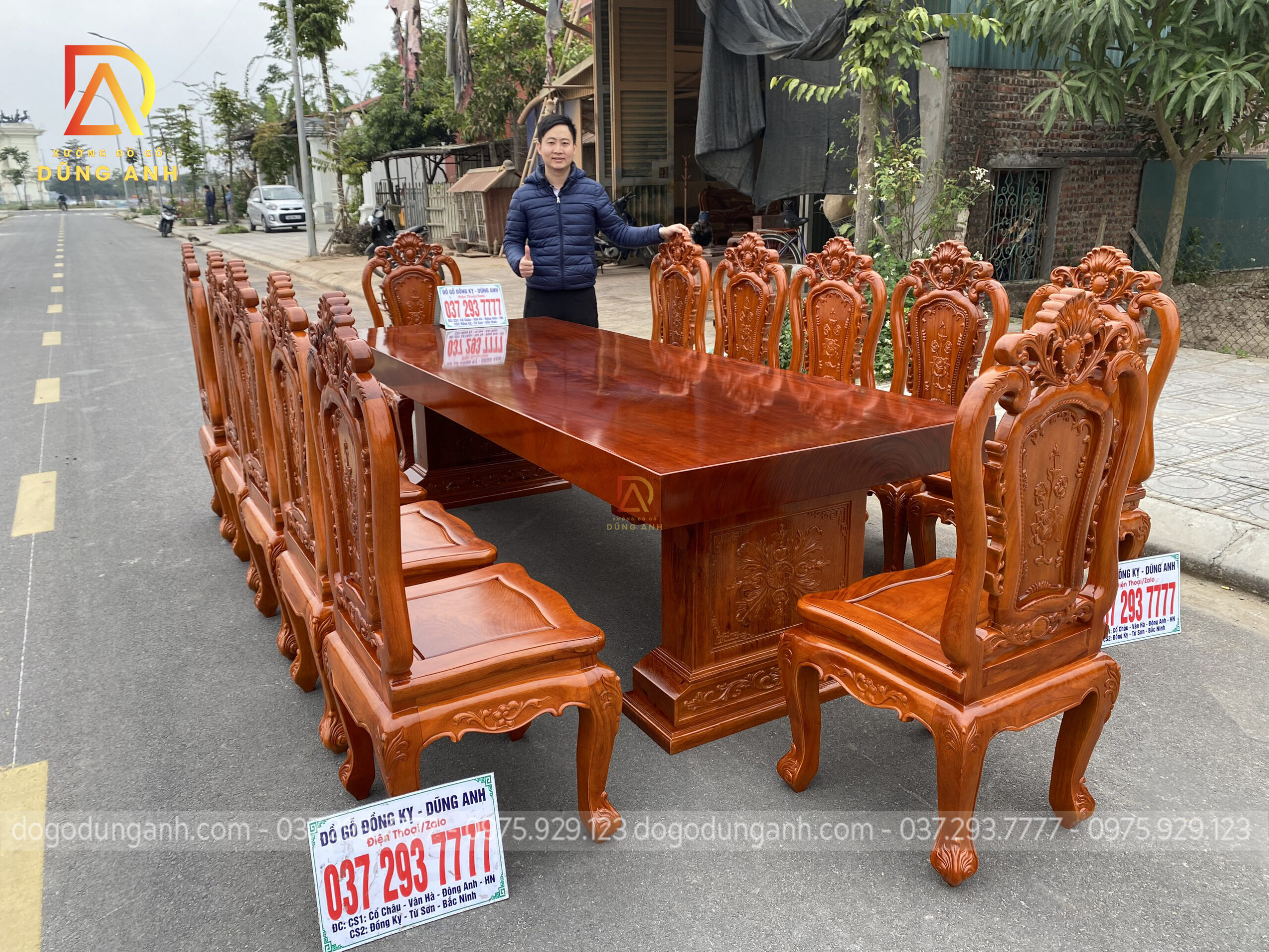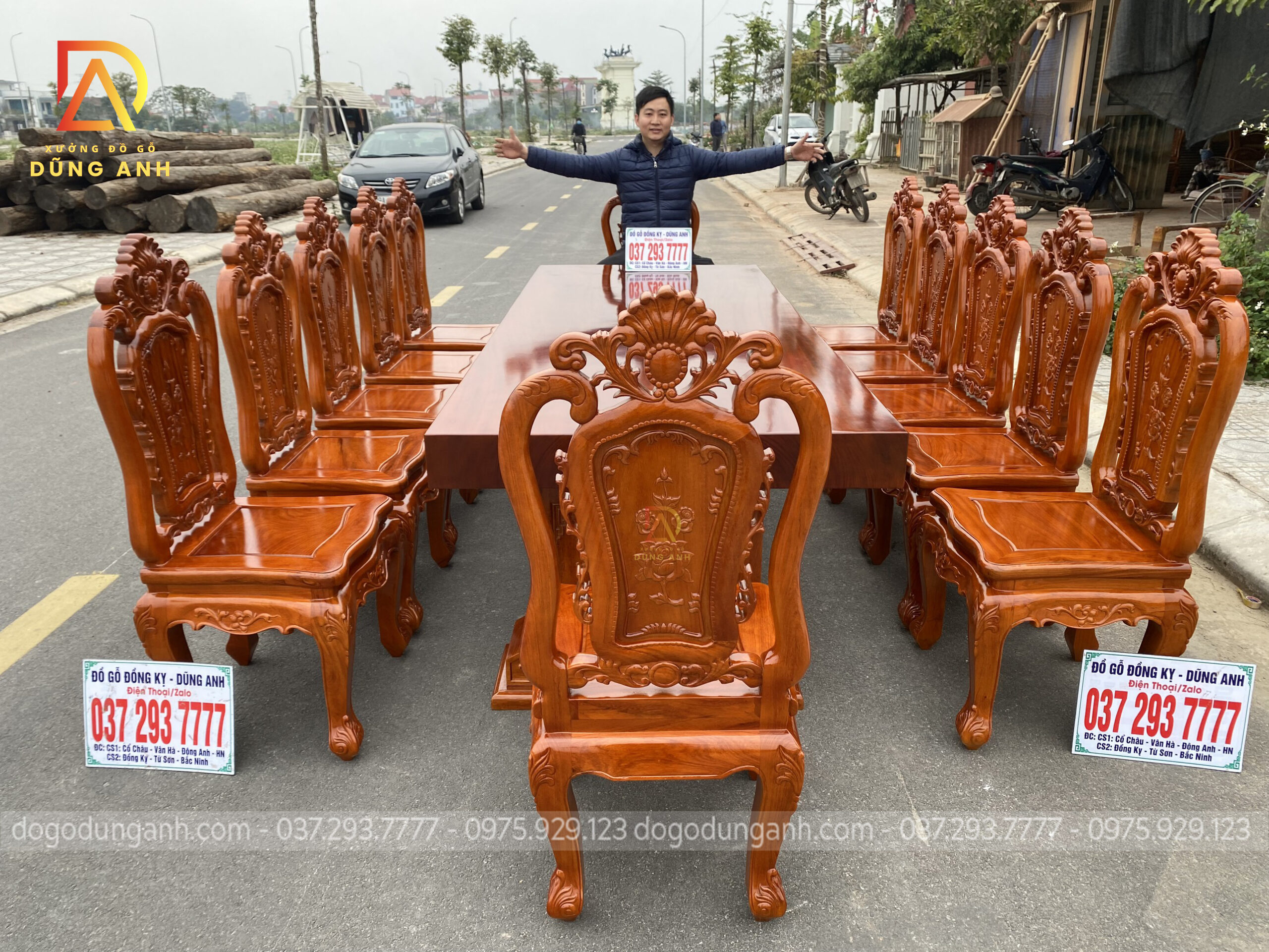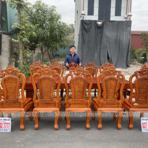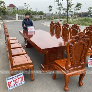 Bộ sản phẩm 12 Ghế Louis Hoa Hồng + Bàn Nguyên Khối với chất liệu gỗ Gõ Đỏ cực kì SANG TRỌNG và ĐẲNG CẤP
