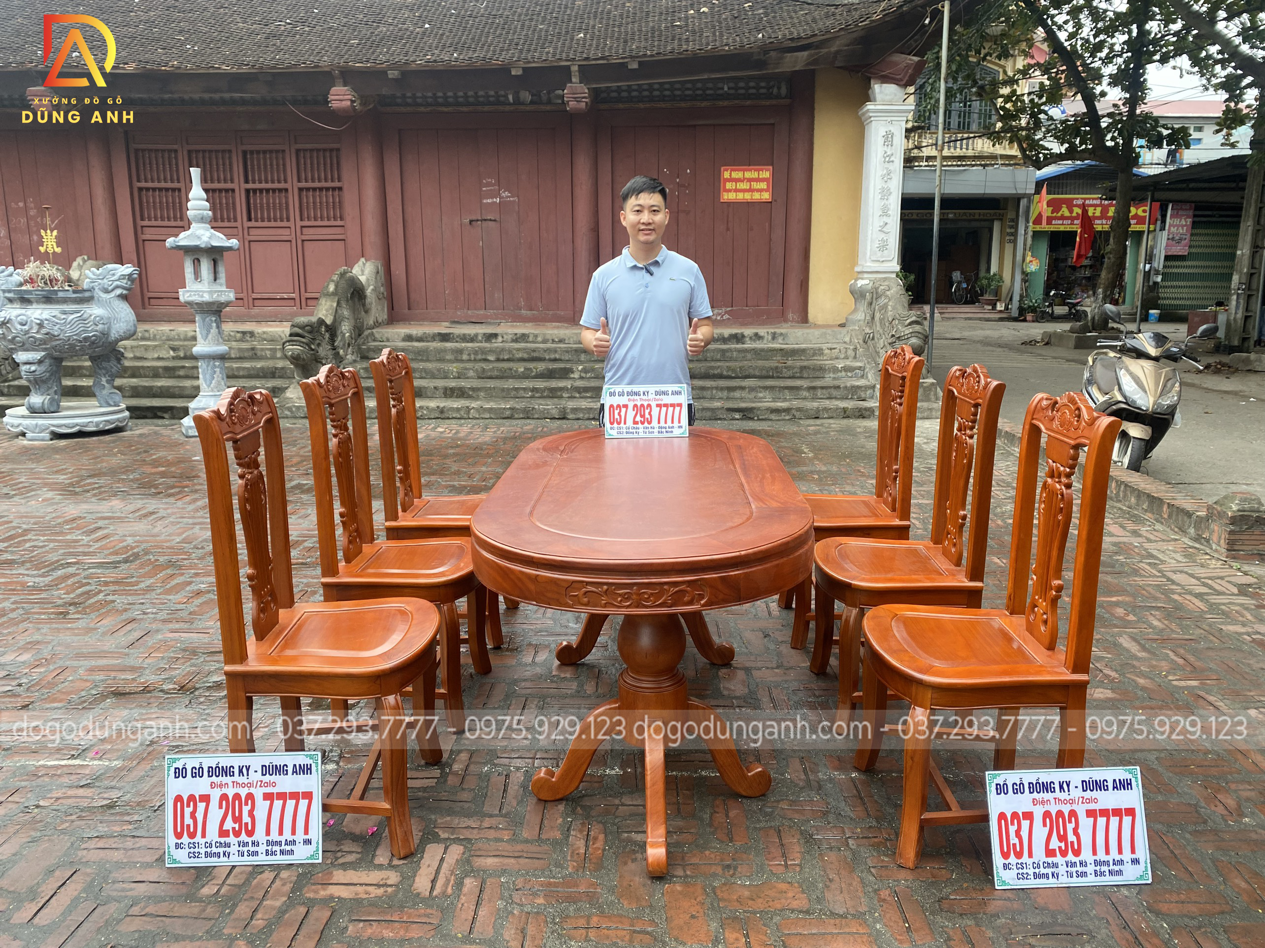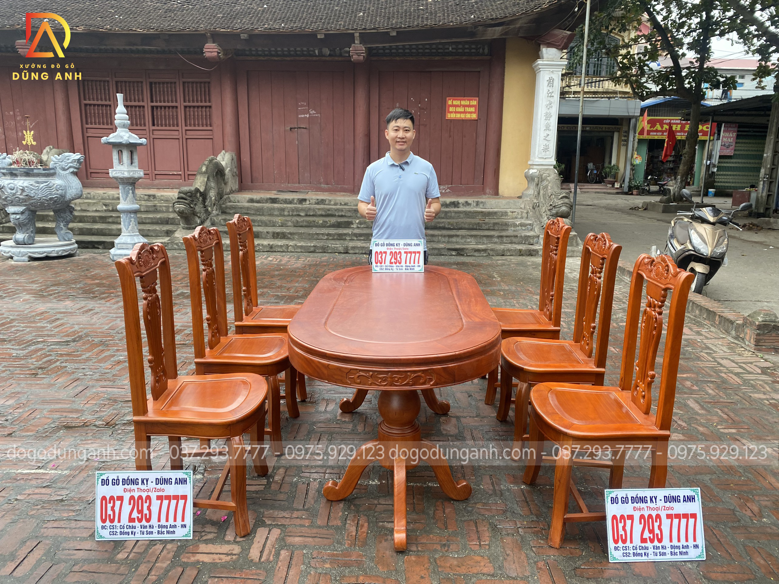 Bộ sản phẩm 6 ghế cay đàn và 1 bàn bầu dục xưởng Đồ Gỗ Đồng Kỵ Dũng Anh