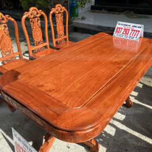 Bộ sản phẩm 6 ghế Hồng vách Nho + Bàn chữ nhật bo góc – Gõ đỏ