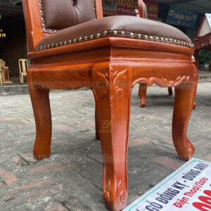 Bộ sản phẩm 6 ghế Louis Hoàng gia bọc da kết hợp bàn củ lạc – gỗ Gõ Đỏ