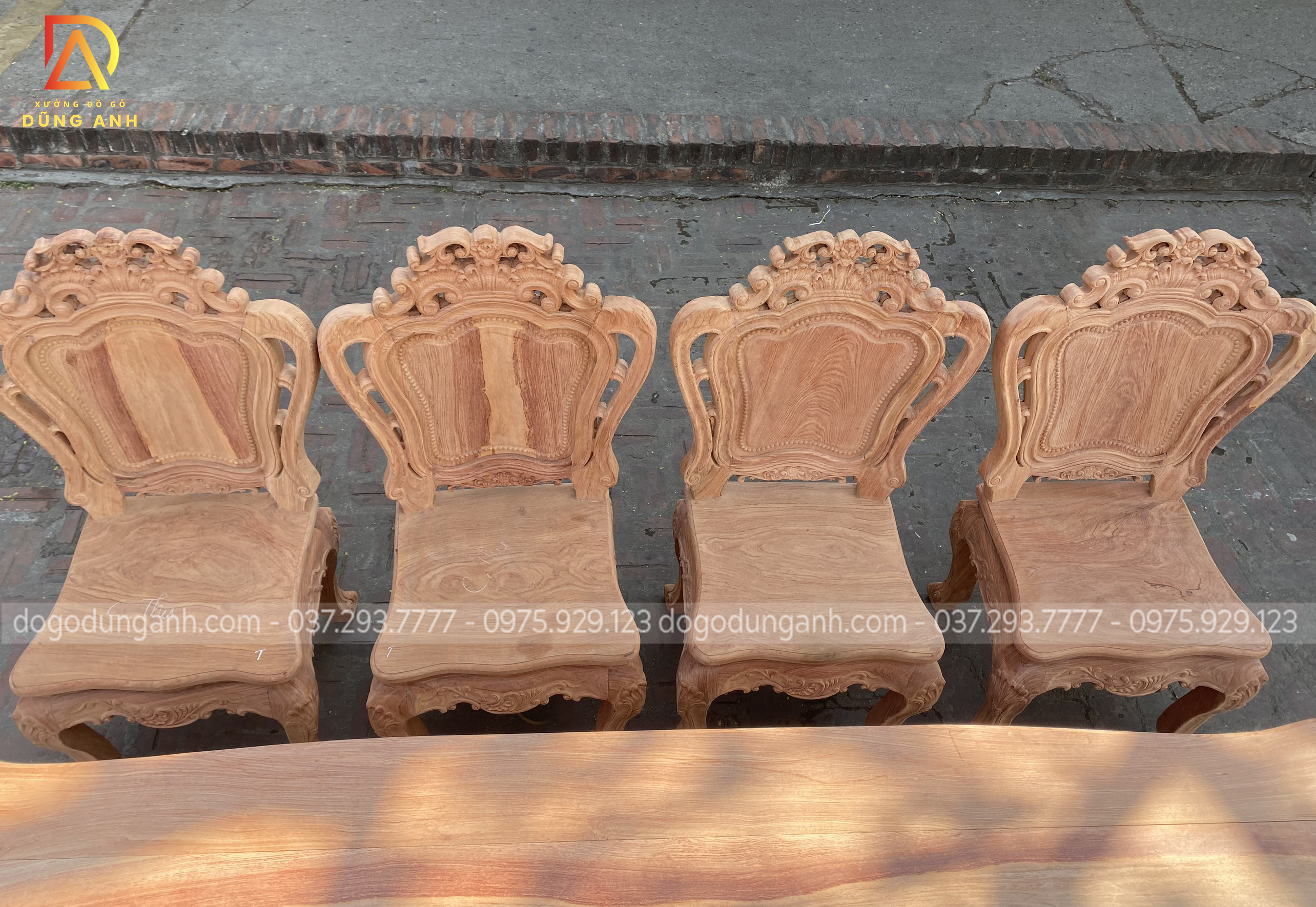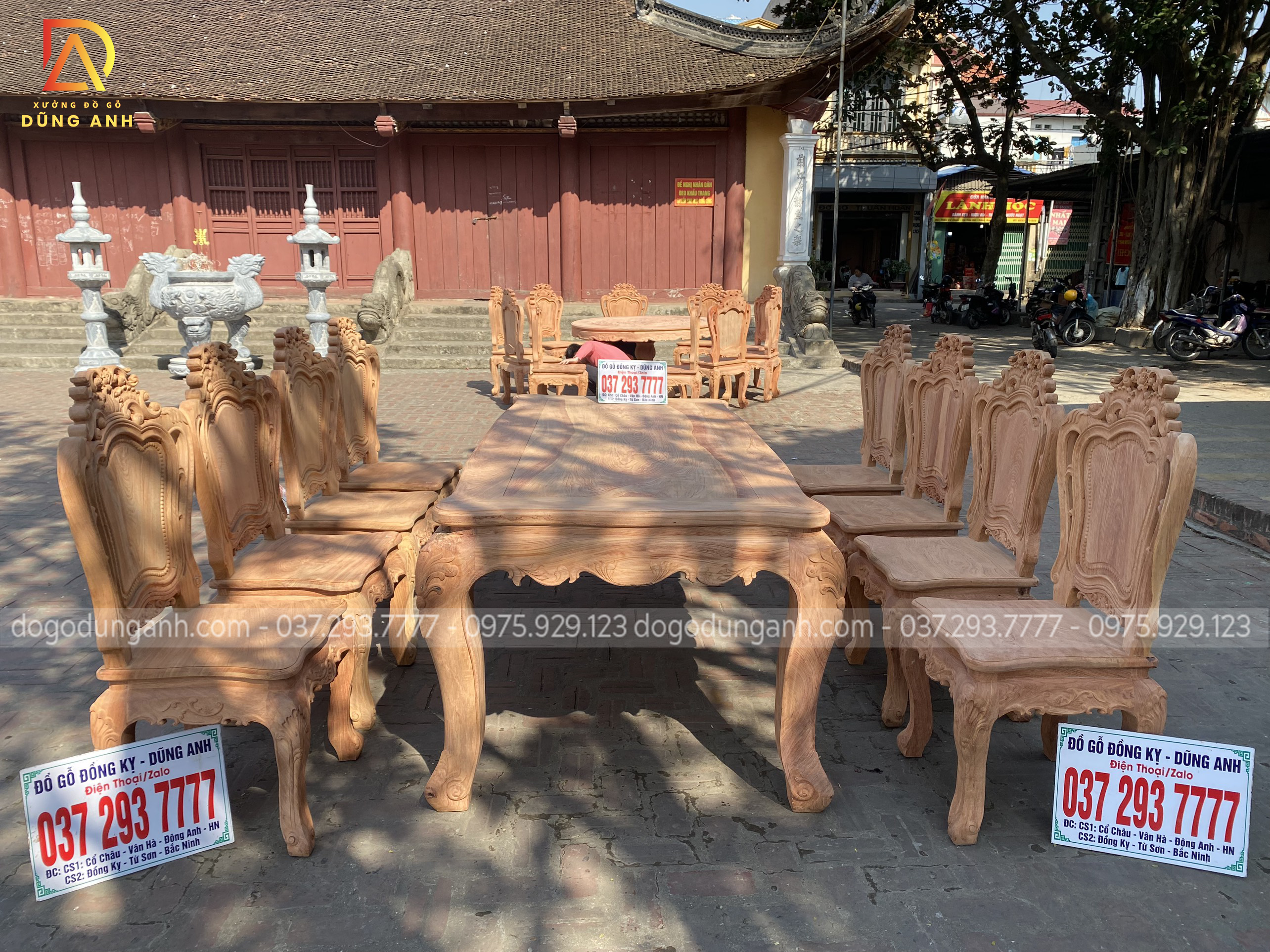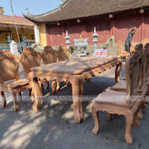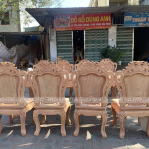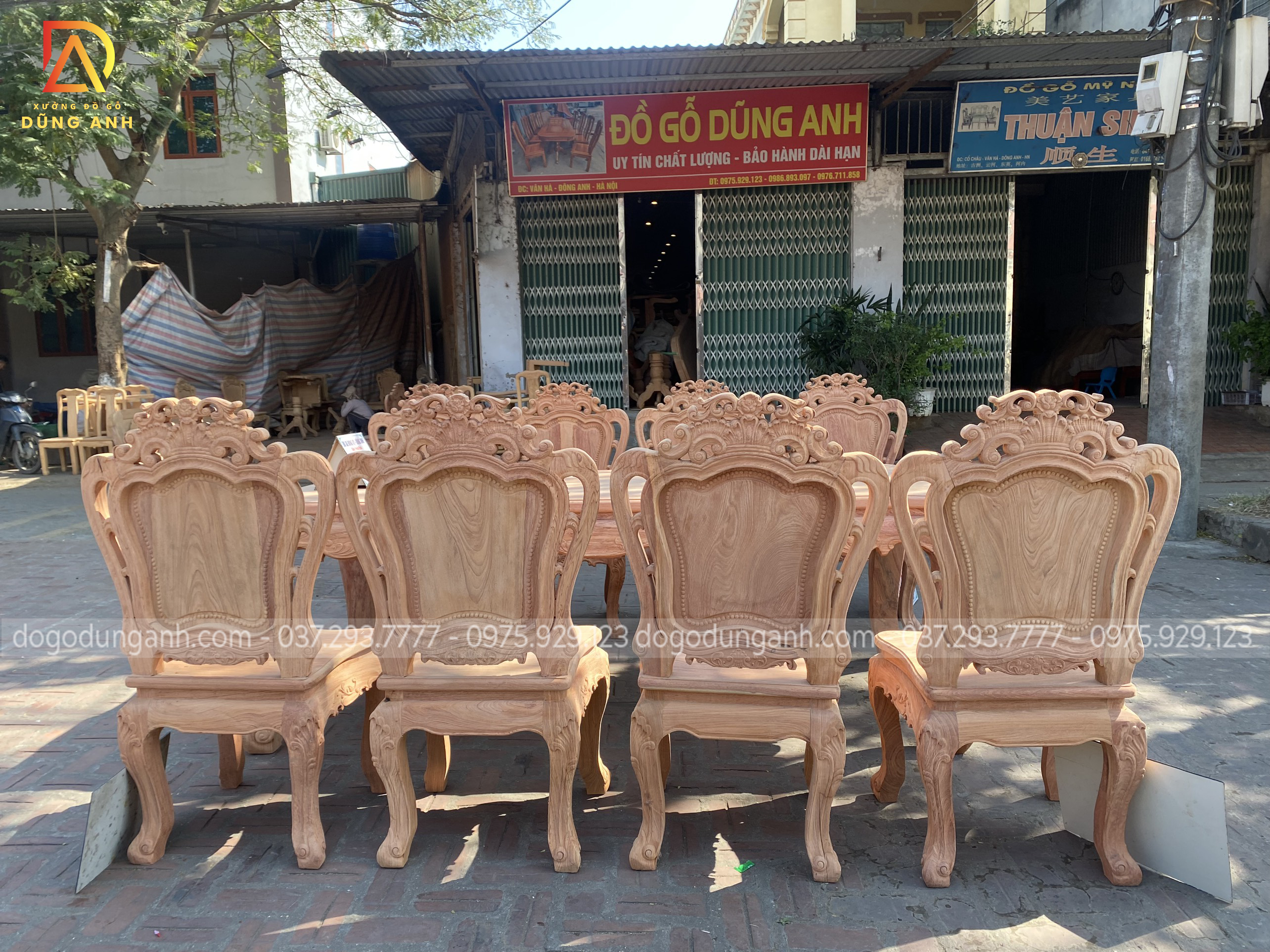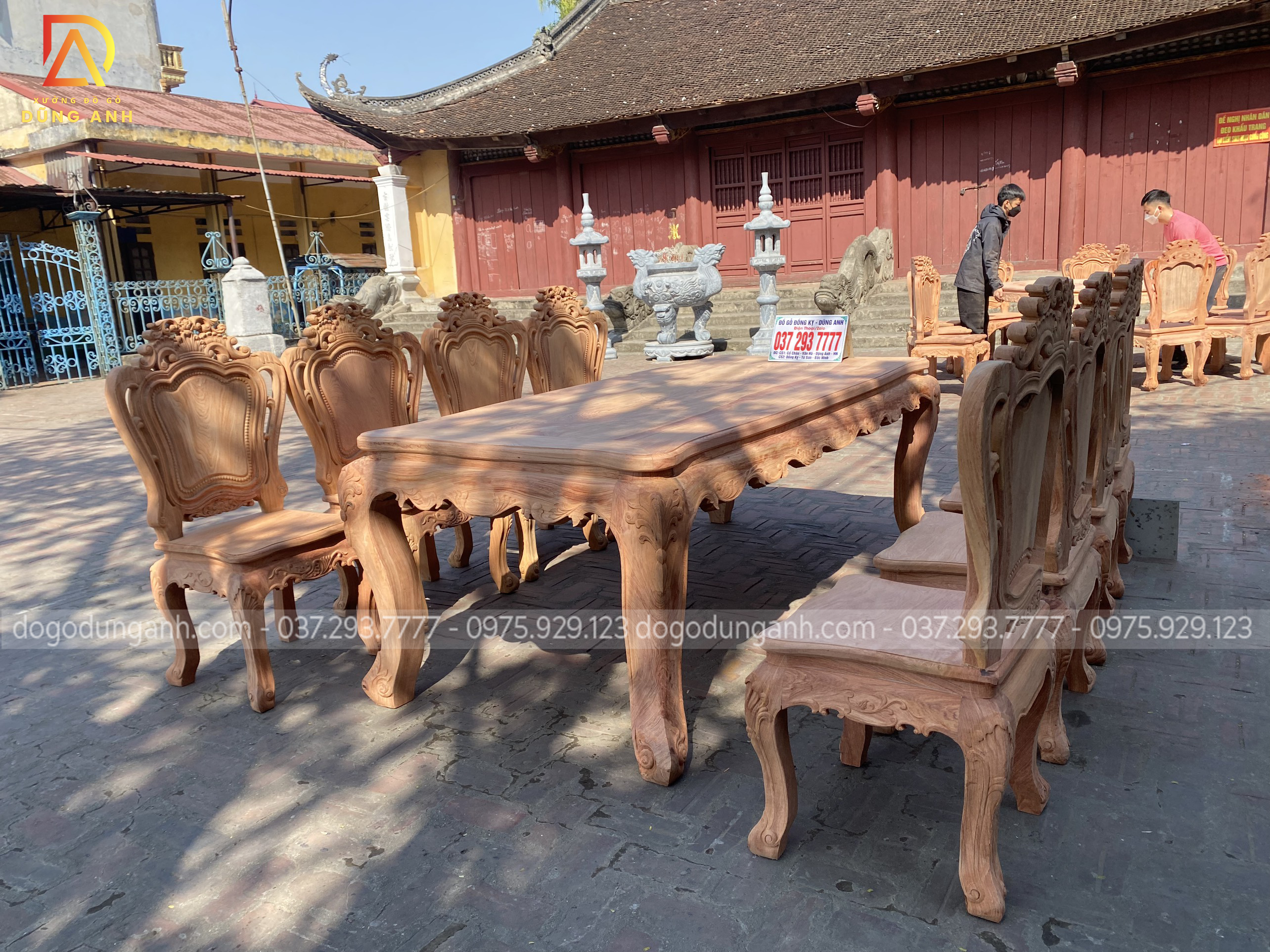 Bộ sản phẩm 8 chiếc ghế louis đục chạm 2 mặt và 1 chiếc bàn củ lạc vô cùng rộng và đẳng cấp.