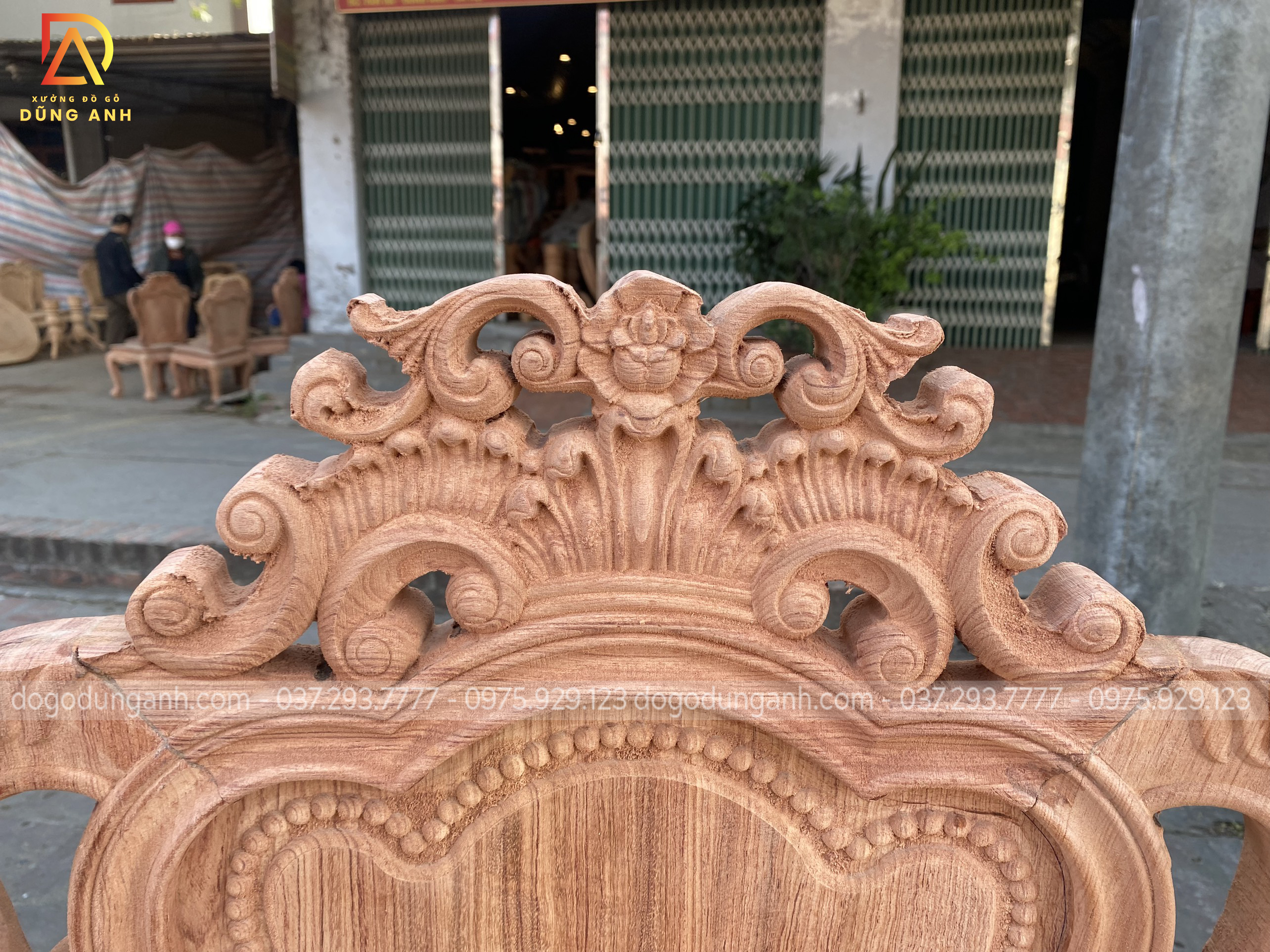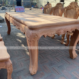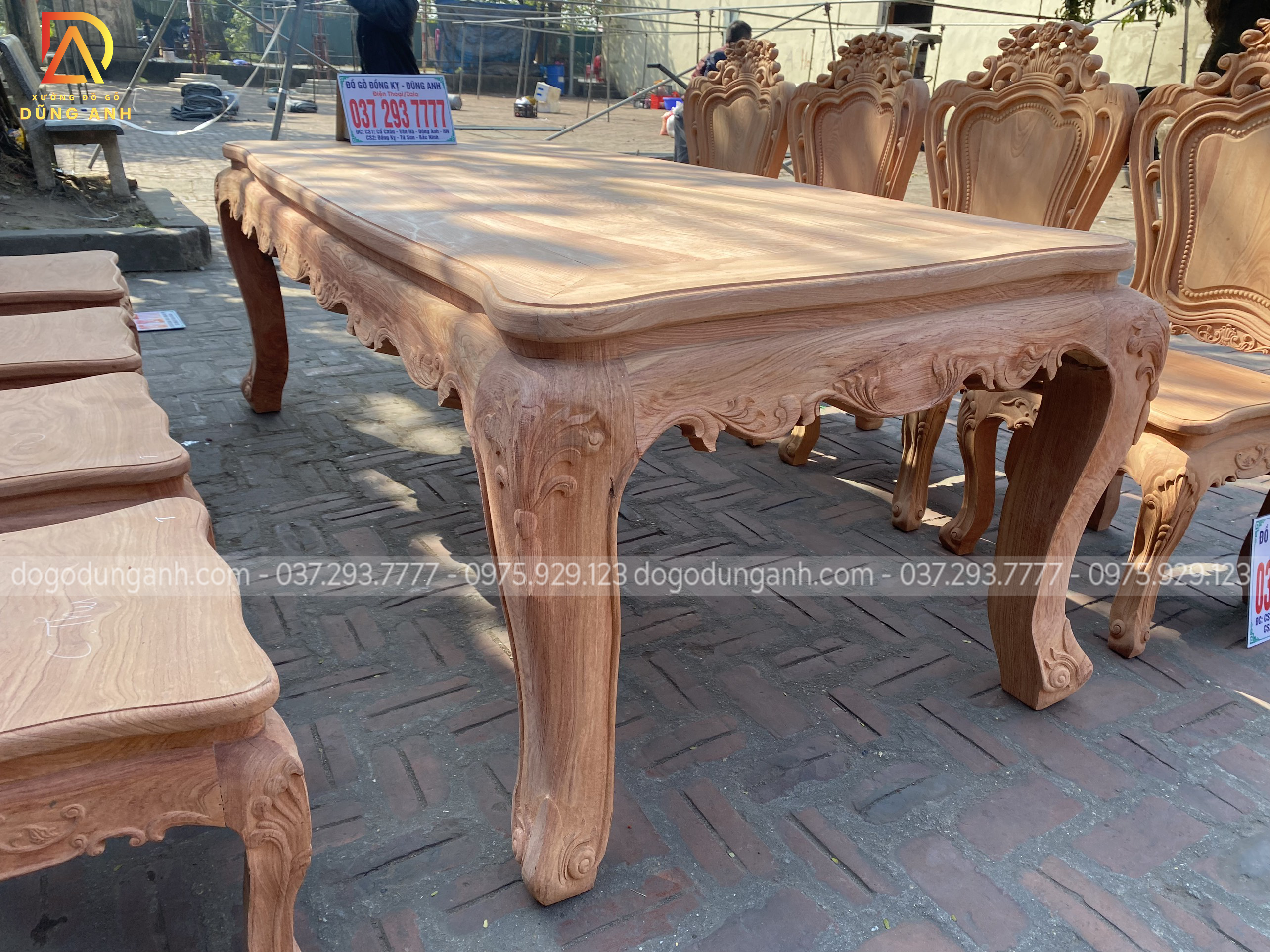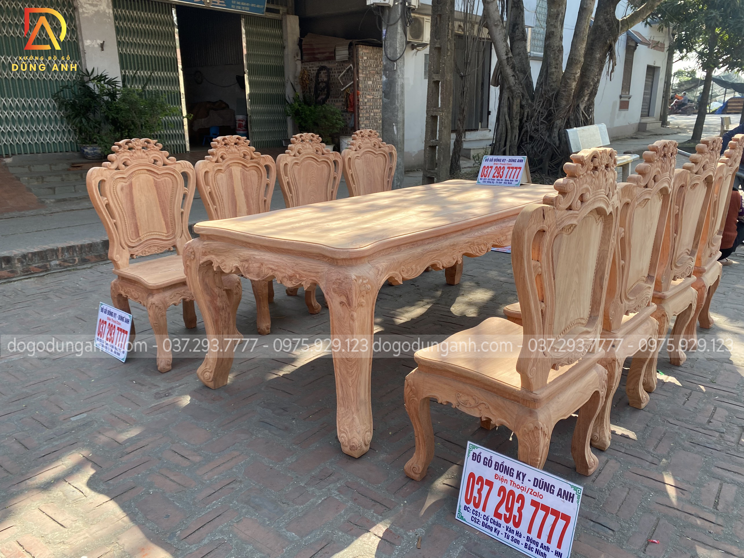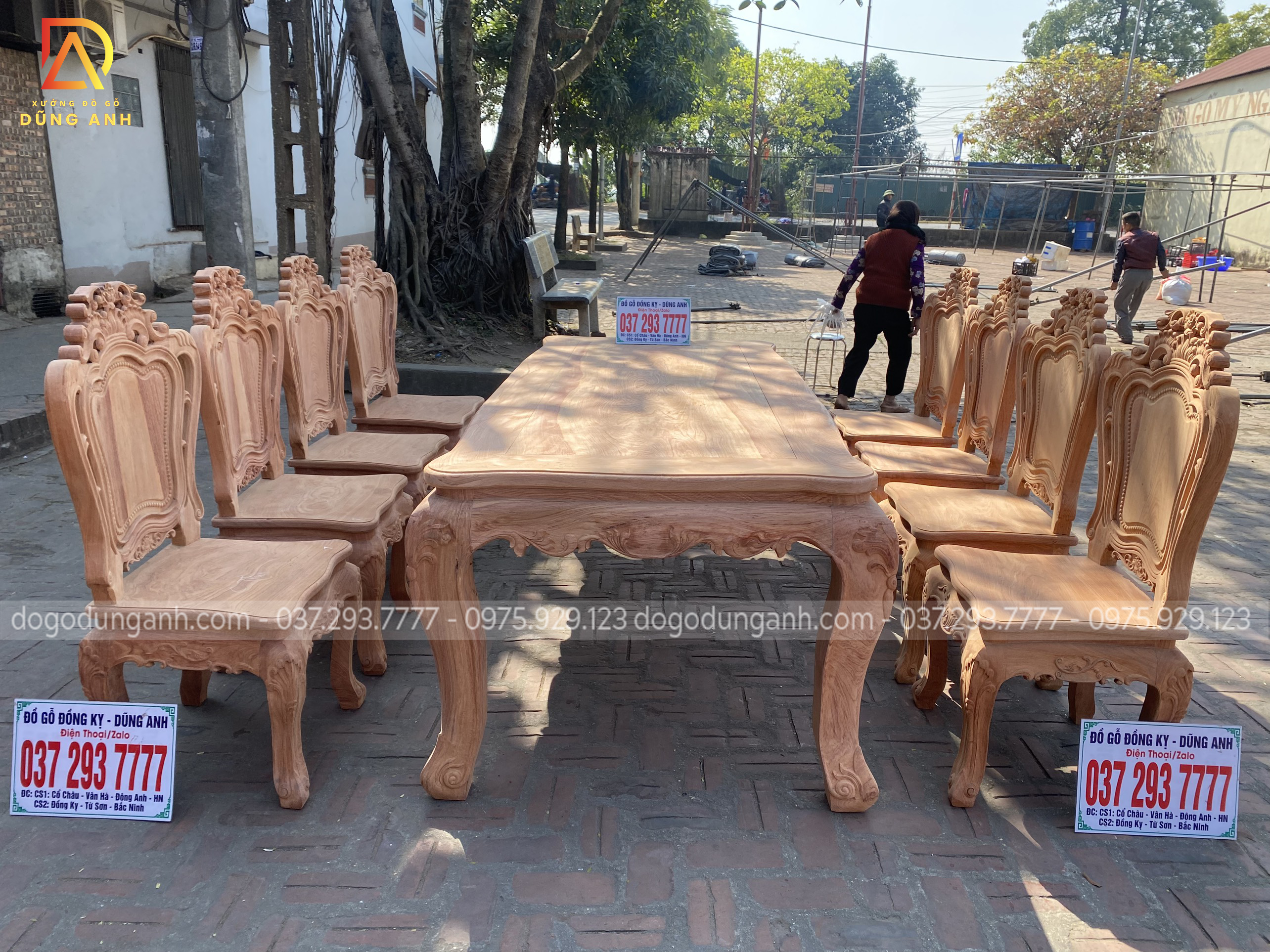 Bộ sản phẩm 8 chiếc ghế louis đục chạm 2 mặt và 1 chiếc bàn củ lạc vô cùng rộng và đẳng cấp.