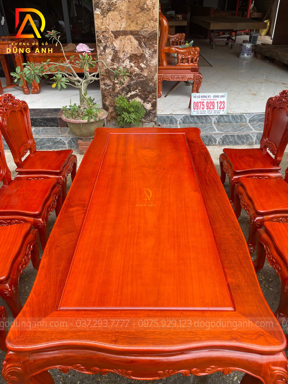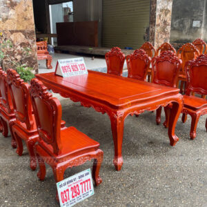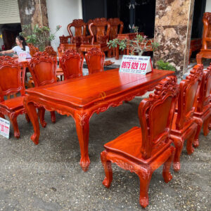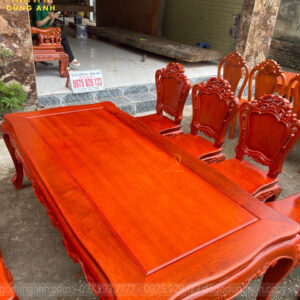 Dogodunganh [Hàng Đặt] Bộ Sản Phẩm 8 Ghế Hoàng Gia + Bàn Củ Lạc 2m17 – Gỗ Gõ Đỏ Nam Phi