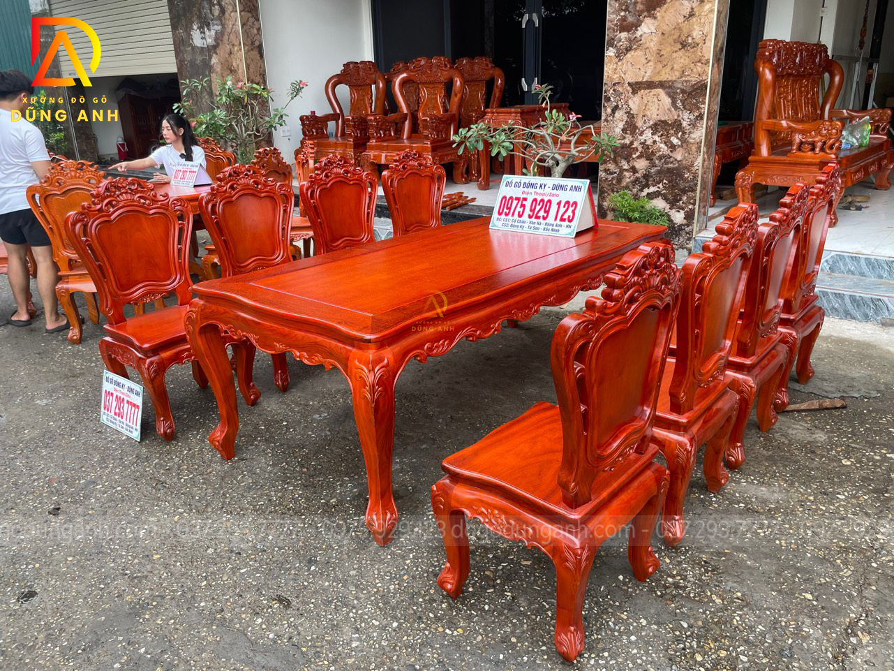 Quý khách có thể tham khảo thêm các mẫu bàn ghế ăn đẹp, bàn ghế ăn nguyên khối, các mẫu ghế ăn đẹp thì có thể liên hệ ngay với Xưởng đồ gỗ Dũng Anh qua: