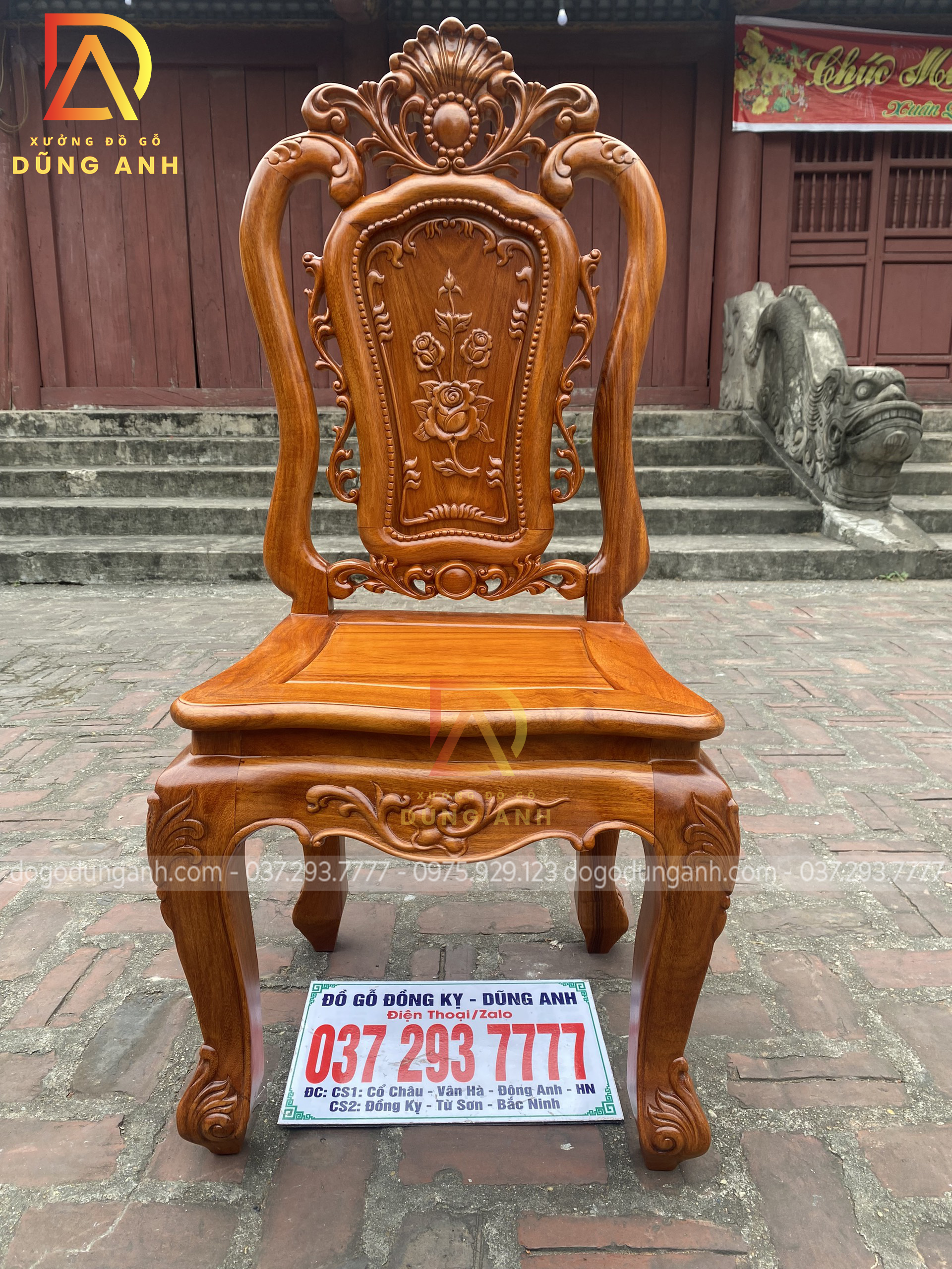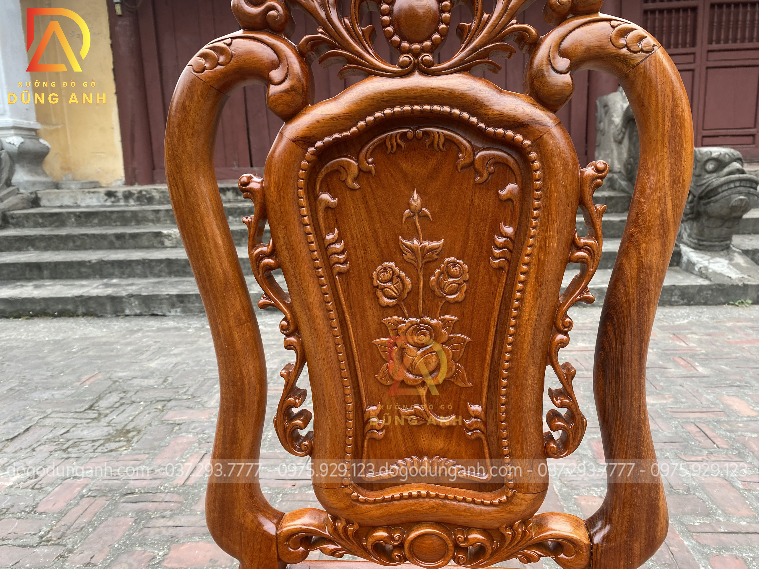 Bộ sản phẩm 8 ghế Louis hoa Hồng đục trạm 1 mặt kết hợp với bàn tròn cực kì TINH XẢO và SANG TRỌNG