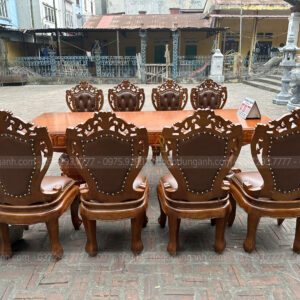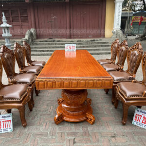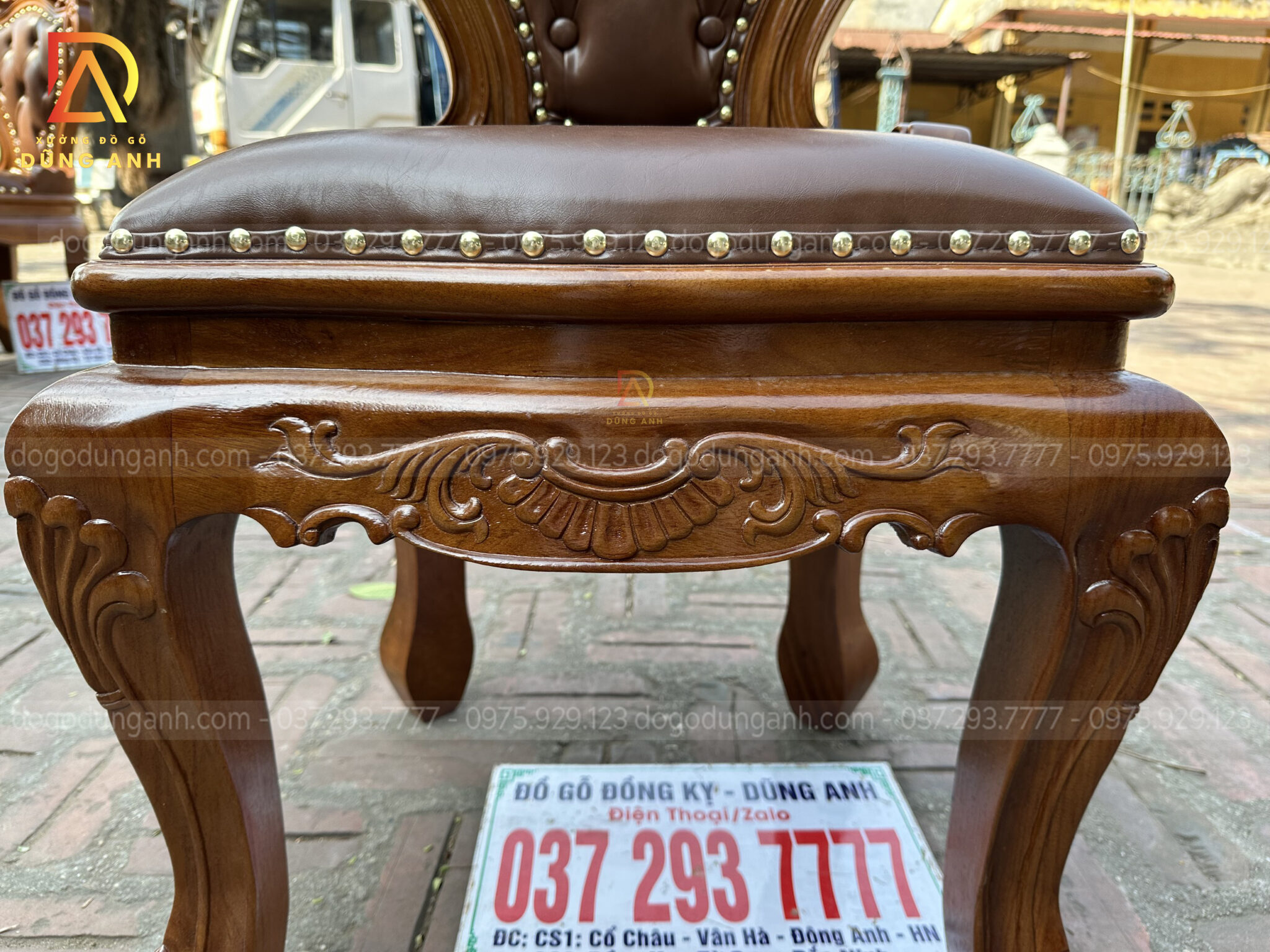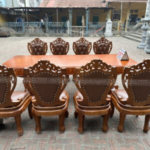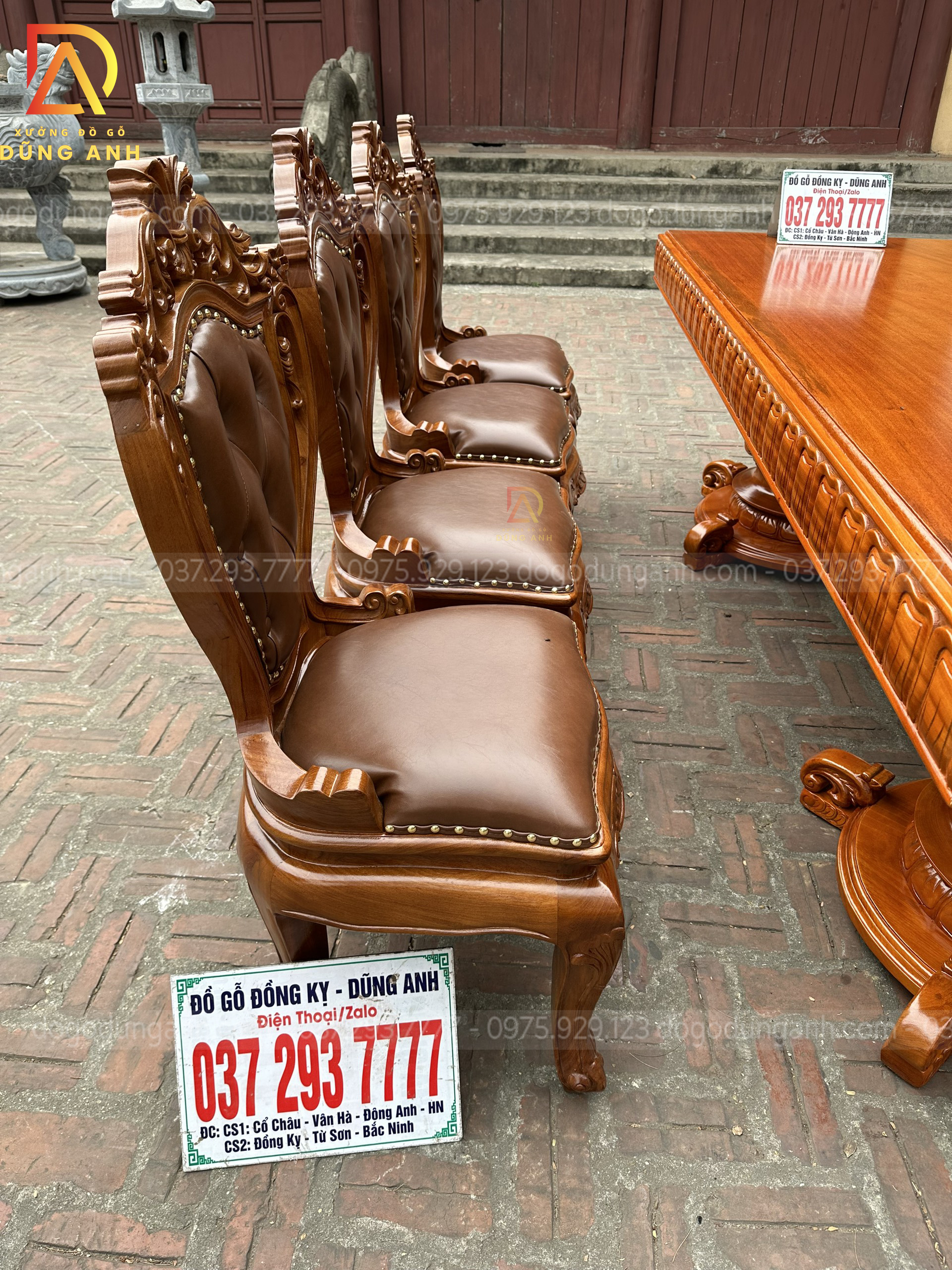 Bộ sản phẩm 8 ghế Louis Hoàng Gia bọc da kết hợp bàn nguyên khối – gỗ Gõ Đỏ