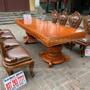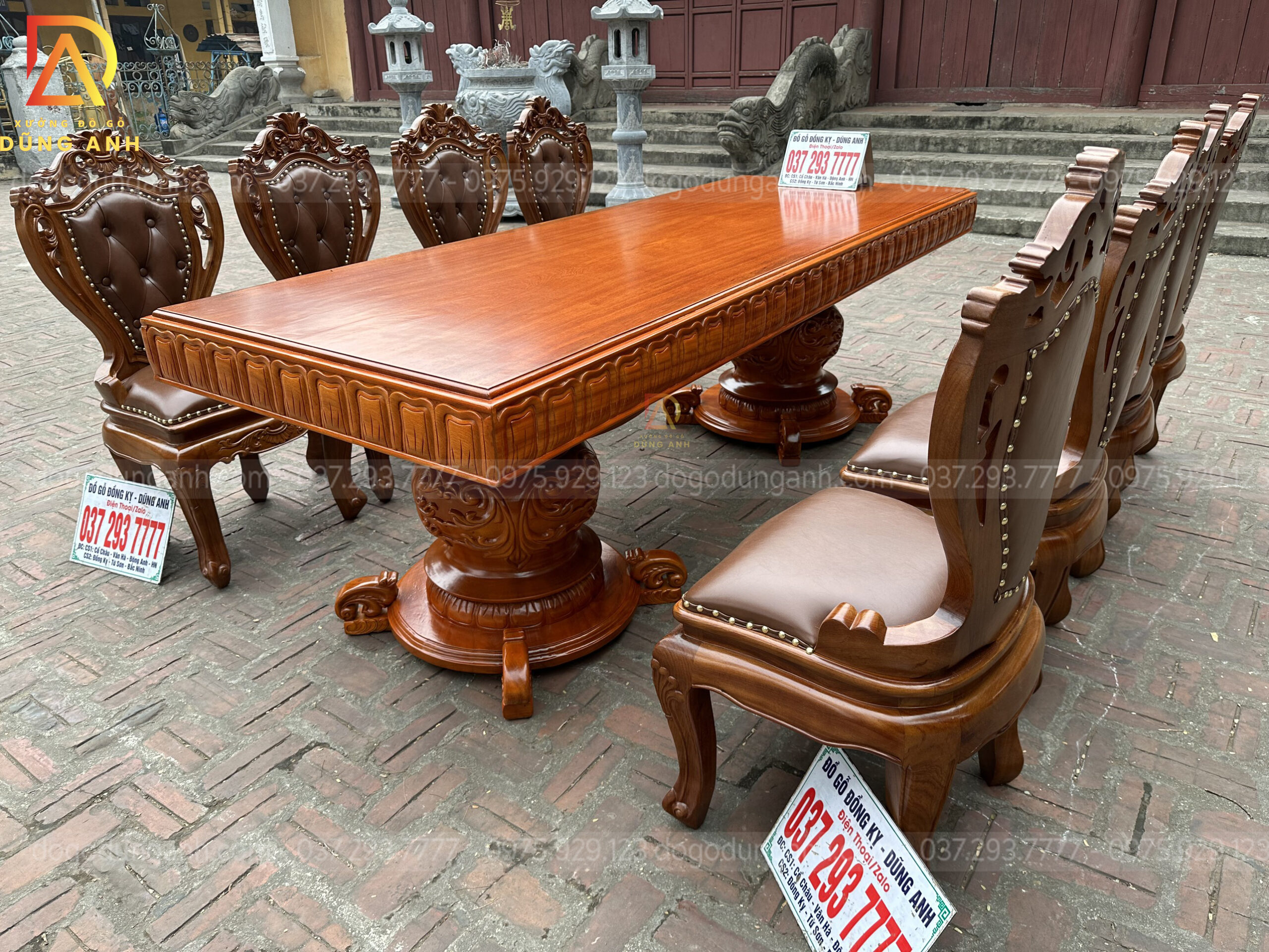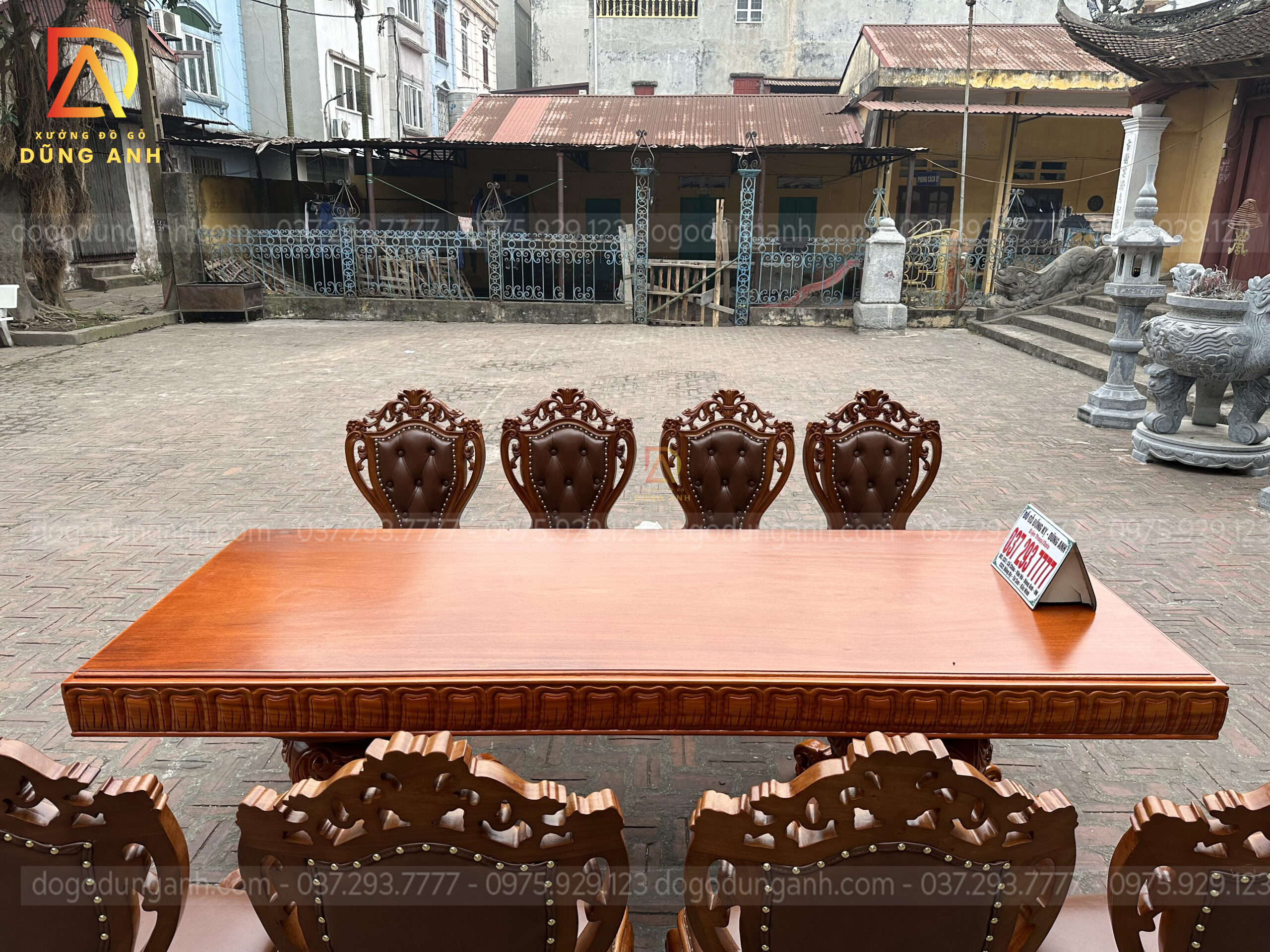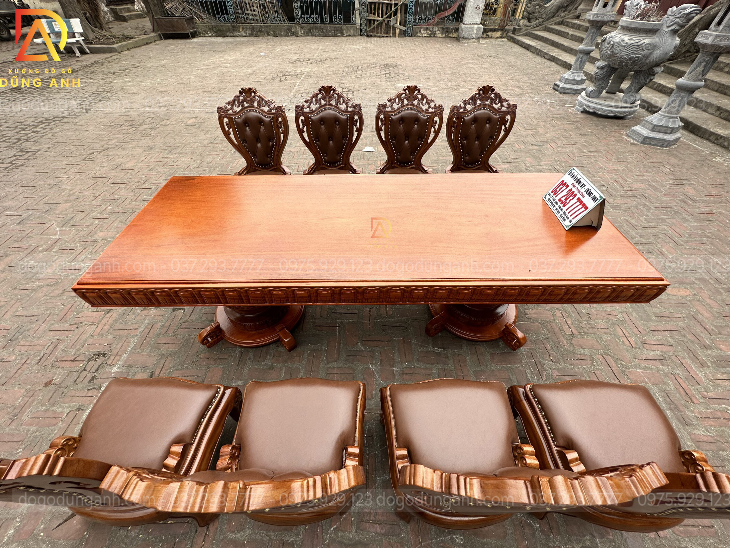 Bộ sản phẩm 8 ghế Louis Hoàng Gia bọc da kết hợp bàn nguyên khối – gỗ Gõ Đỏ