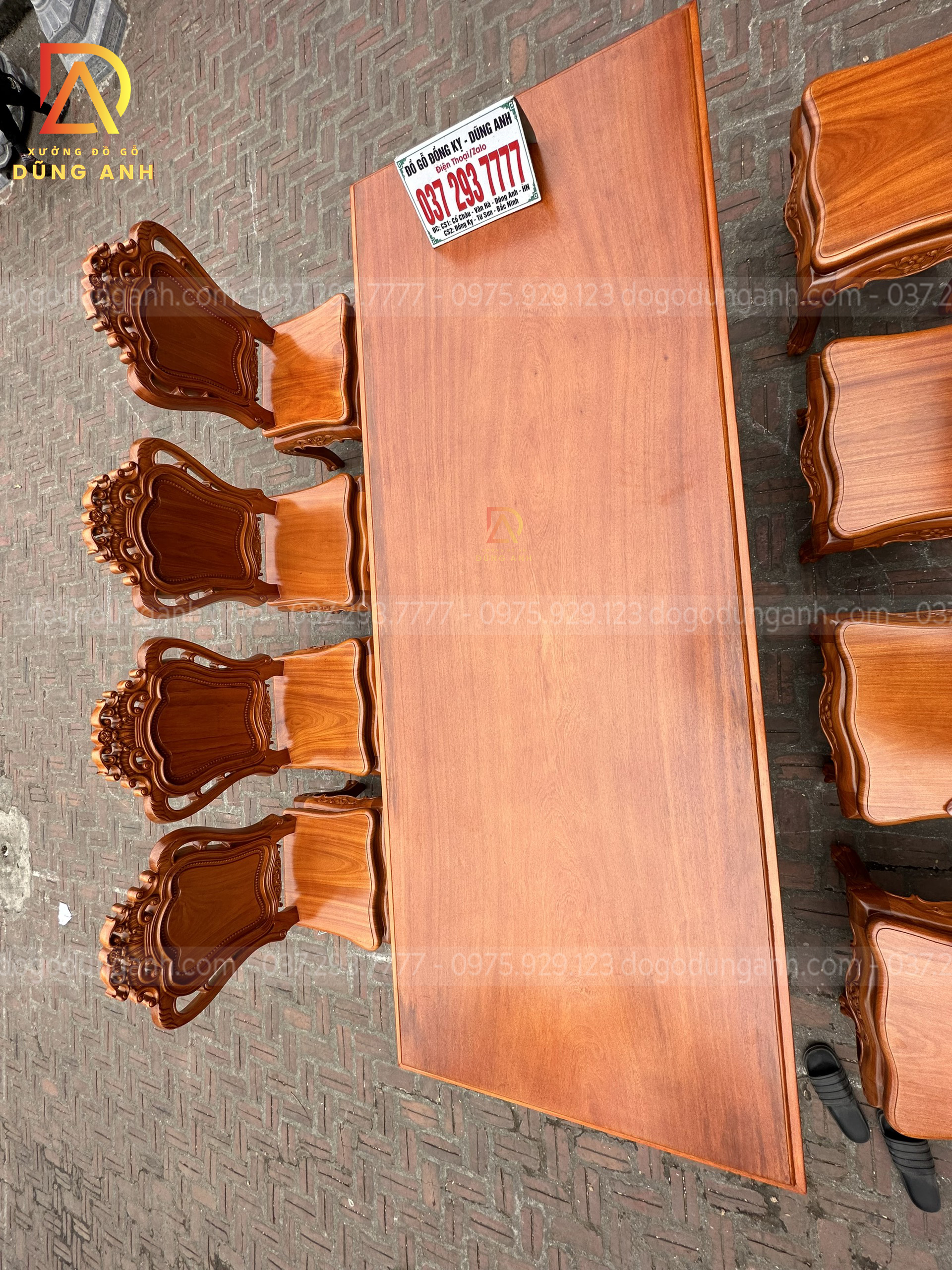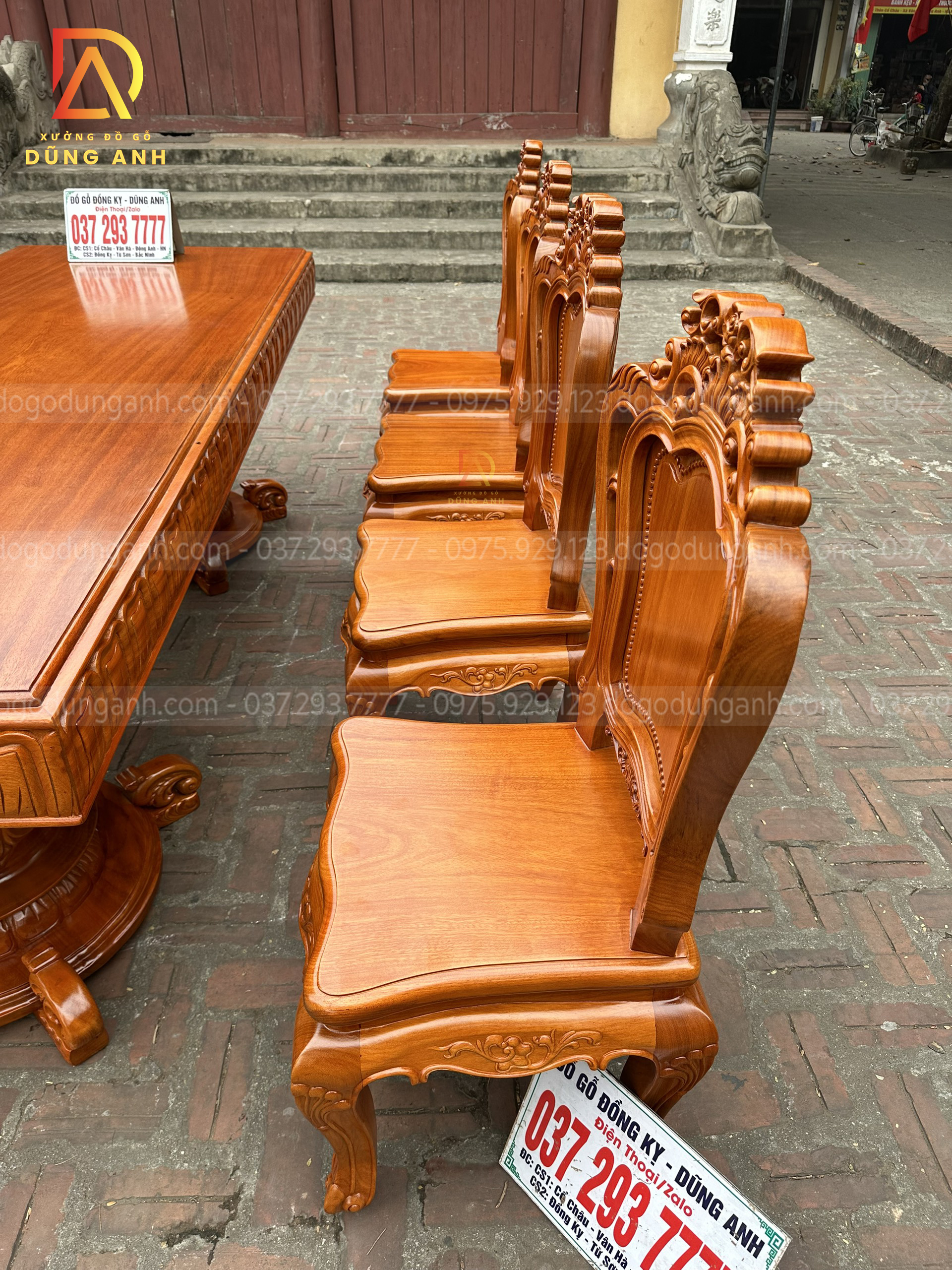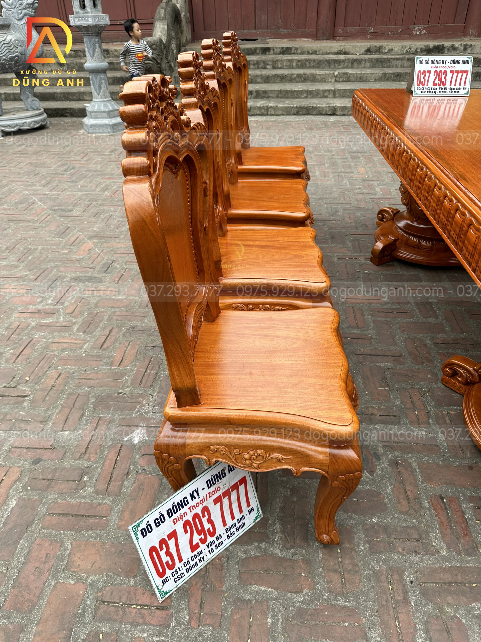 Bộ sản phẩm 8 ghế Louis Hoàng Gia kết hợp bàn nguyên khối – gỗ Gõ Đỏ
