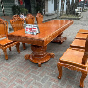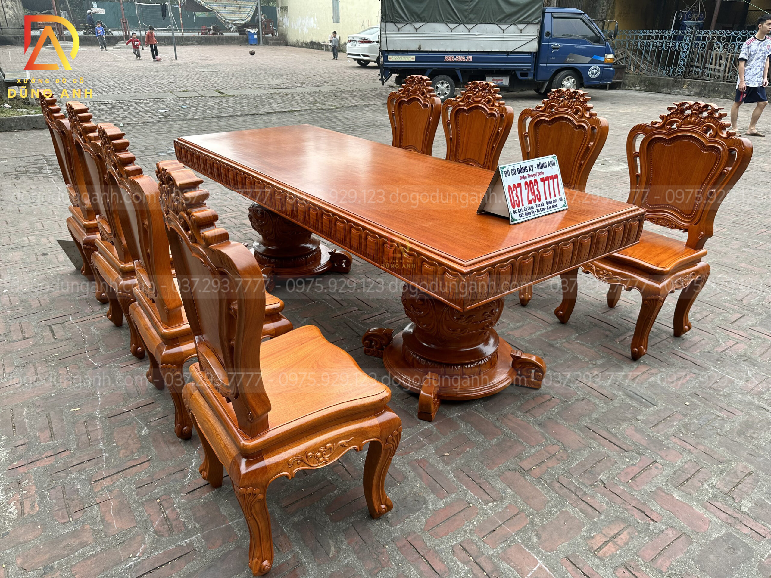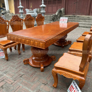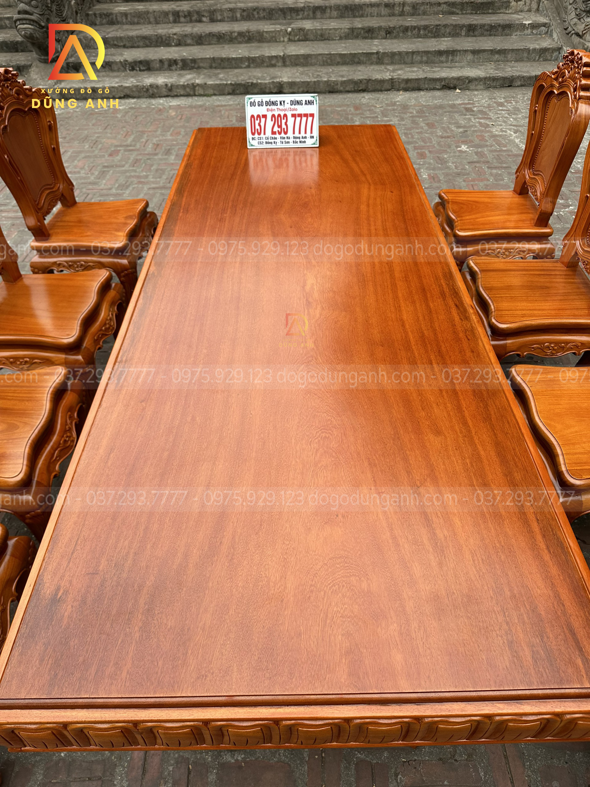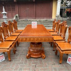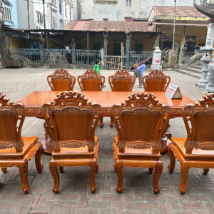 Bộ sản phẩm 8 ghế Louis Hoàng Gia kết hợp bàn nguyên khối – gỗ Gõ Đỏ