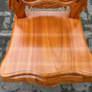 Mặt ngồi ván tràn 3p dày dặn được soi viền con lượn nhẹ nhàng, tinh tế với mặt gỗ bóng mịn nổi những sóng vân cuộn xoáy đặc trưng của dòng gỗ gõ đỏ cao cấp