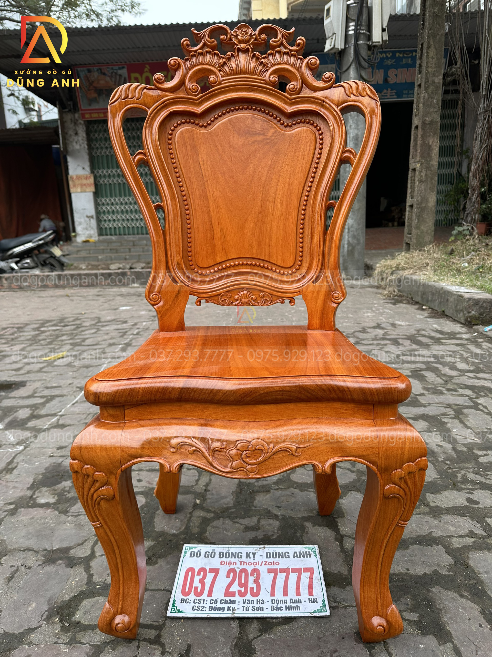 - Mẫu ghế louis hoàng gia không tay chính là sự lựa chọn hoàn hảo để kết hợp với mẫu bàn nguyên khối. Giúp mang đến một không gian dùng bữa thật lý tưởng cho gia đình. Thiết kế ghế cầu kỳ được tính toán kích thước, thông số hợp lý phù hợp với chiều cao, tư thế ngồi của người Việt, đảm bảo đem đến sự thoải mái tối đa khi sử dụng