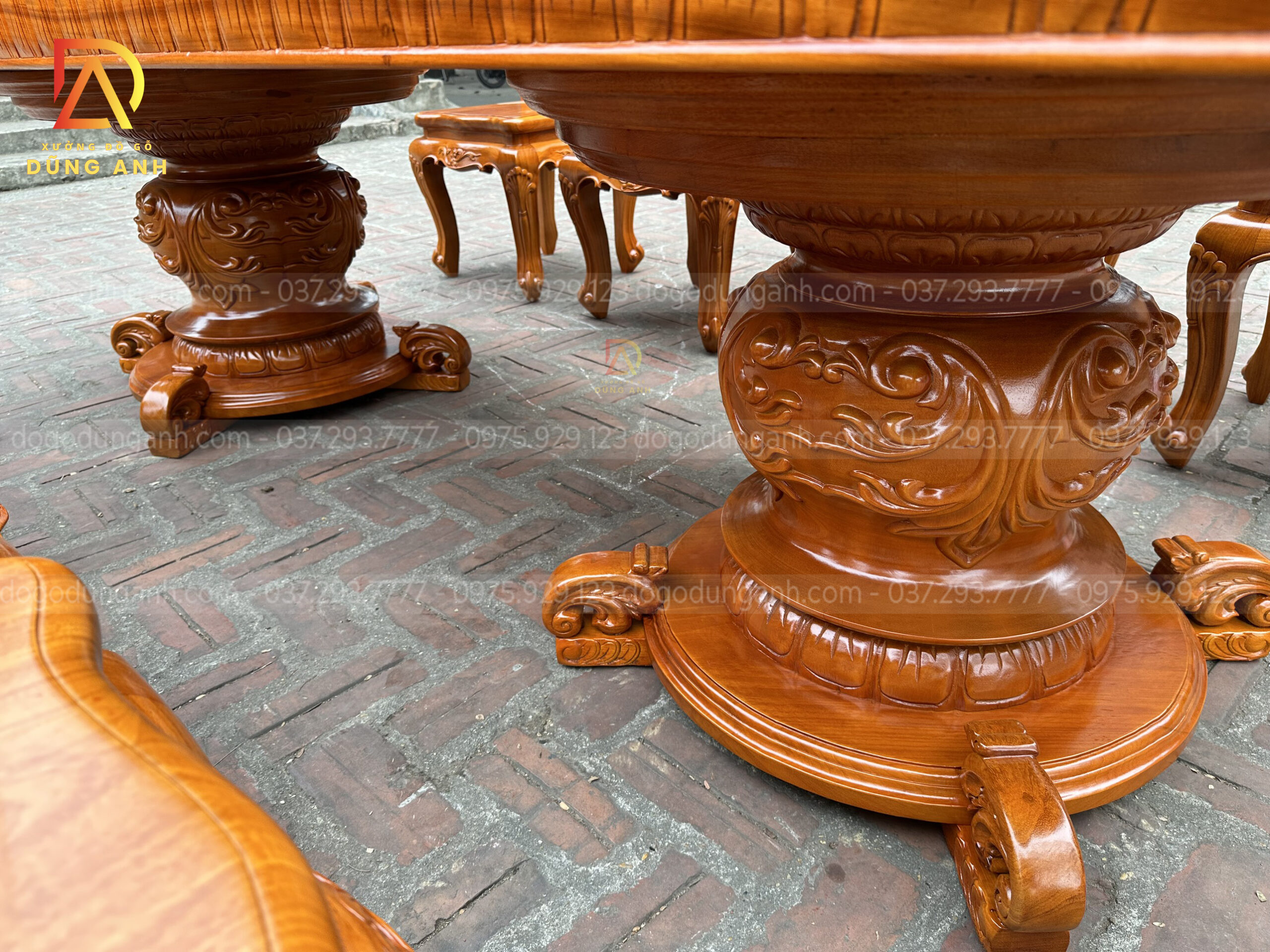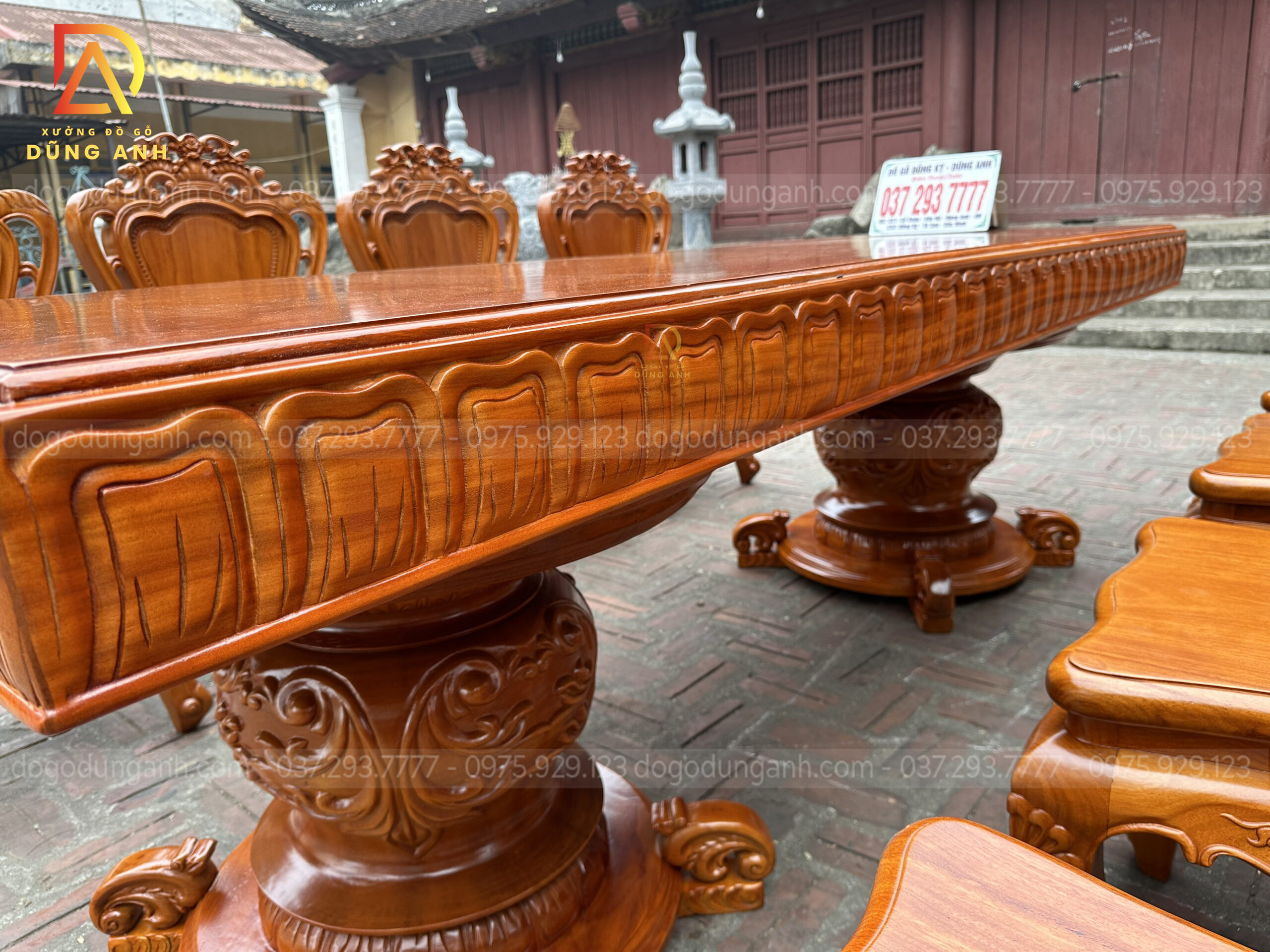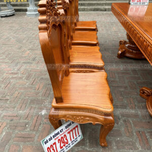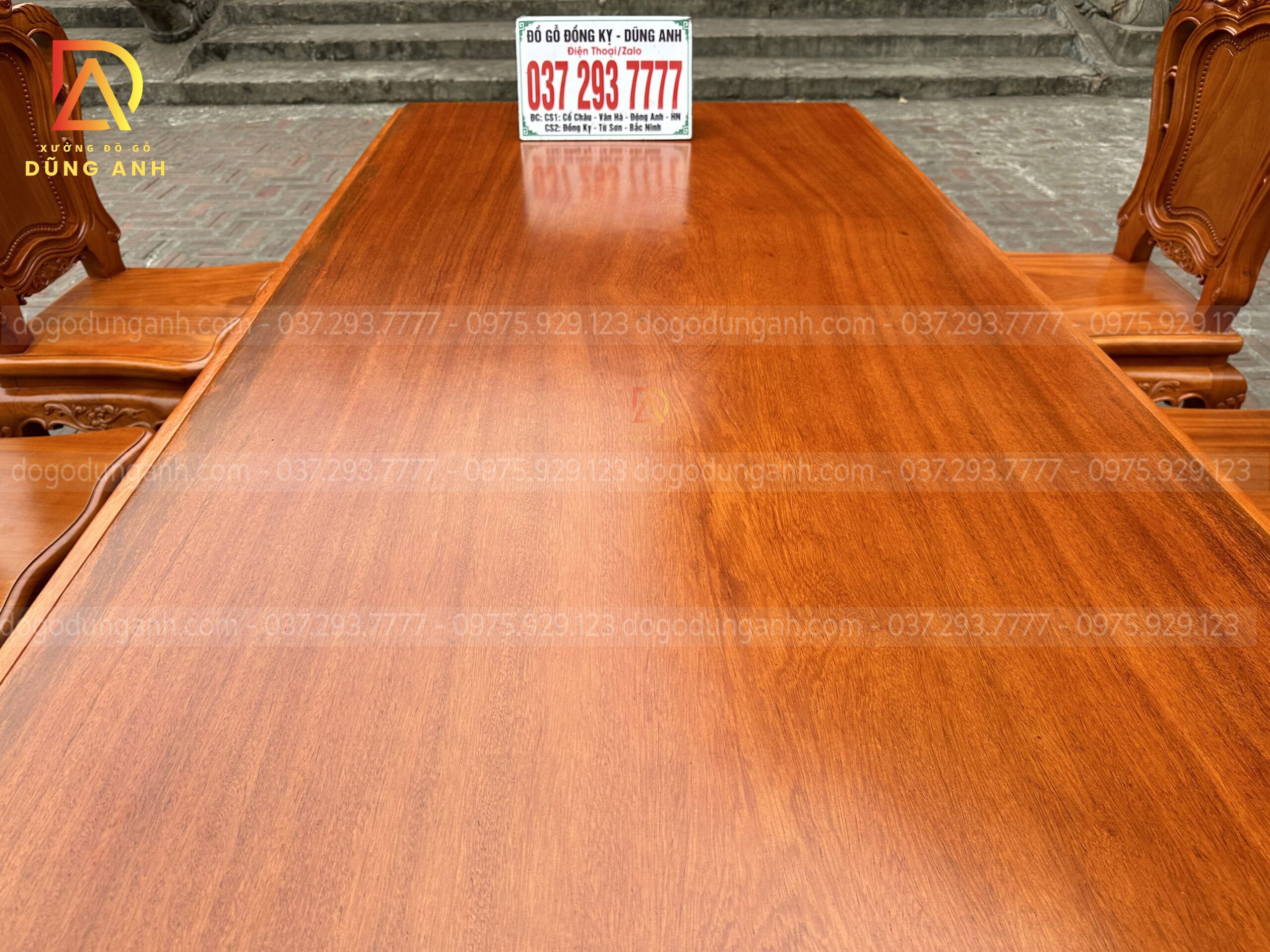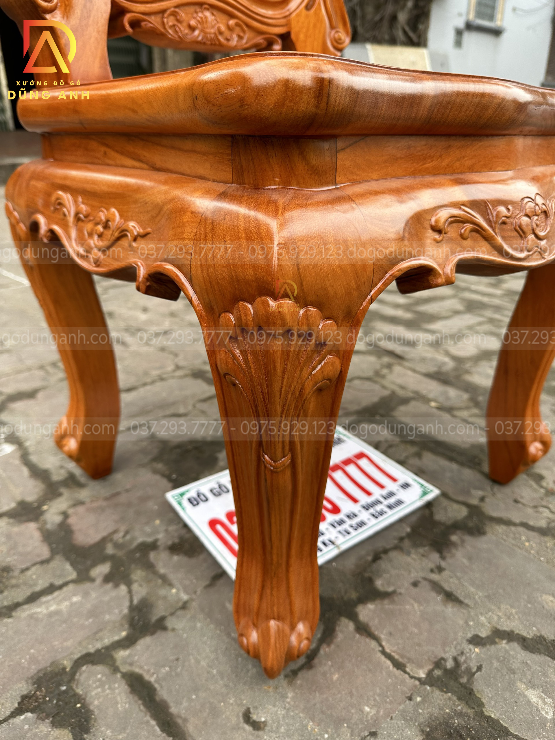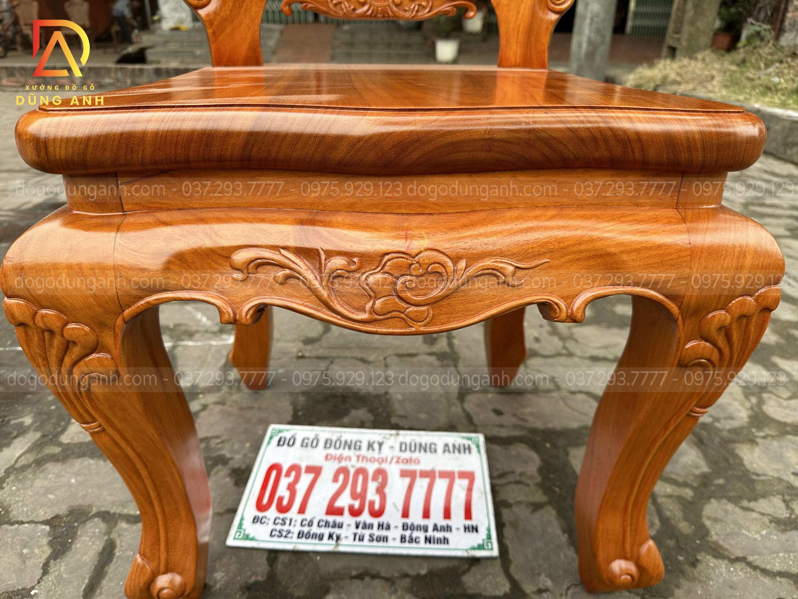 Bộ sản phẩm Xưởng đồ gỗ Dũng Anh bên em chế tác hoàn toàn từ 100% chất liệu gỗ gõ đỏ dòng gỗ cao cấp chất lượng với giá thành khá đắt đỏ. Được xưởng chọn lọc kỹ càng nên đảm bảo độ đanh chắc hoàn hảo để tạo nên các họa tiết đục tinh xảo, nổi bật theo phong cách louis hoàng gia tân cổ điển vô cùng sang trọng và bắt mắt.
