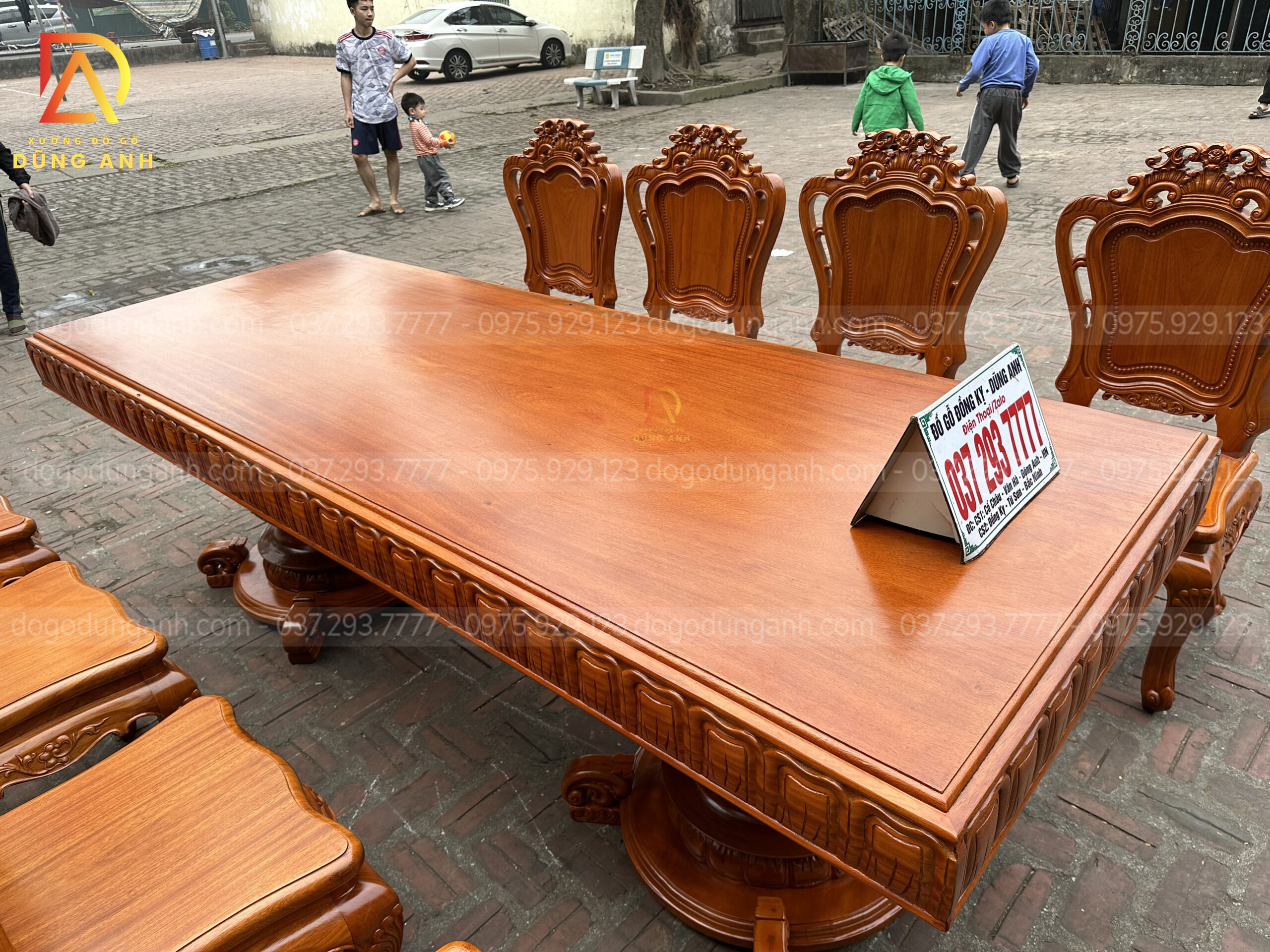 Xưởng đồ gỗ Dũng Anh xin trân trọng giới thiệu đến quý khách hàng một bộ bàn ăn gỗ gõ đỏ mẫu louis hoàng gia tân cổ điển vô cùng sang trọng và đẳng cấp. Bộ sản phẩm vừa được xưởng hoàn thiện xong. Mời các bác cùng chiêm ngưỡng cận cảnh hình ảnh sản phẩm thực tế để có thể kiểm chứng và đánh giá được chính xác chất lượng sản phẩm.