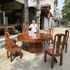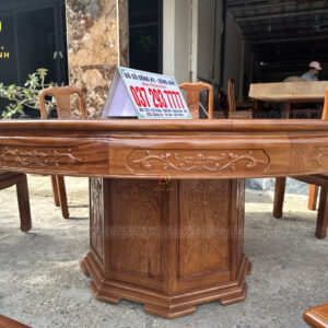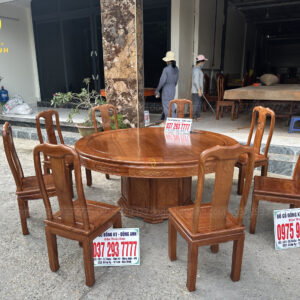 Bộ sản phẩm 8 ghế Triện Thọ + Bàn tròn yếm vén siêu khủng – gỗ Gõ Đỏ