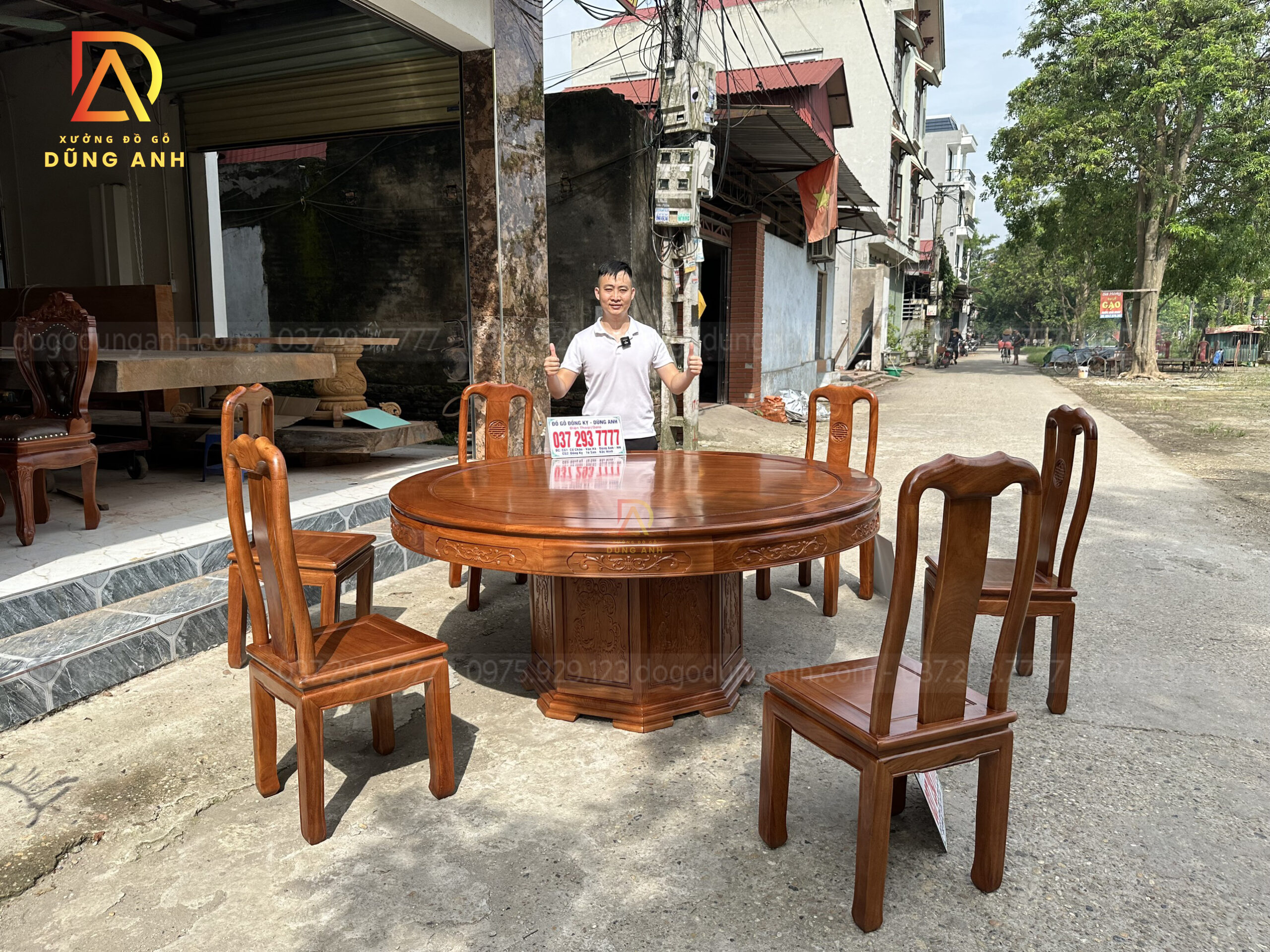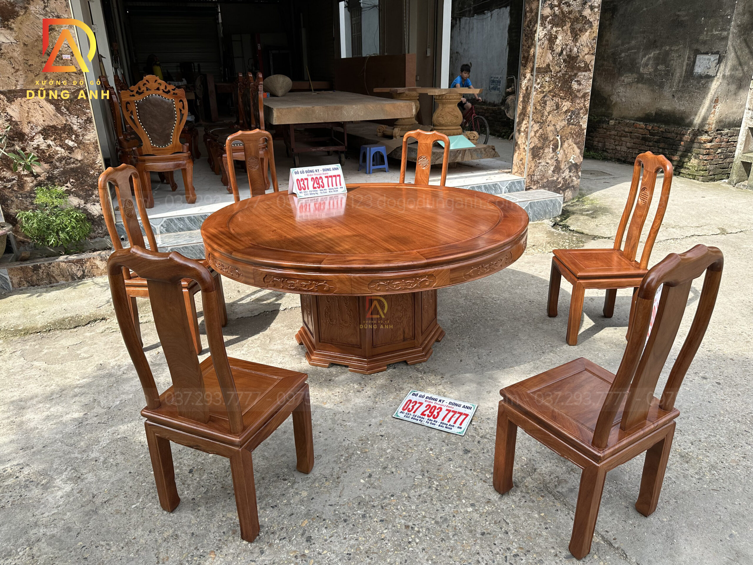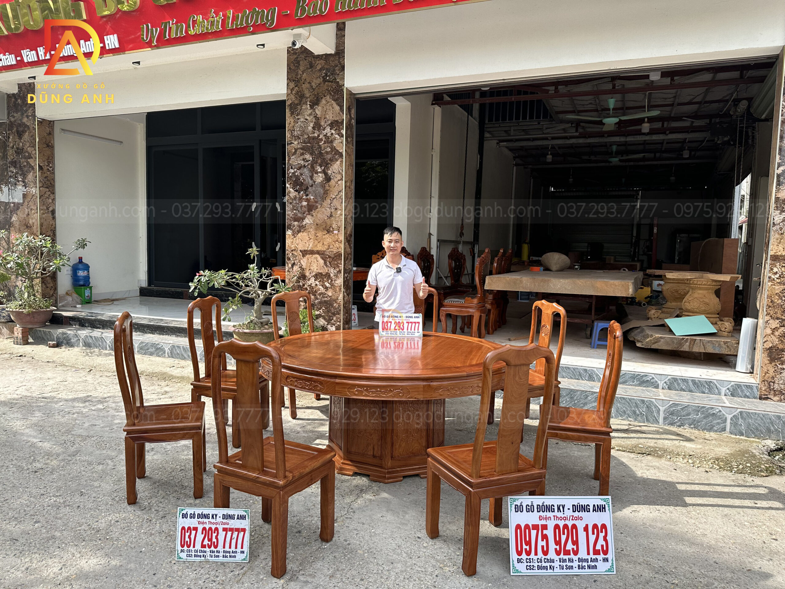 Quý khách có thể tham khảo thêm các mẫu bàn ghế ăn đẹp, bàn ghế ăn nguyên khối, các mẫu ghế ăn đẹp thì có thể liên hệ ngay với Xưởng đồ gỗ Dũng Anh qua: