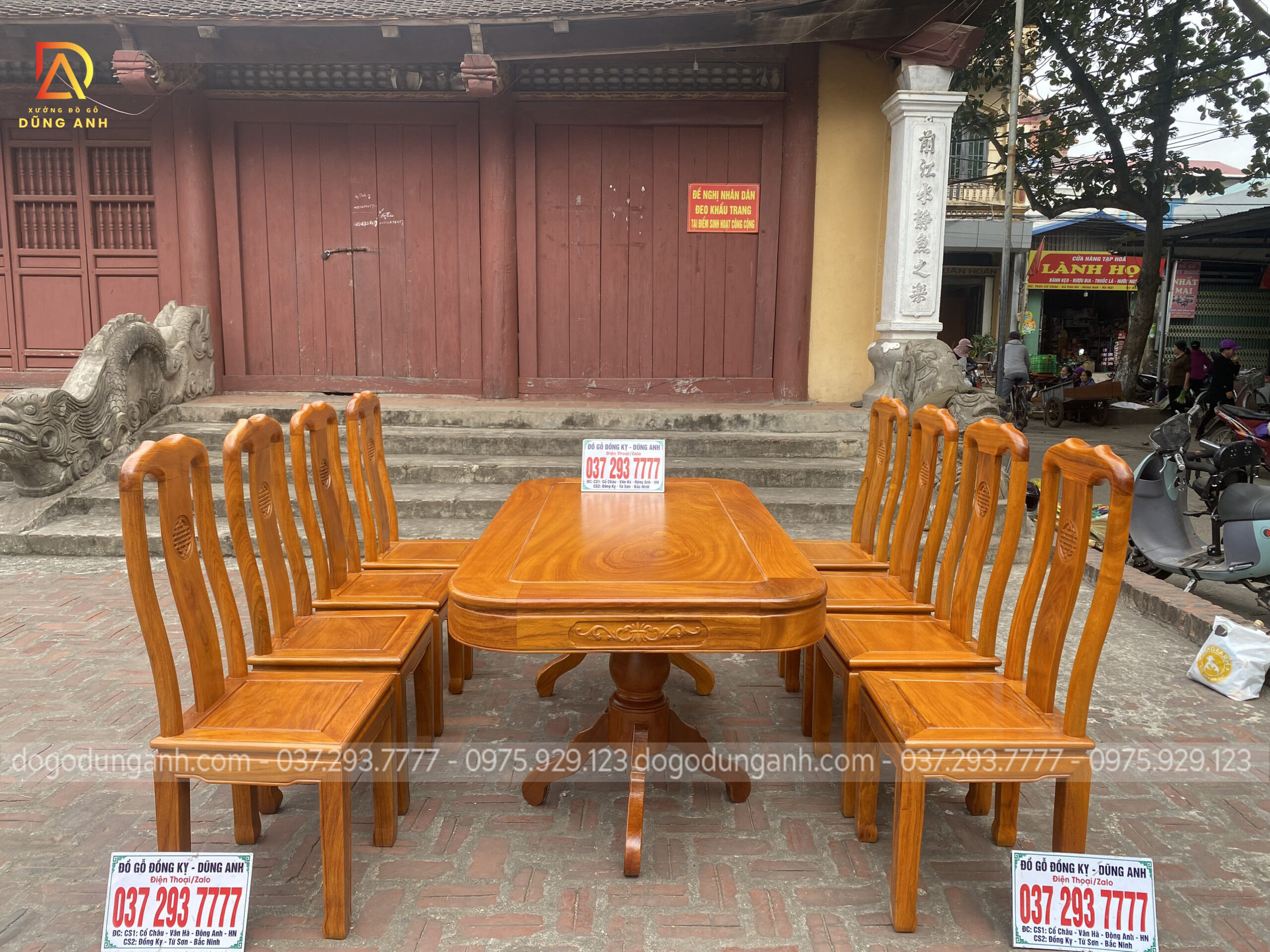 Bộ sản phẩm 8 ghế triện thọ và 1 bàn cua góc rất quen thuộc với mọi gia đình