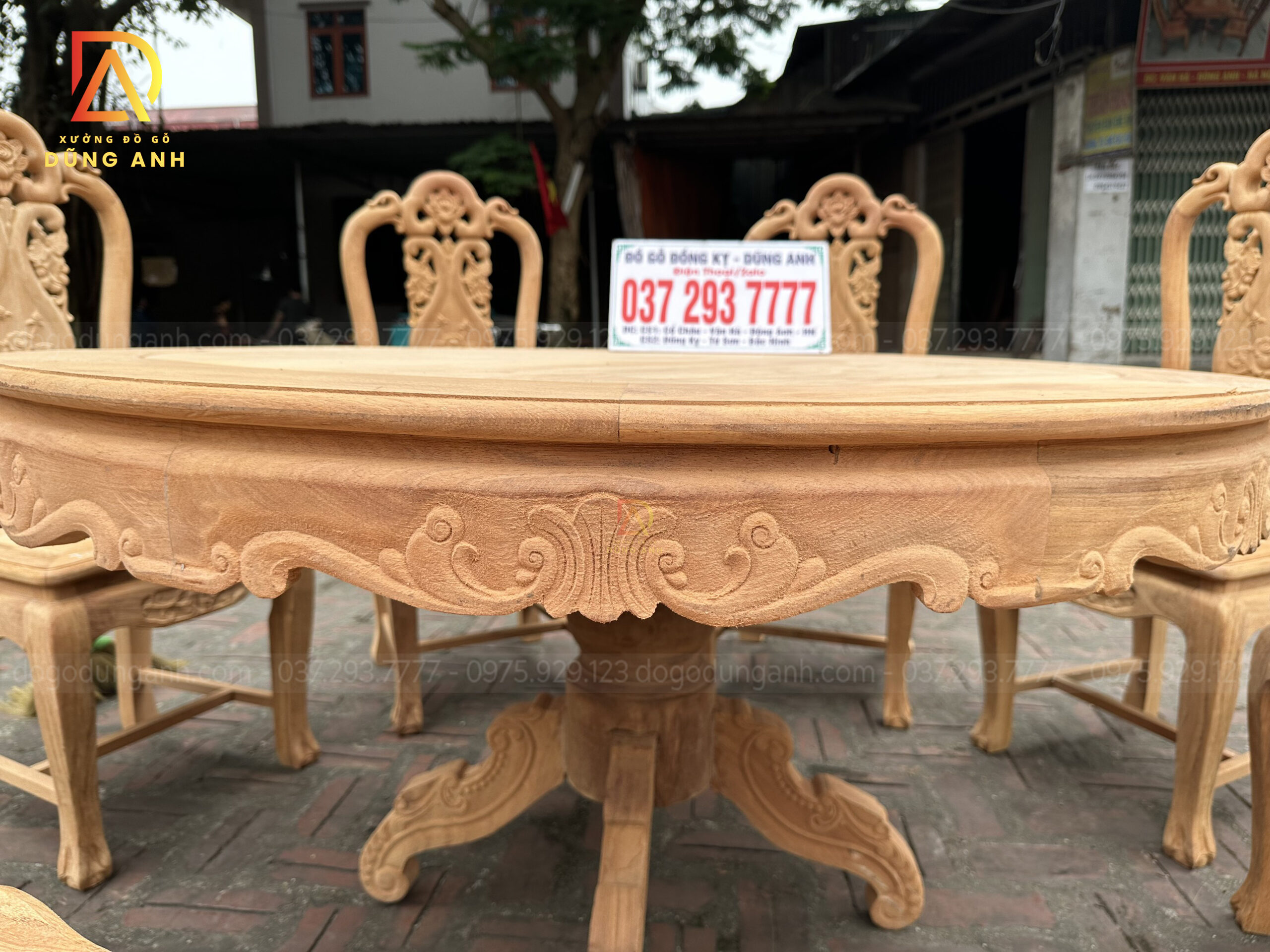 Bộ sản phẩm Xưởng đồ gỗ Dũng Anh bên em chế tác hoàn toàn từ 100% chất liệu gỗ Gõ Đỏ dòng gỗ cao cấp chất lượng với giá thành khá đắt đỏ. Được xưởng chọn lọc kỹ càng nên đảm bảo độ đanh chắc hoàn hảo để tạo nên các họa tiết đục tinh xảo, nổi bật theo phong cách louis hoàng gia tân cổ điển vô cùng sang trọng và bắt mắt.