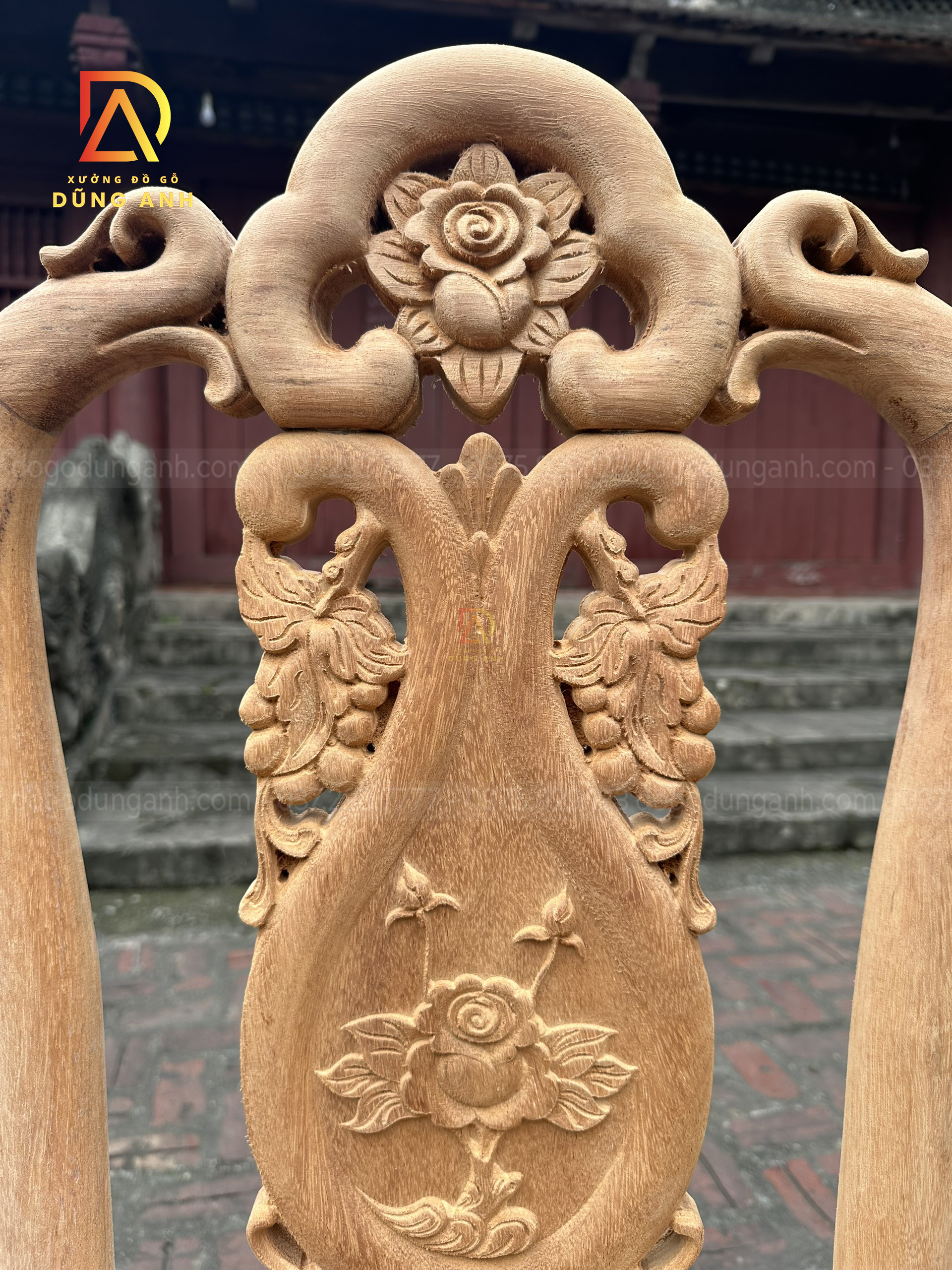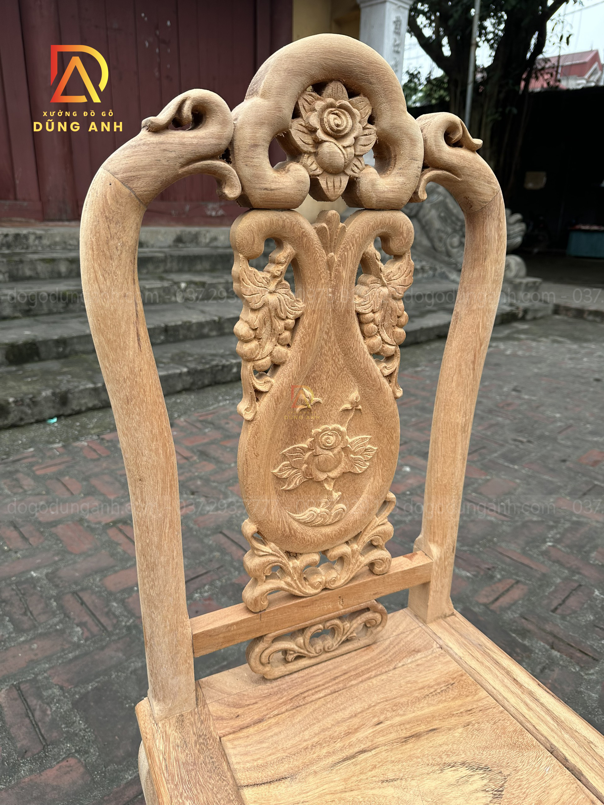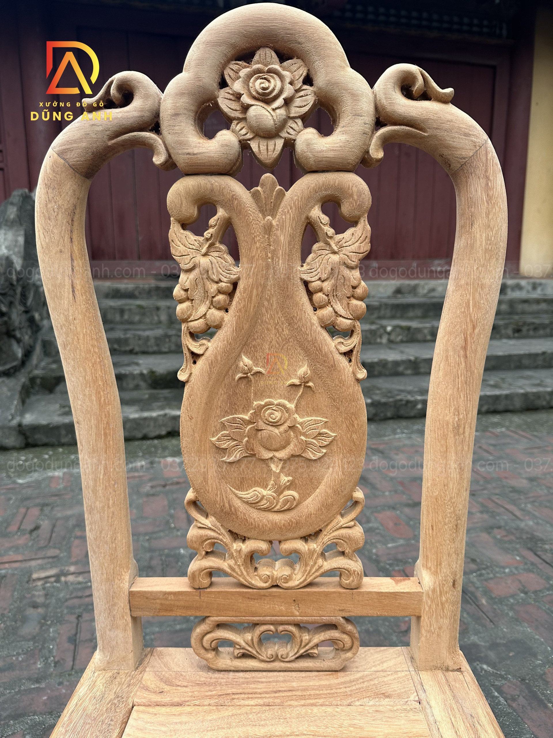 Các nét đục khắc trên ghế vô cùng rõ nét, tinh xảo