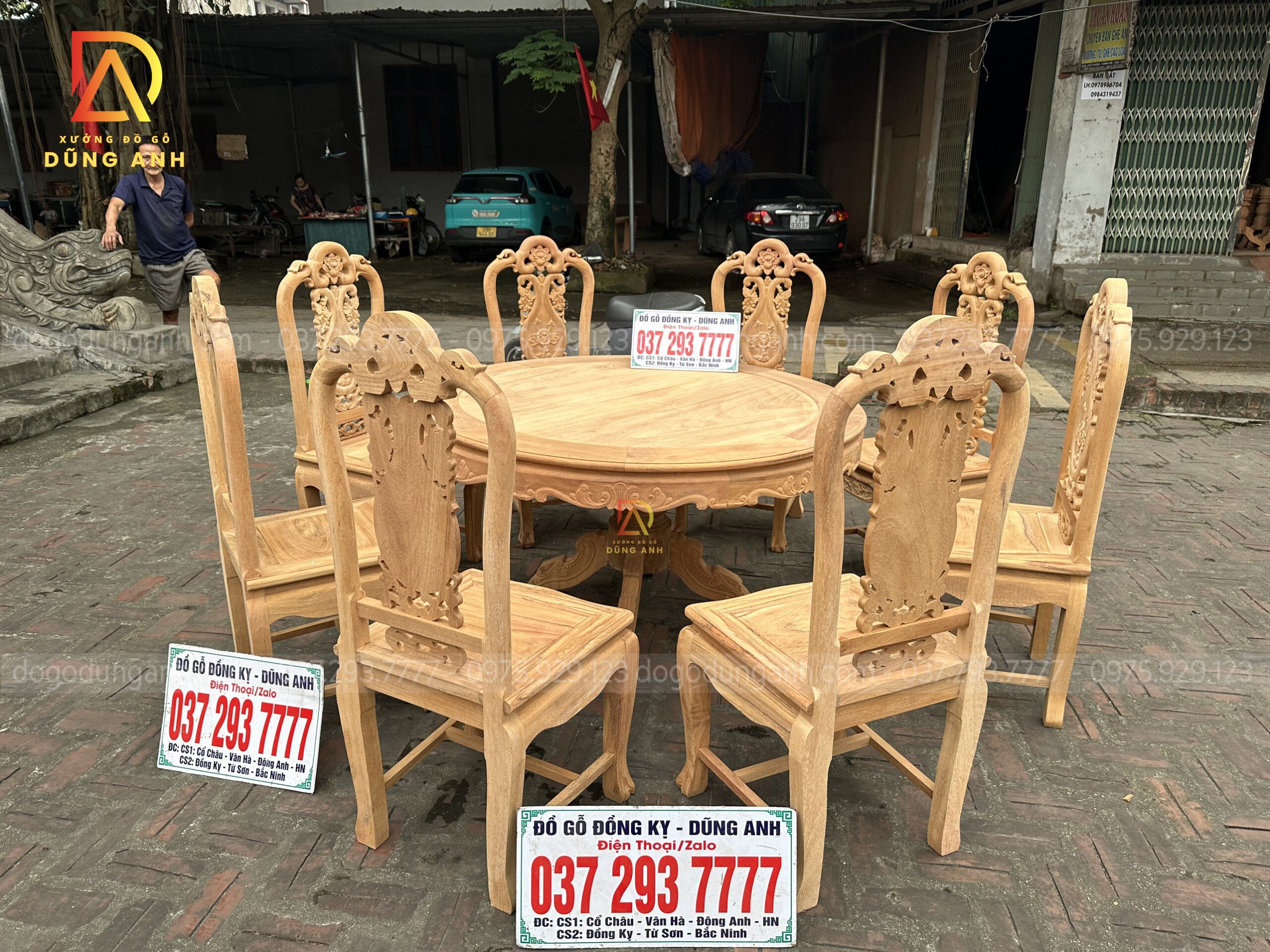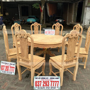 Mẫu bàn ăn tròn yếm vé Kết hợp cùng 8 ghế ngồ Trương Hồng Vách Nho . Với kích thước bàn rộng rãi và số lượng ghế lớn có thể đảm bảo sự tiện nghi tối đa cho gia đình chủ dùng bữa ngay cả khi nhà có khách.
