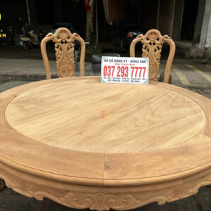 - Bàn nguyên khối: đường kính 138cm mặt 2 lá , khuôn tranh và yếm dày 2,5 cm, vân gỗ tự nhiên giá “12.000.000”
