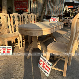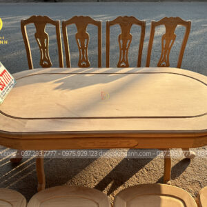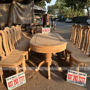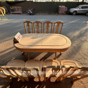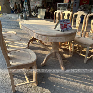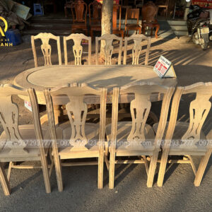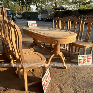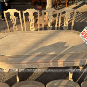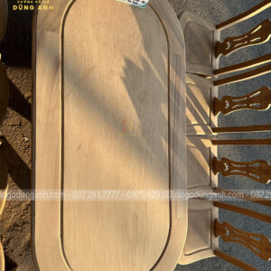 6 ghế vách cong chữ S kết hợp bàn bầu dục gỗ gõ đỏ