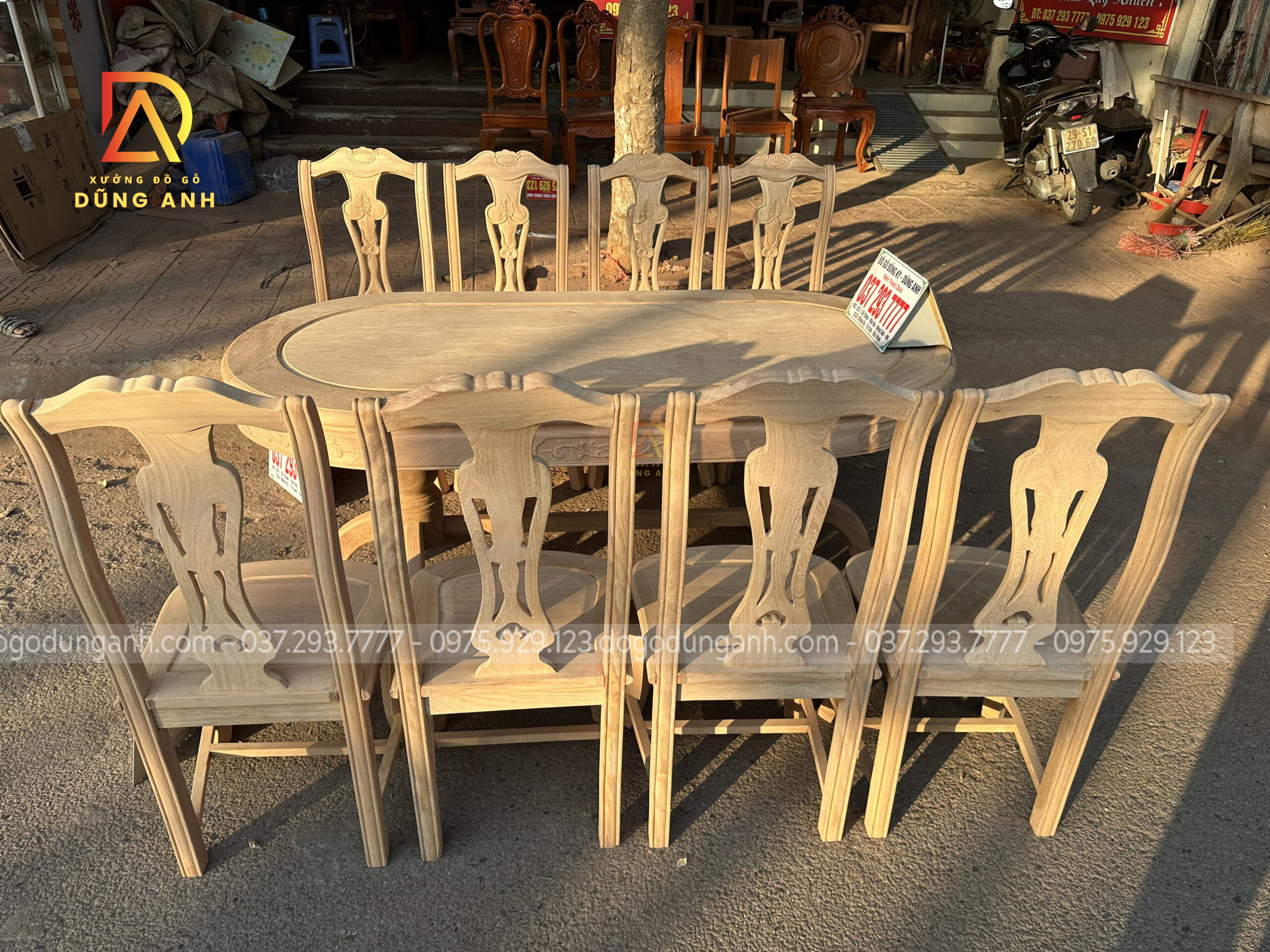 Xưởng đồ gỗ Dũng Anh xin trân trọng giới thiệu đến quý khách hàng một bộ bàn ăn gỗ gõ đỏ mẫu Bộ sản phẩm 8 ghế vách cong chữ S kết hợp bàn bầu dục sản phẩm được xưởng bên em hoàn thiện mộc Mời các bác cùng chiêm ngưỡng cận cảnh hình ảnh sản phẩm thực tế để có thể kiểm chứng và đánh giá được chính xác chất lượng sản phẩm.