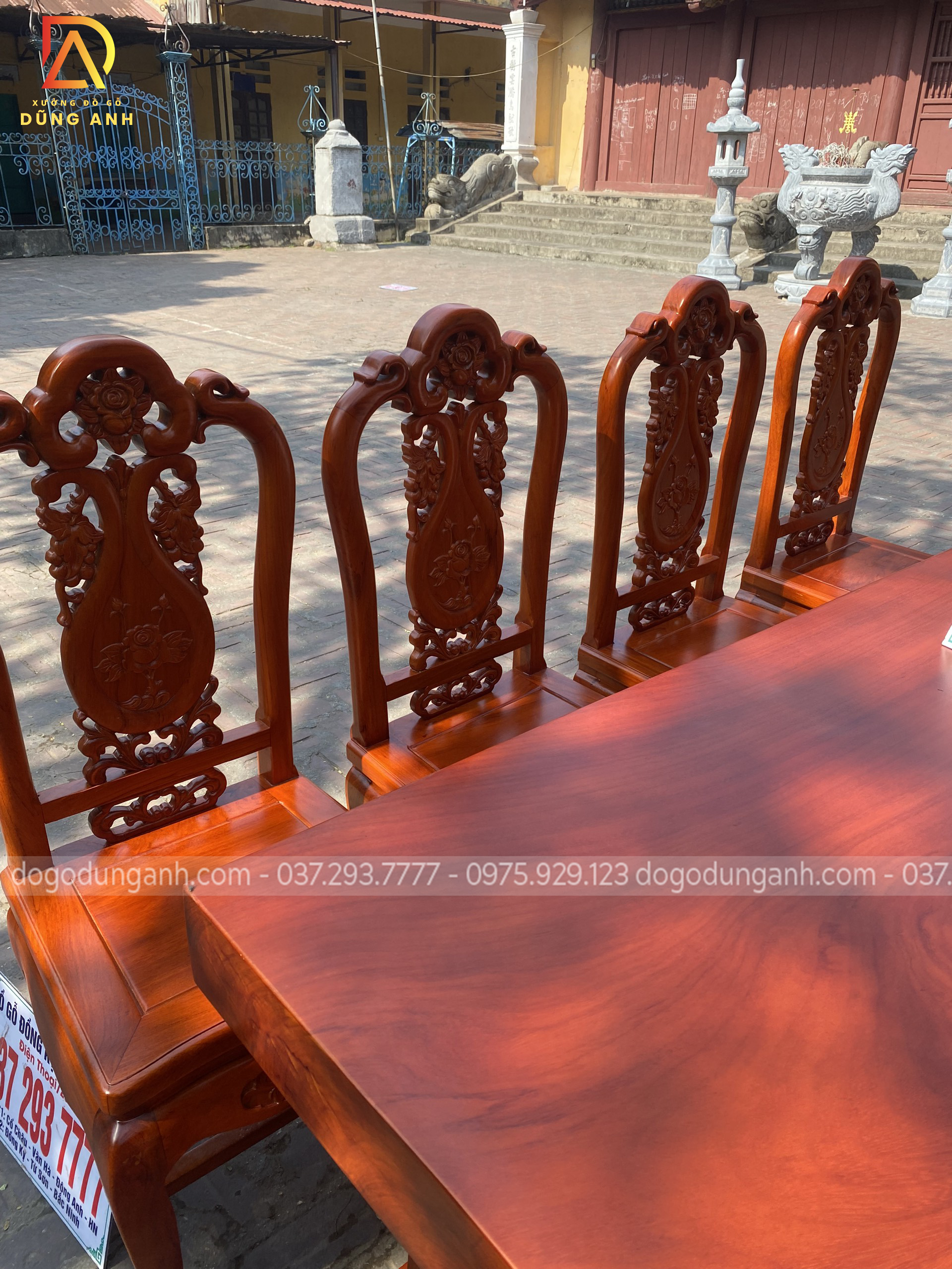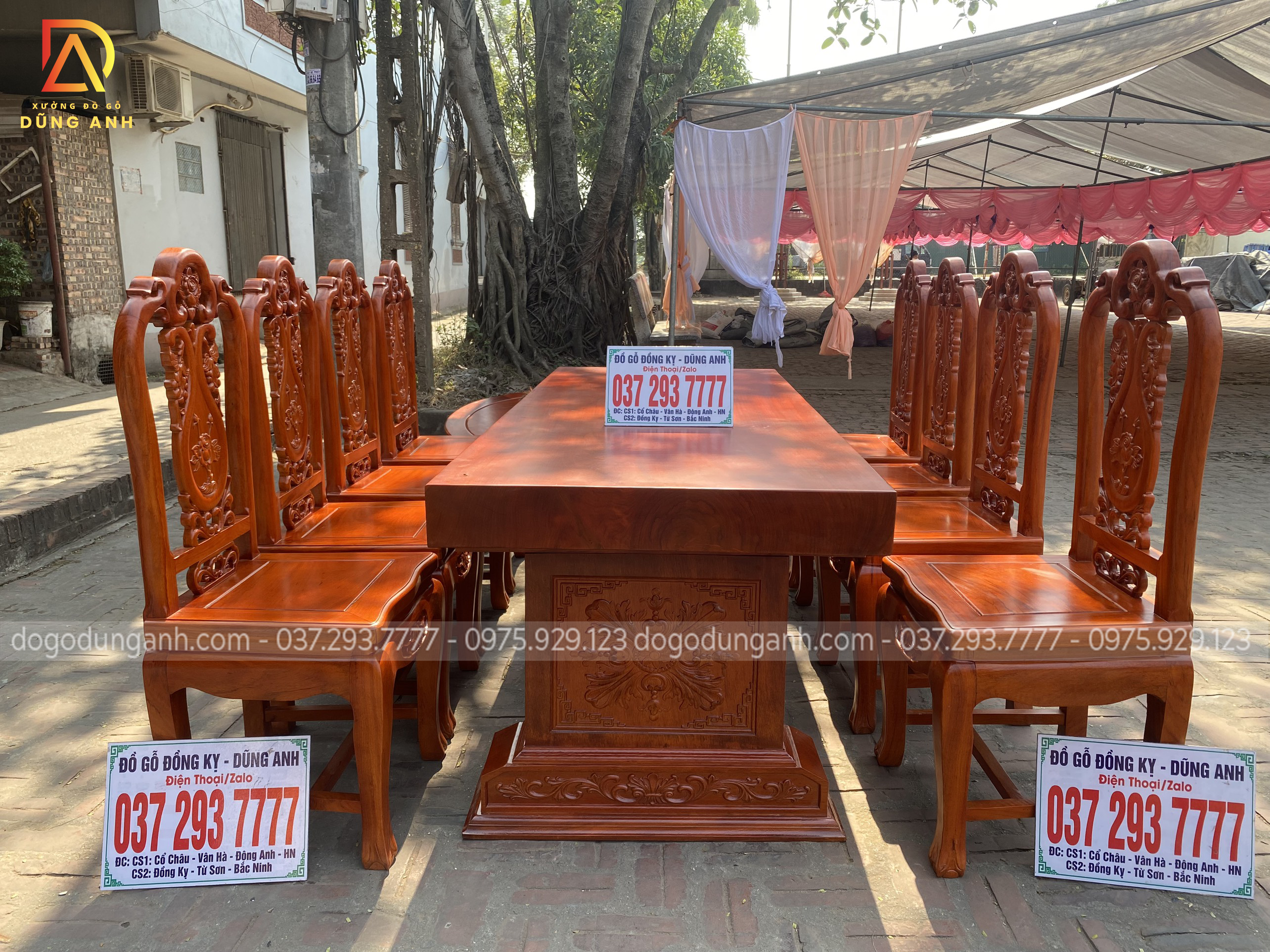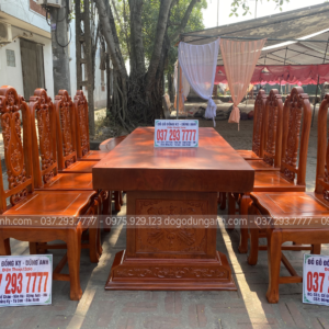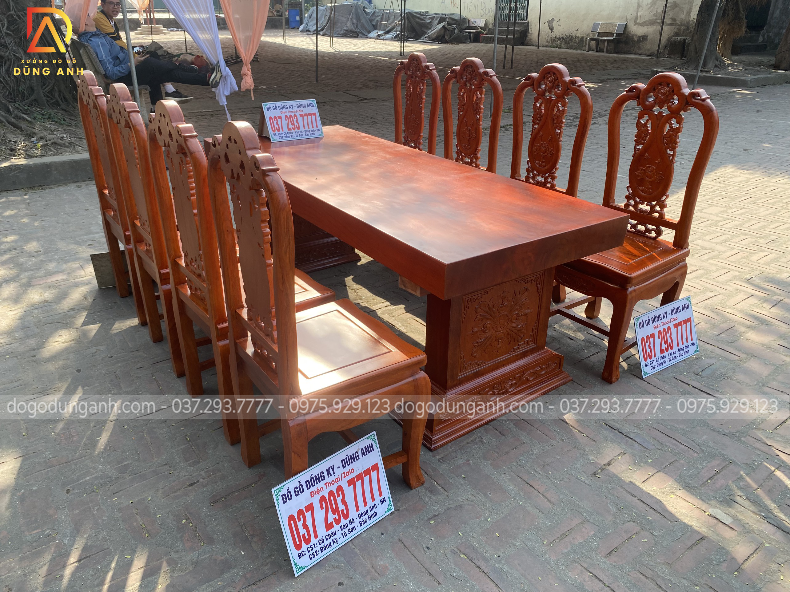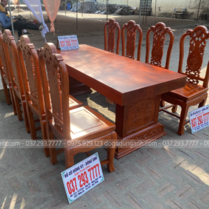 Bộ sản phẩm bàn chữ nhật ĐẶC LIỀN NGUYÊN KHỐI kết hợp 8 ghế hồng con đẳng cấp!
