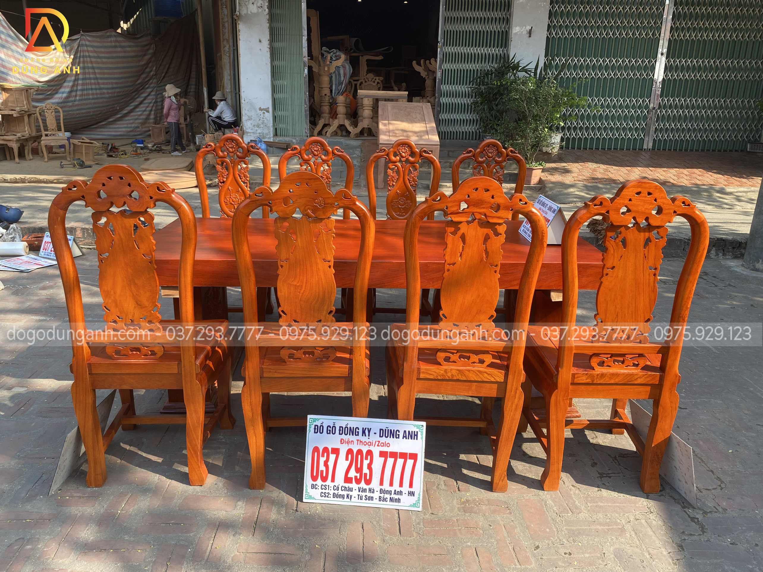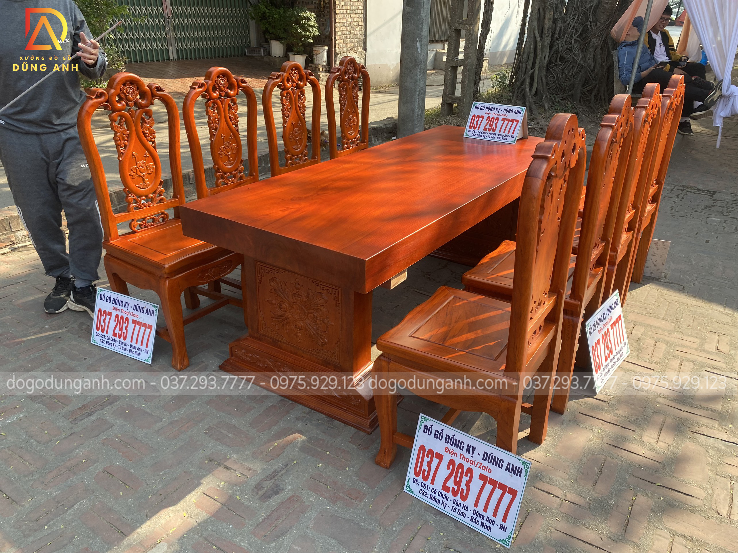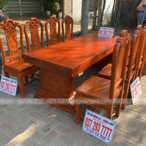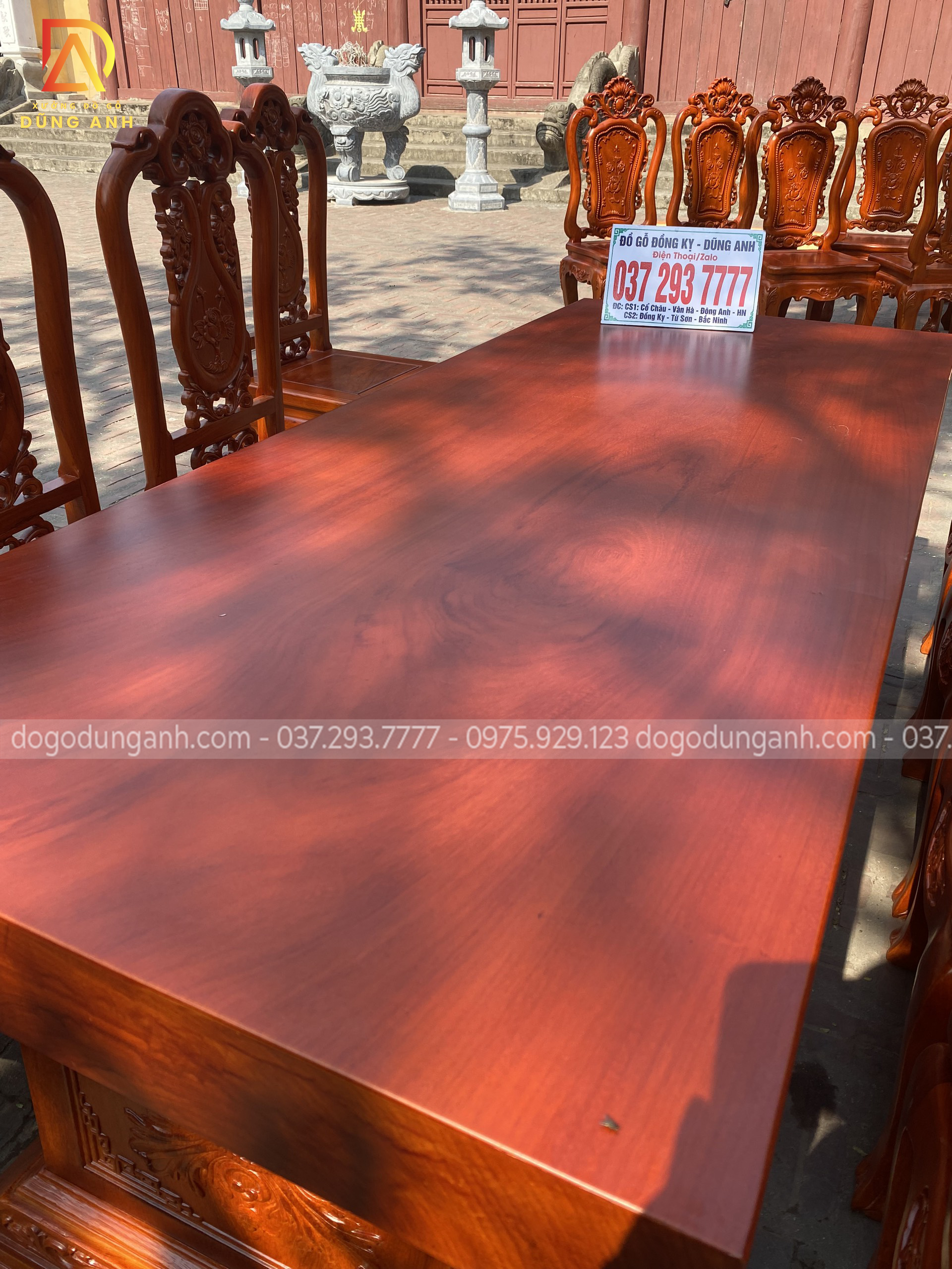 Bộ sản phẩm bàn chữ nhật ĐẶC LIỀN NGUYÊN KHỐI kết hợp 8 ghế hồng con đẳng cấp!
