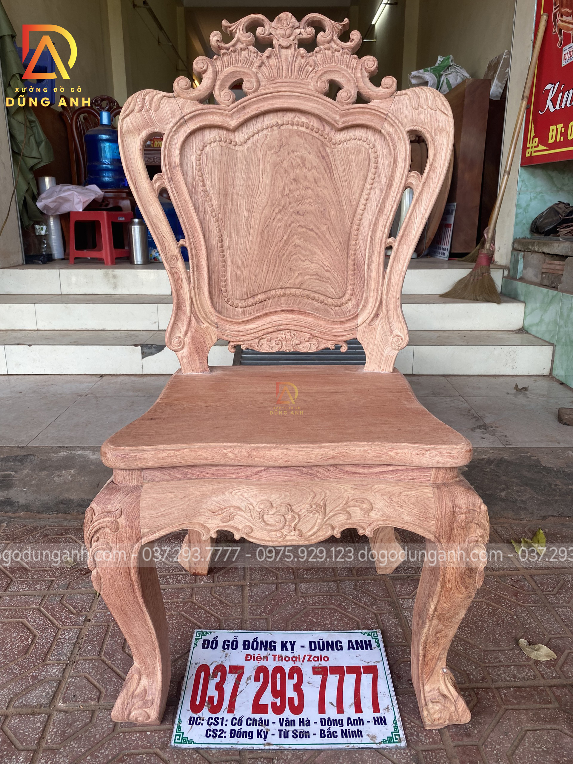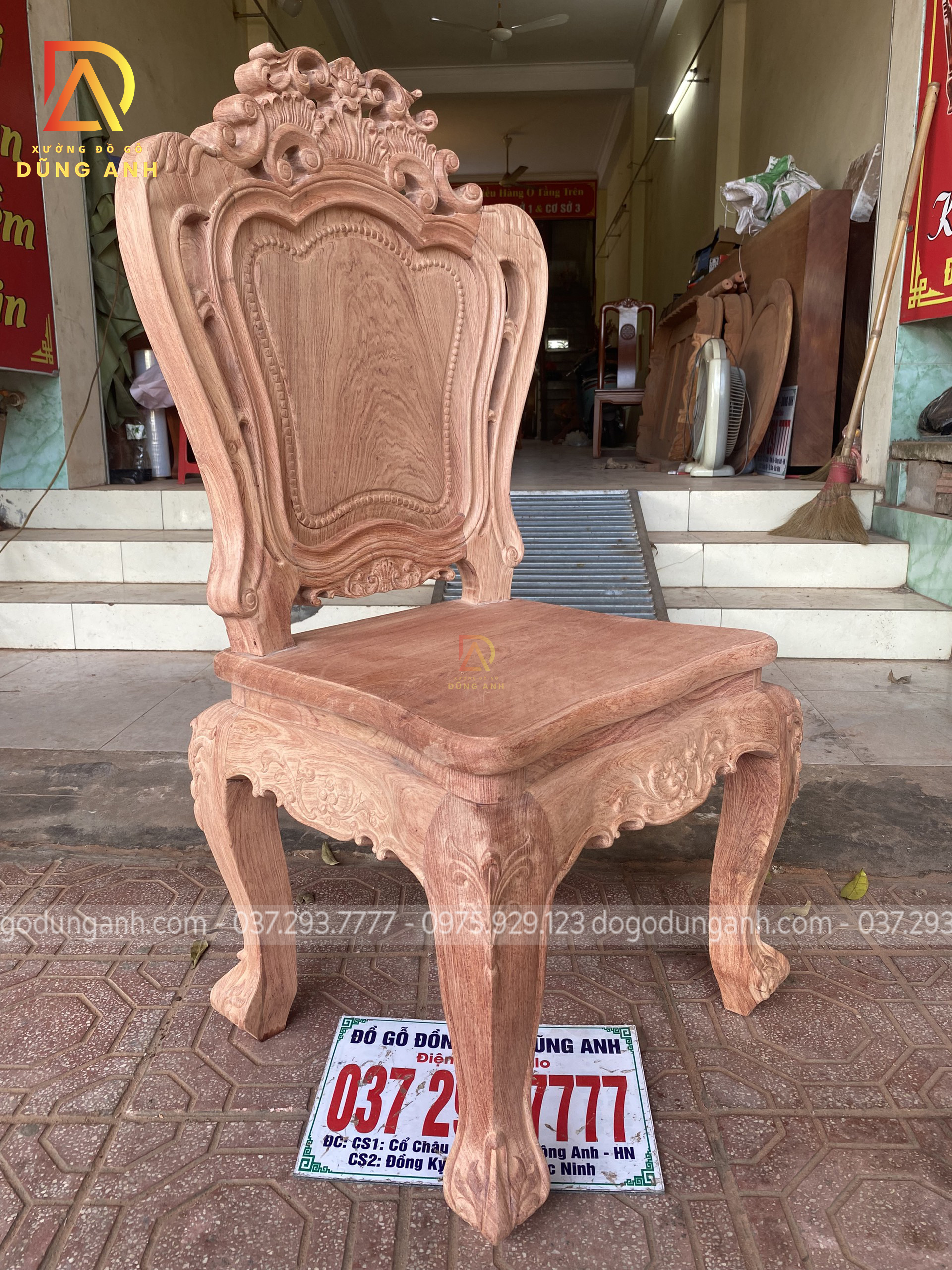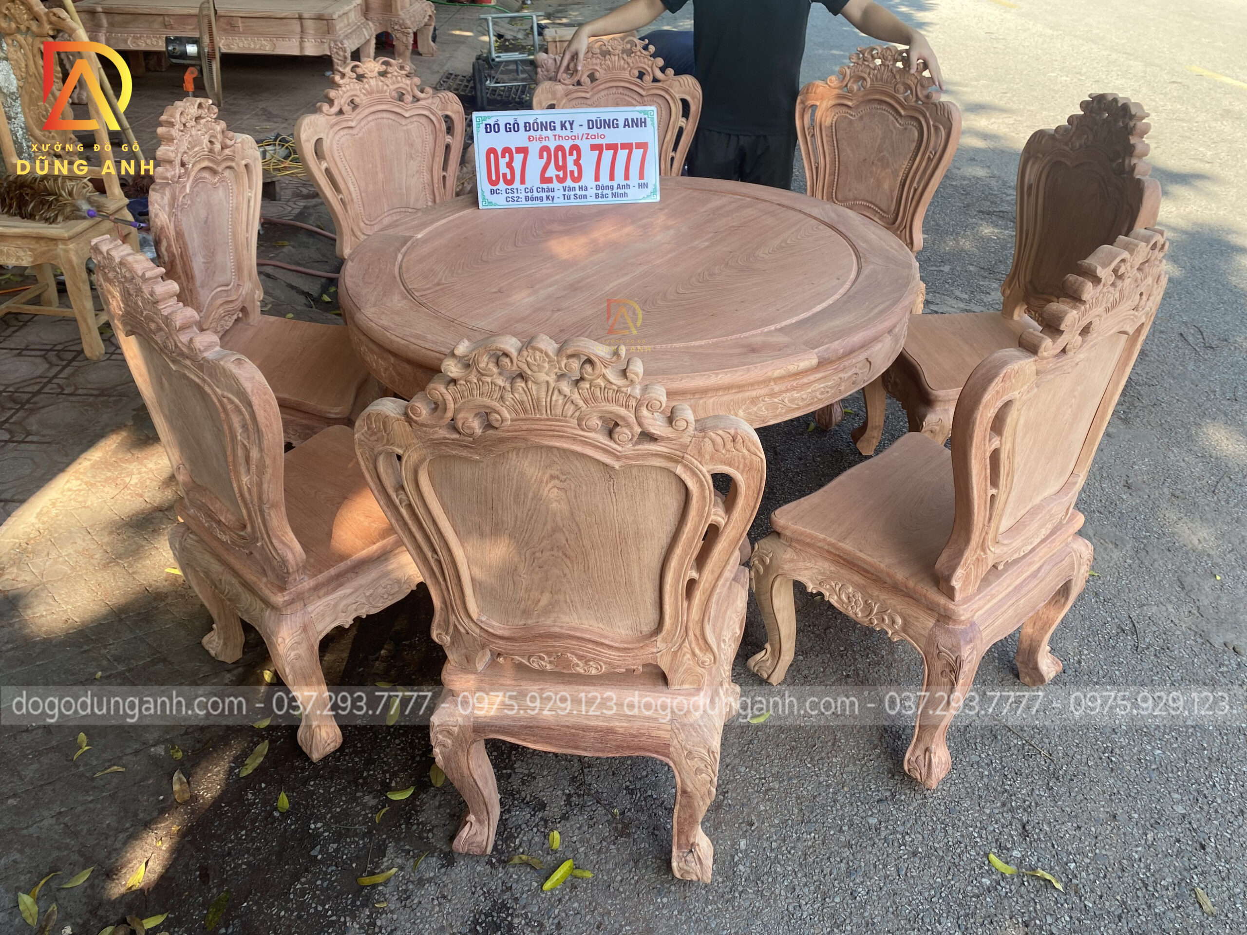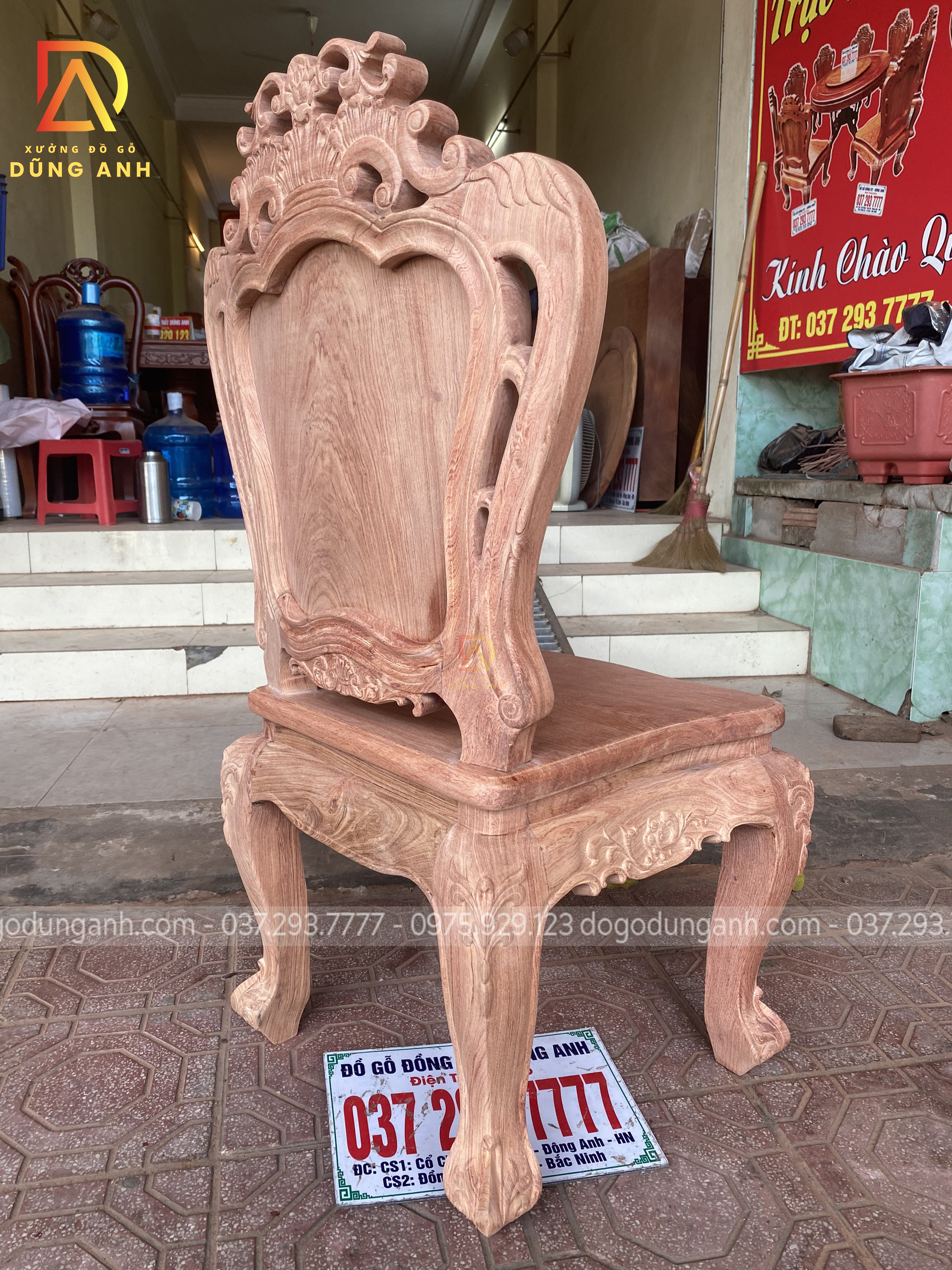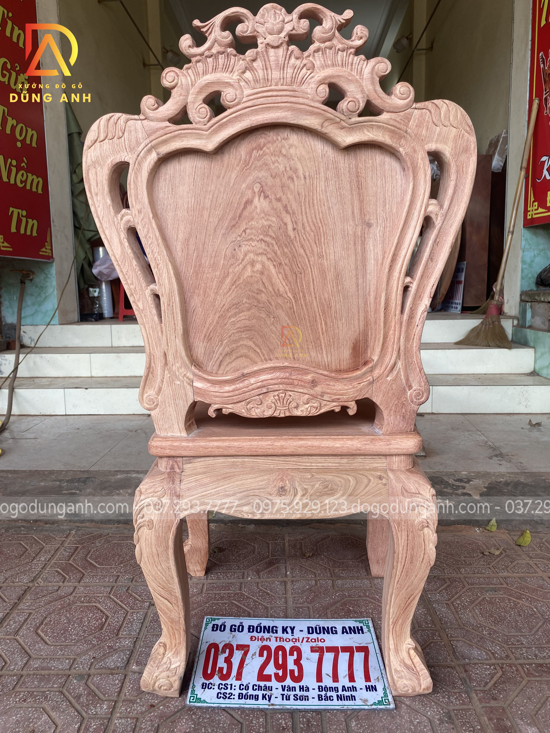 Bộ sản phẩm ghế Louis Hoàng Gia kết hợp bàn tròn trên nền gỗ Hương Đá vô cùng sang trọng