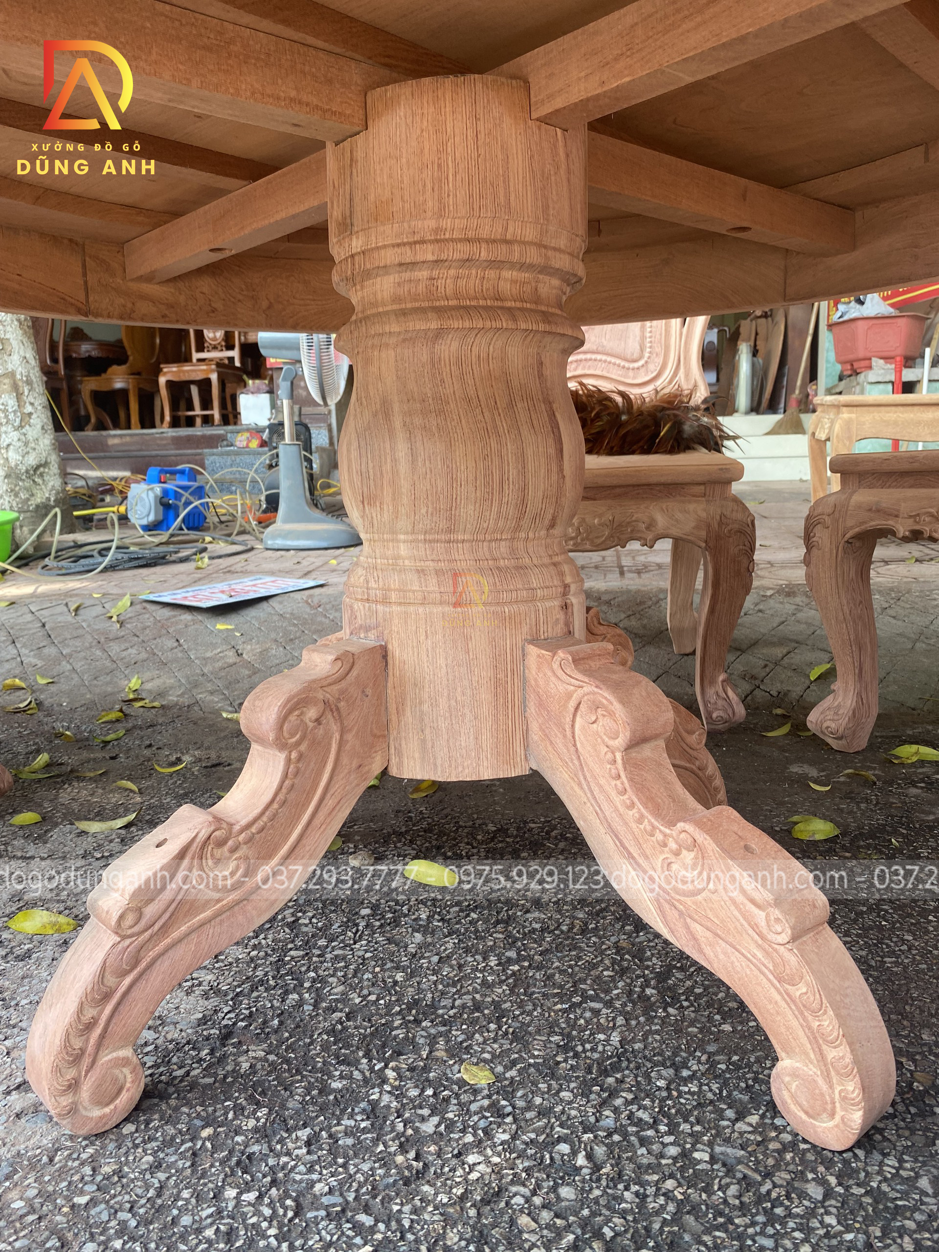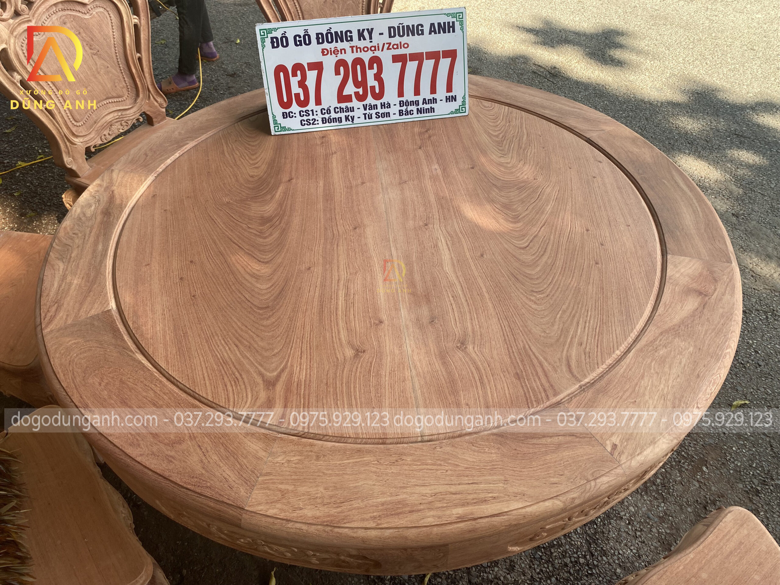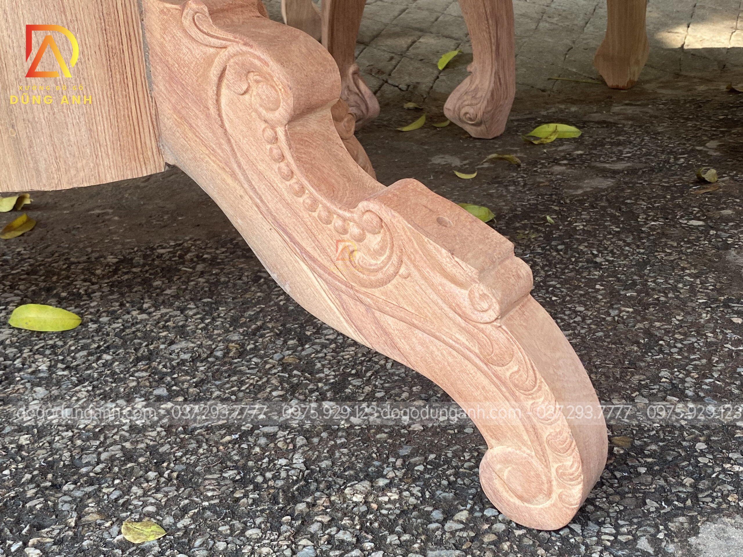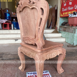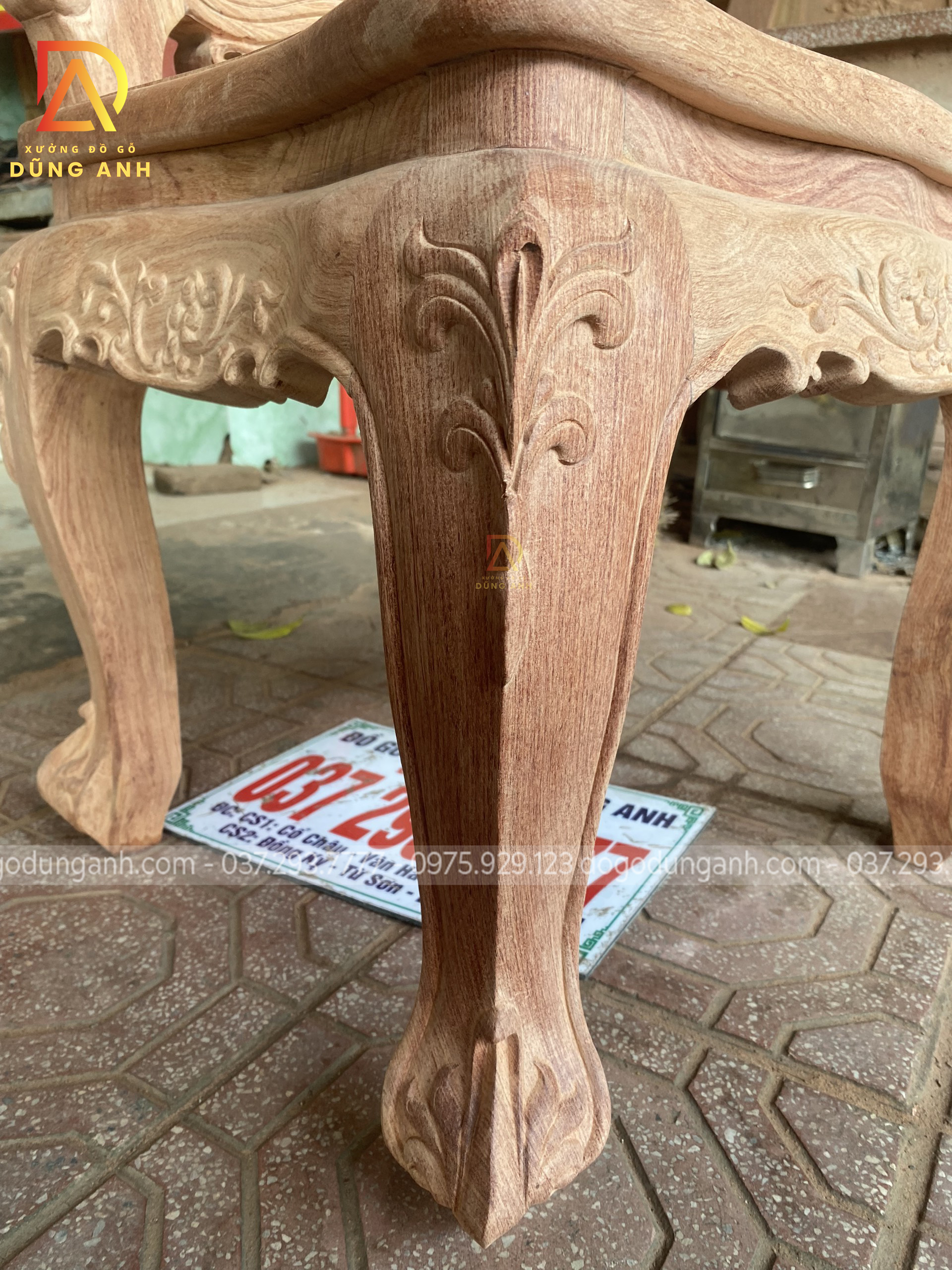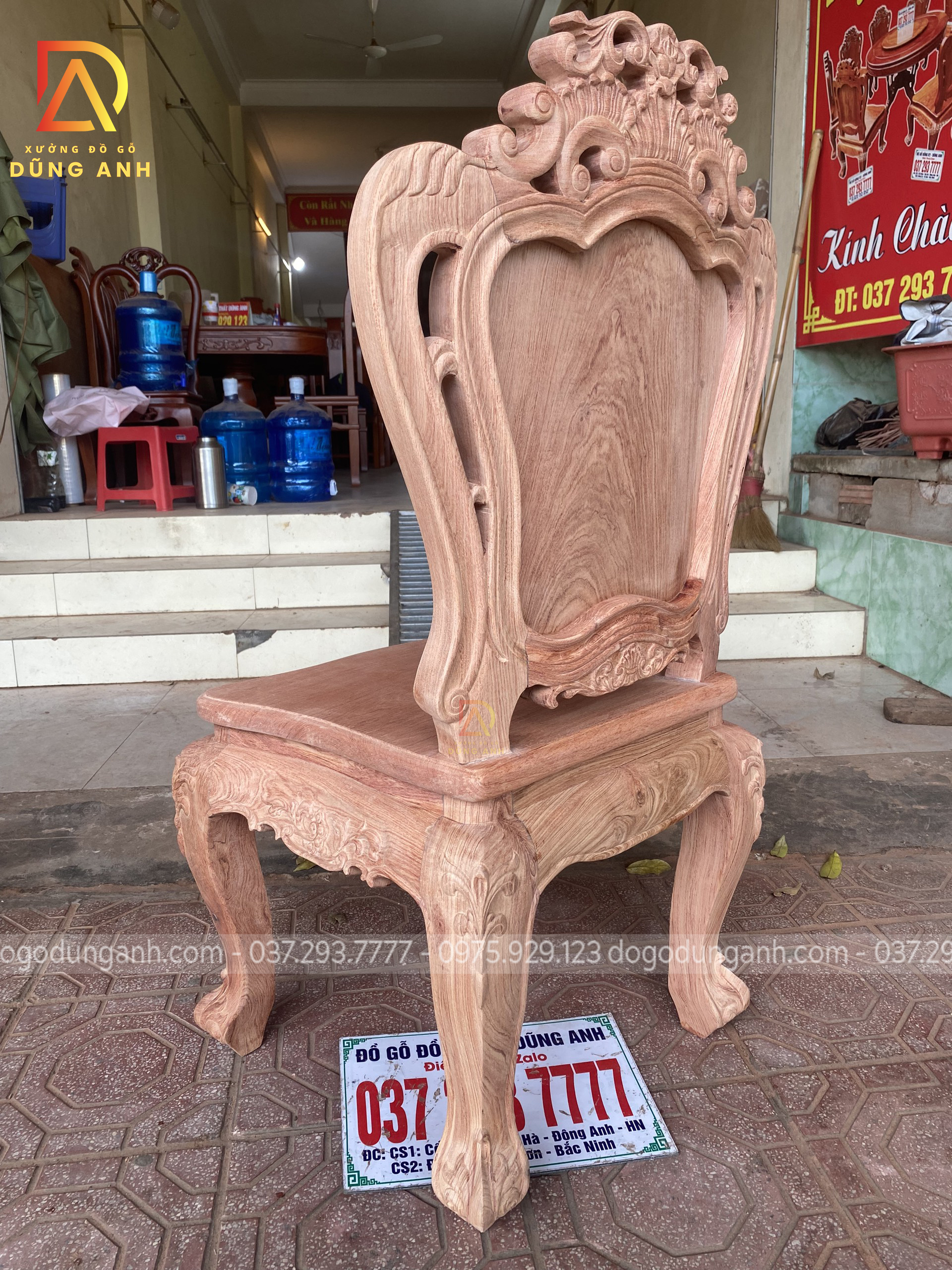 Bộ sản phẩm ghế Louis Hoàng Gia kết hợp bàn tròn trên nền gỗ Hương Đá vô cùng sang trọng
