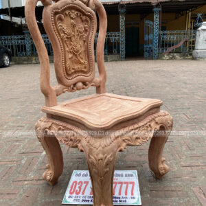 Dáng ghế tựa đứng hơi ngả vai cột liền chân chắc chẵn, Ghế ăn hồng hạt cao cấp đục chạm hai mặt trước sau như một rất kỳ công, Chương ghế đục hoạ tiết lá tây vô cùng bắt mắt, Mặt ghế liền tấm dày 2 cm đóng khuôn tranh dày 4cm soi tứ diện mềm mại, tạo độ chắc chắn và thoải mái tối đa cho người ngồi, Yếm ghế dày 4cm đục hoa lá tây uốn lượn đồng bộ với thiết kế chung, Tháng ghế to dày tạo độ chắc chắn cho chiếc ghế, người sử dụng thoải mái khi ngồi