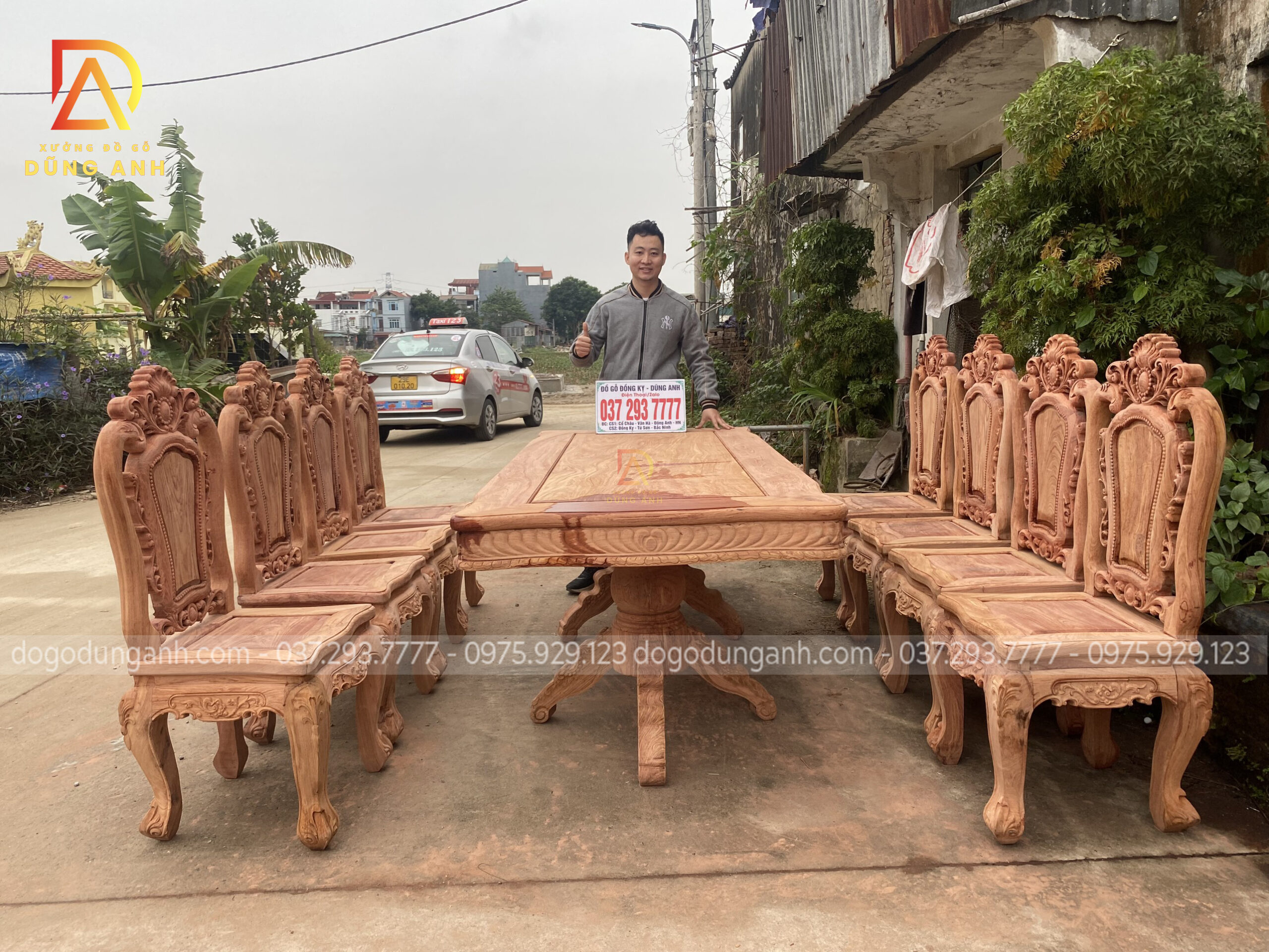 Quý khách có thể tham khảo thêm các mẫu bàn ghế ăn đẹp, bàn ghế ăn nguyên khối, các mẫu ghế ăn đẹp thì có thể liên hệ ngay với Xưởng đồ gỗ Dũng Anh qua: