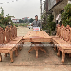 - Bộ sản phẩm gỗ Hương Đá 8 ghế Louis Hoa Hồng siêu dày + bàn vén góc mẫu mới