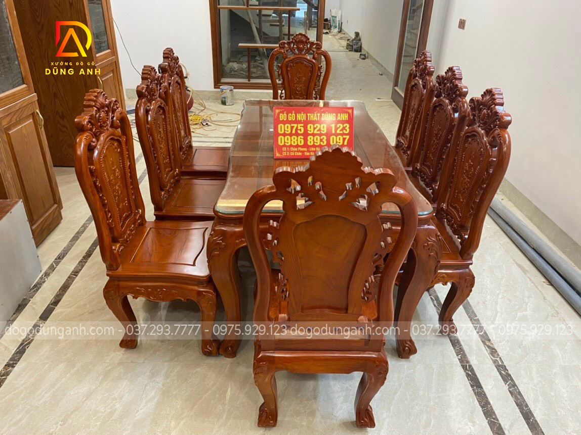 Bộ sản phẩm Louis Hoa Hồng 8 ghế và 1 bàn củ lạc cho chị Liên